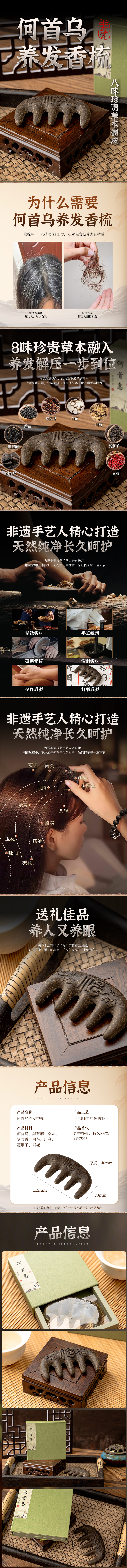 【养发按摩 一梳多用】养发合香梳 何首乌、黑芝麻、桑葚、零陵香等8位珍贵草本制成 养发护发 非遗技艺制作 圆润舒适 不伤肌肤 梳头、按摩、刮痧 礼盒包装 自用送礼都合适