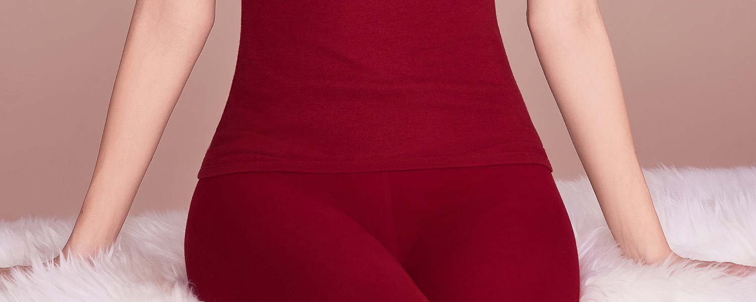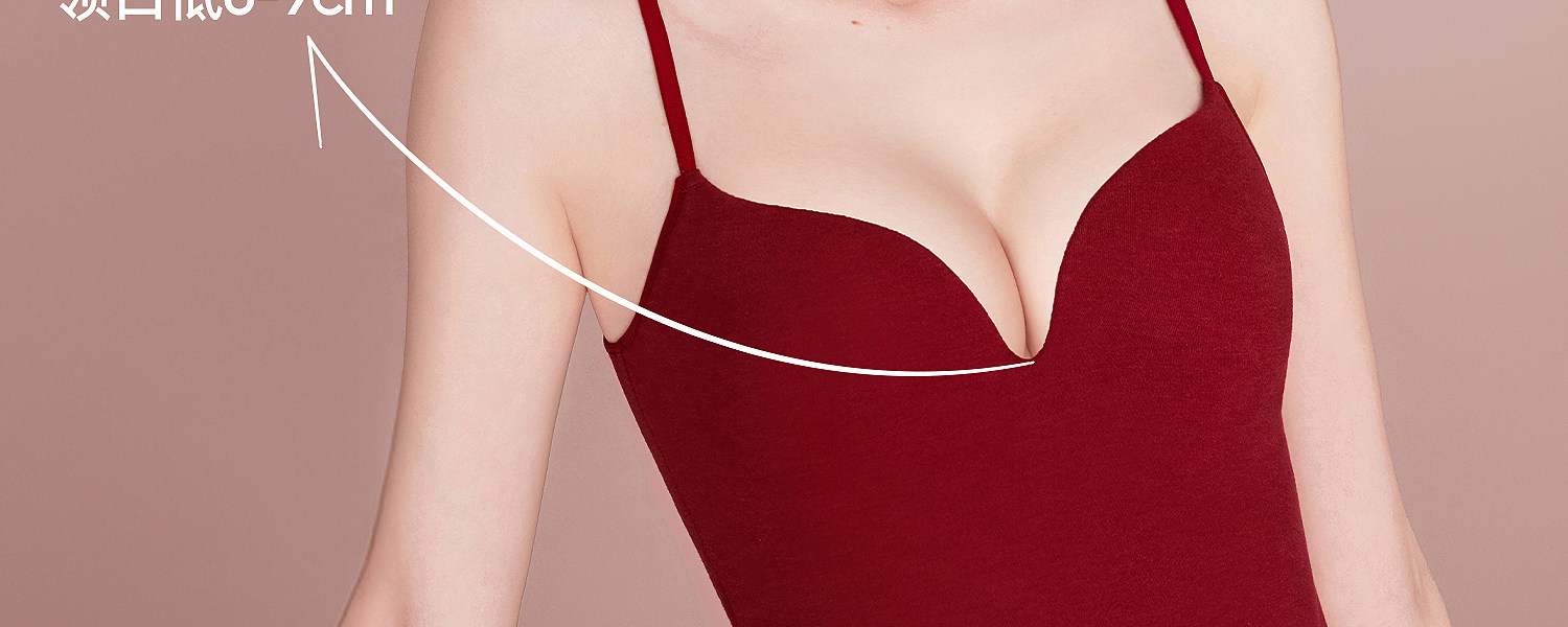 好奇蜜斯红色羊毛保暖背心吊带秋衣肌底衣带胸垫发热本命年抗静电-露娜红