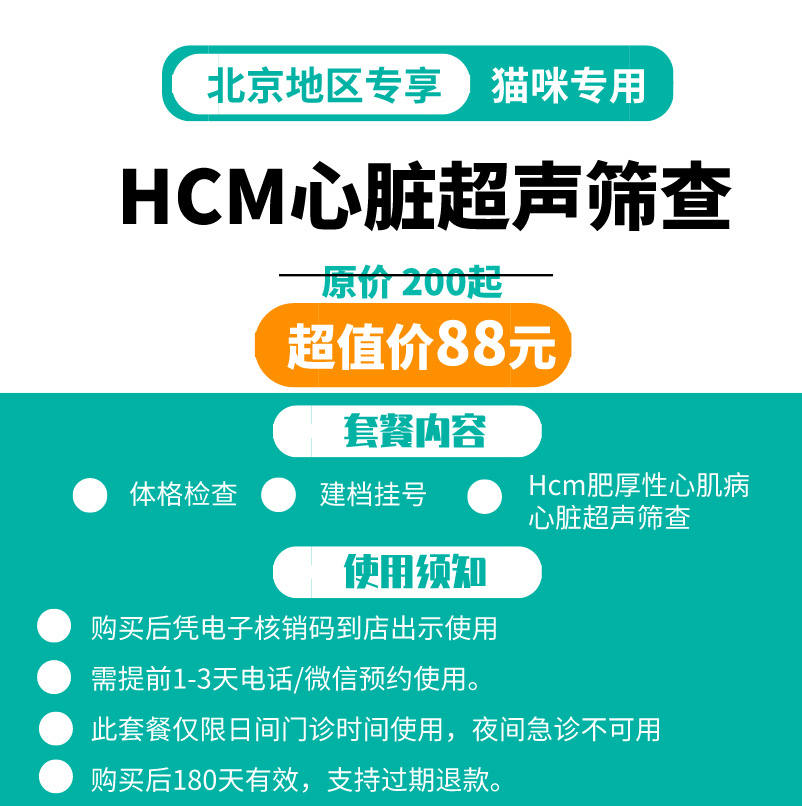 【北京地区可用】Hcm肥厚性心肌病心脏超声筛查 超值体检 猫咪专用 请选择您就近的医院进行购买 【需提前预约使用】