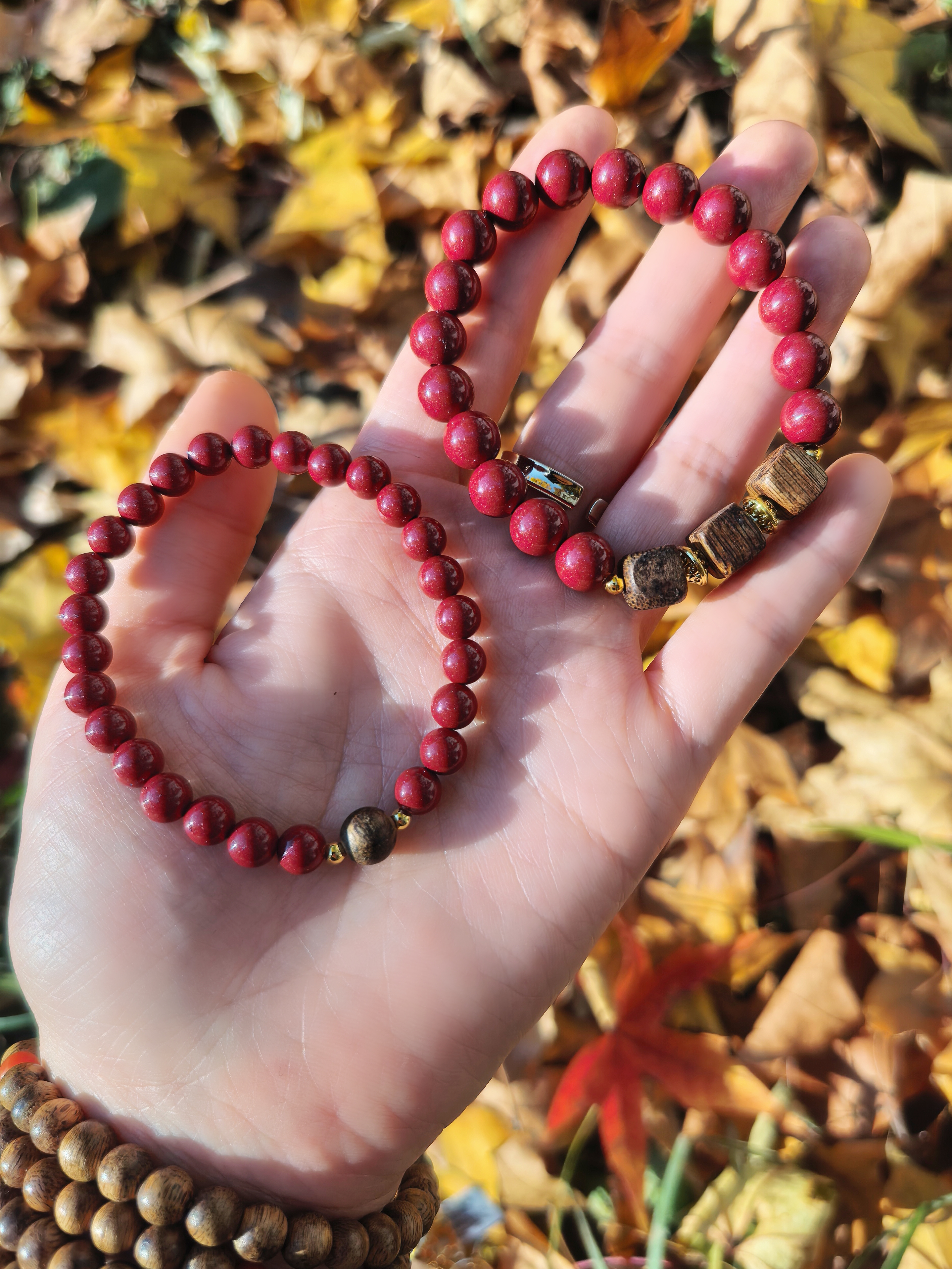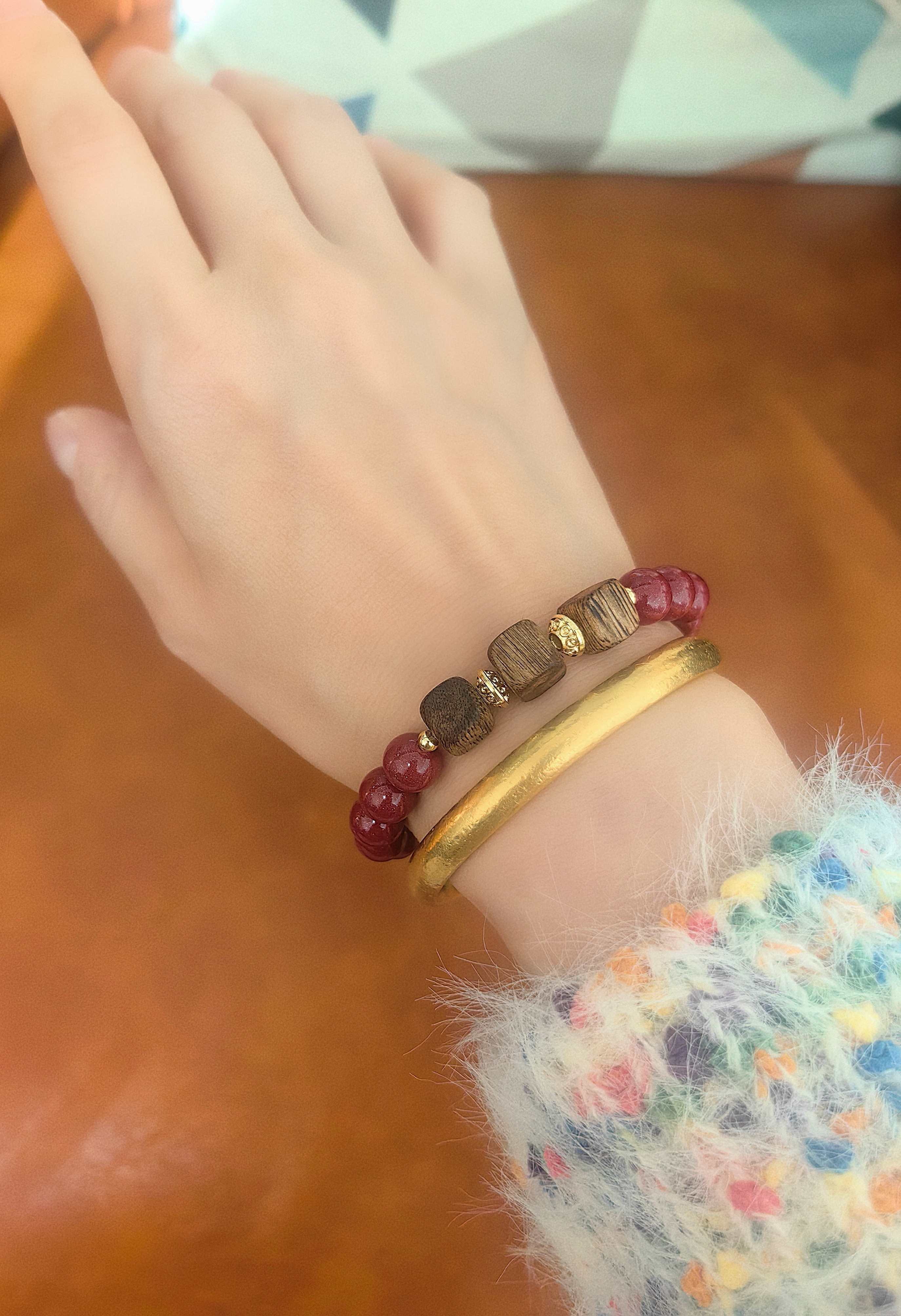 佩戴与腕间,举手投足之间都是淡淡的自然馨香,高雅木质香调搭配亮眼吉祥紫金朱砂,愿您平安喜乐、万事顺意。