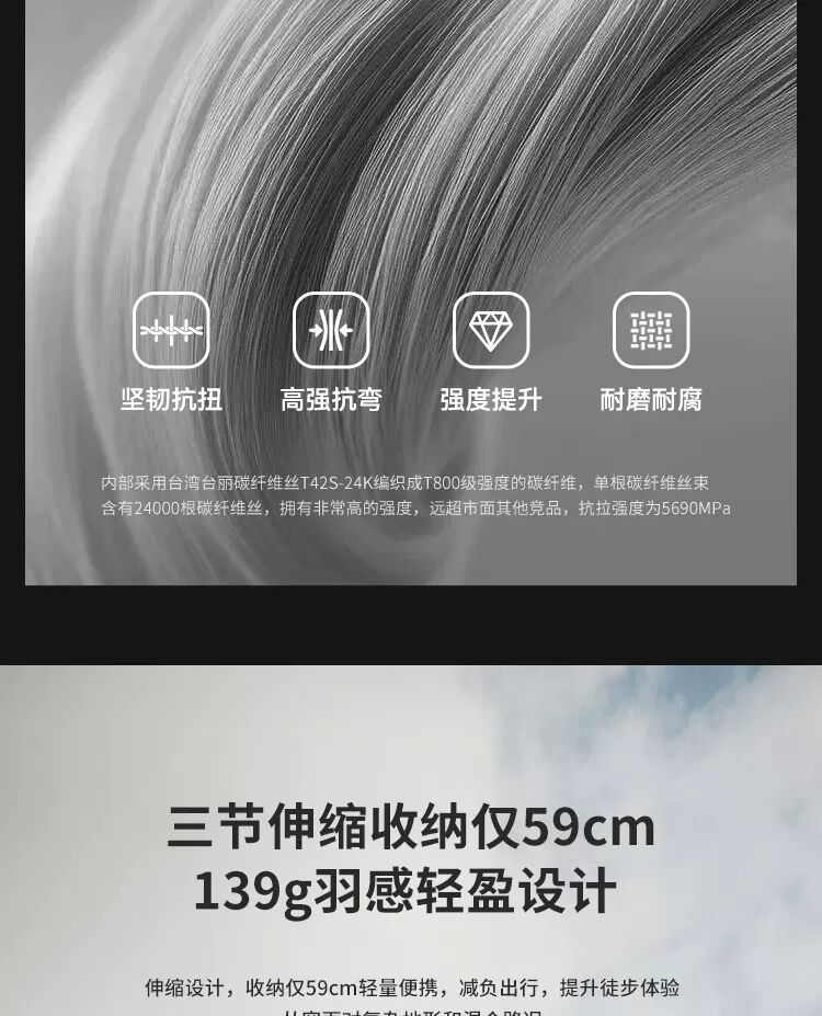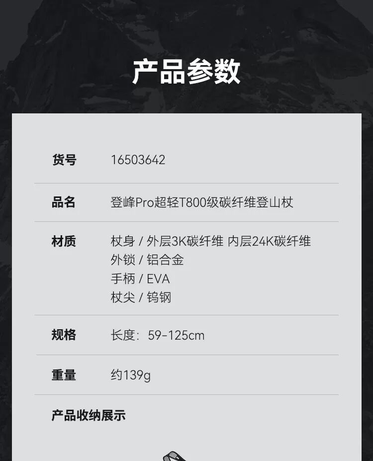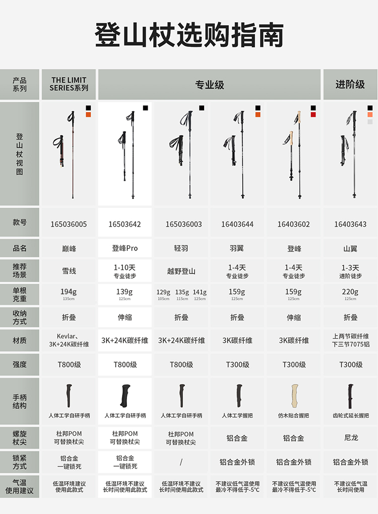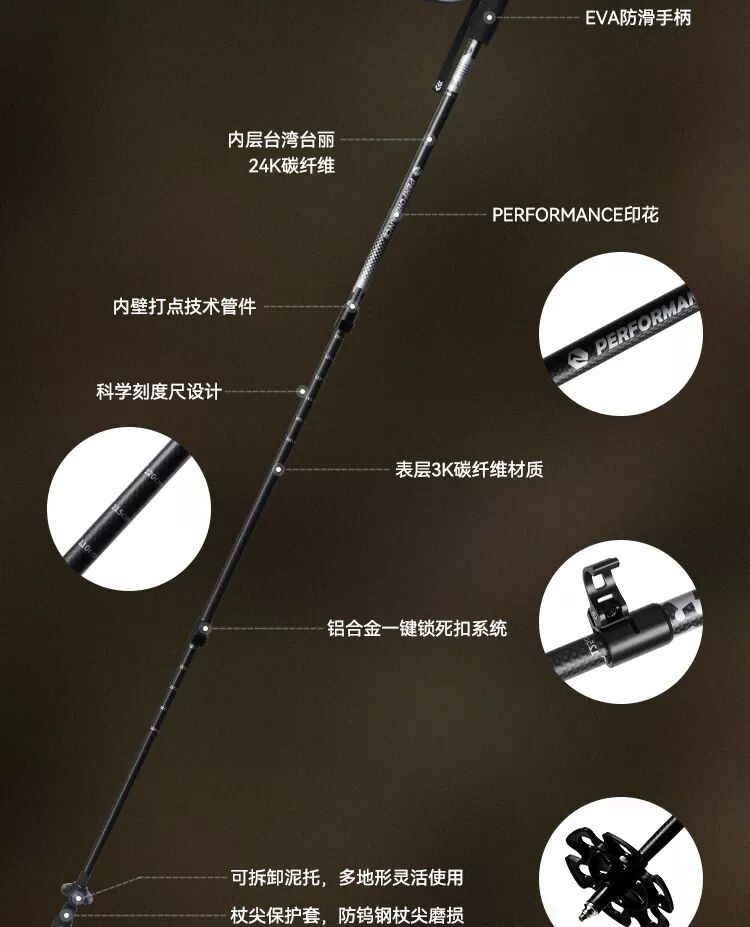 【登峰Pro】伯希和户外登山杖碳纤维超轻伸缩专业爬山手杖装备