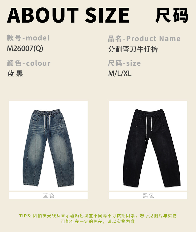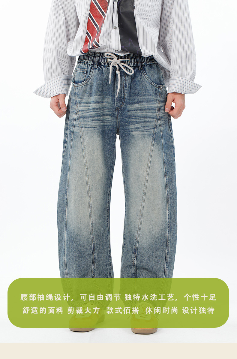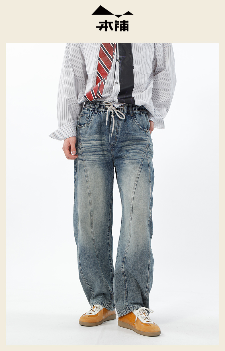腰部抽绳设计分割弯刀牛仔裤-纪念日百货门店同款169265717