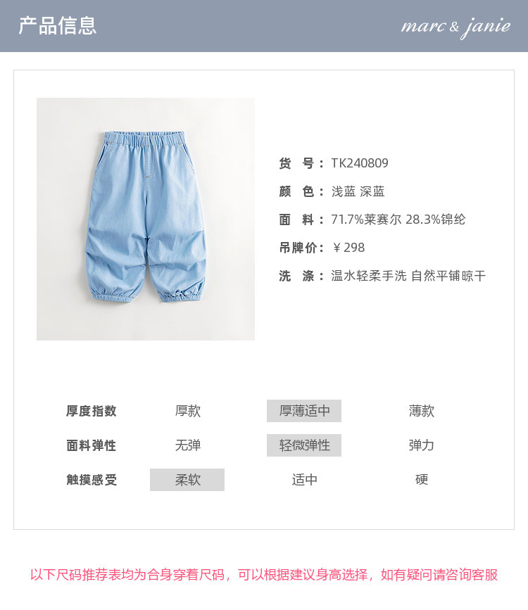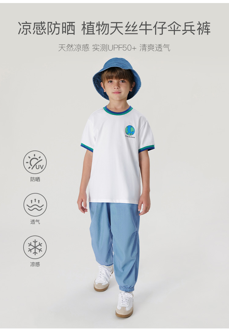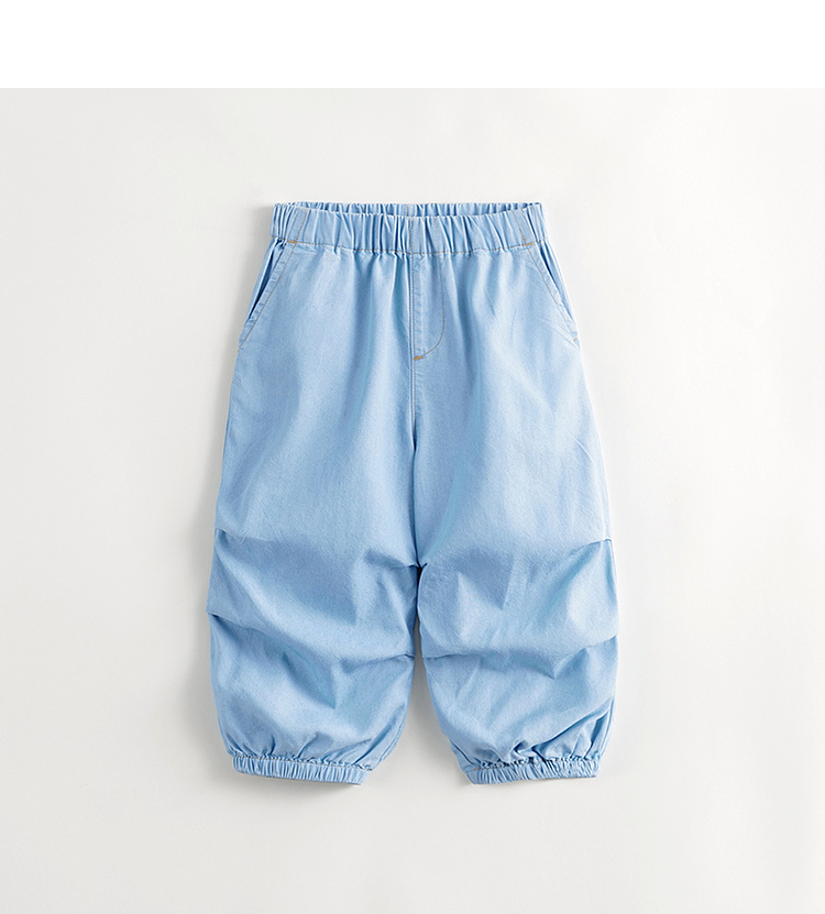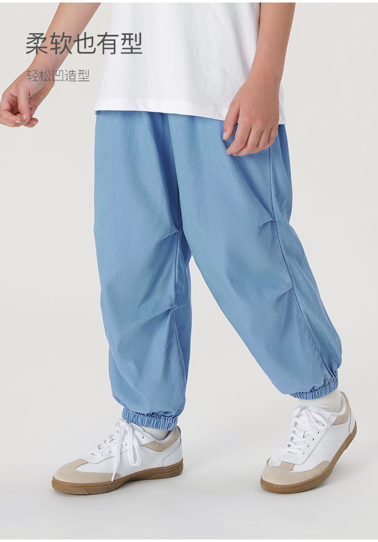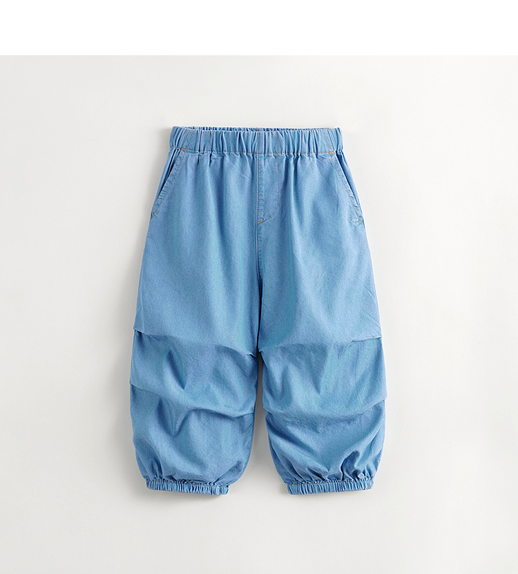 马克珍妮男童凉感防晒天丝微褶牛仔防蚊裤降落伞裤夏装新款240809