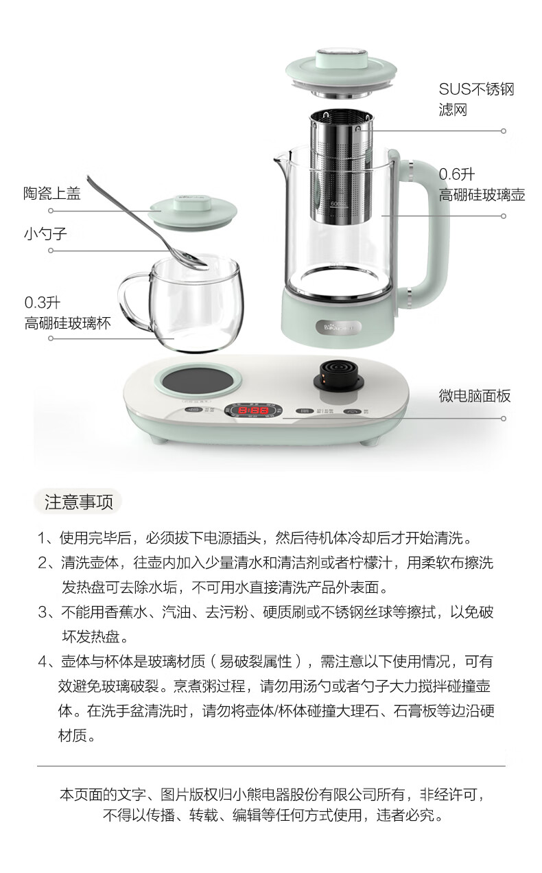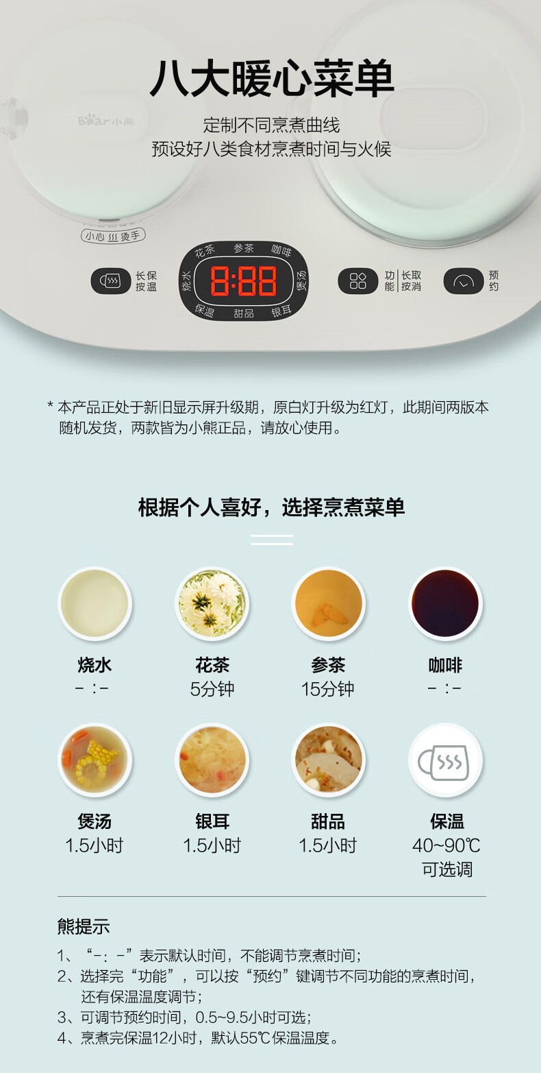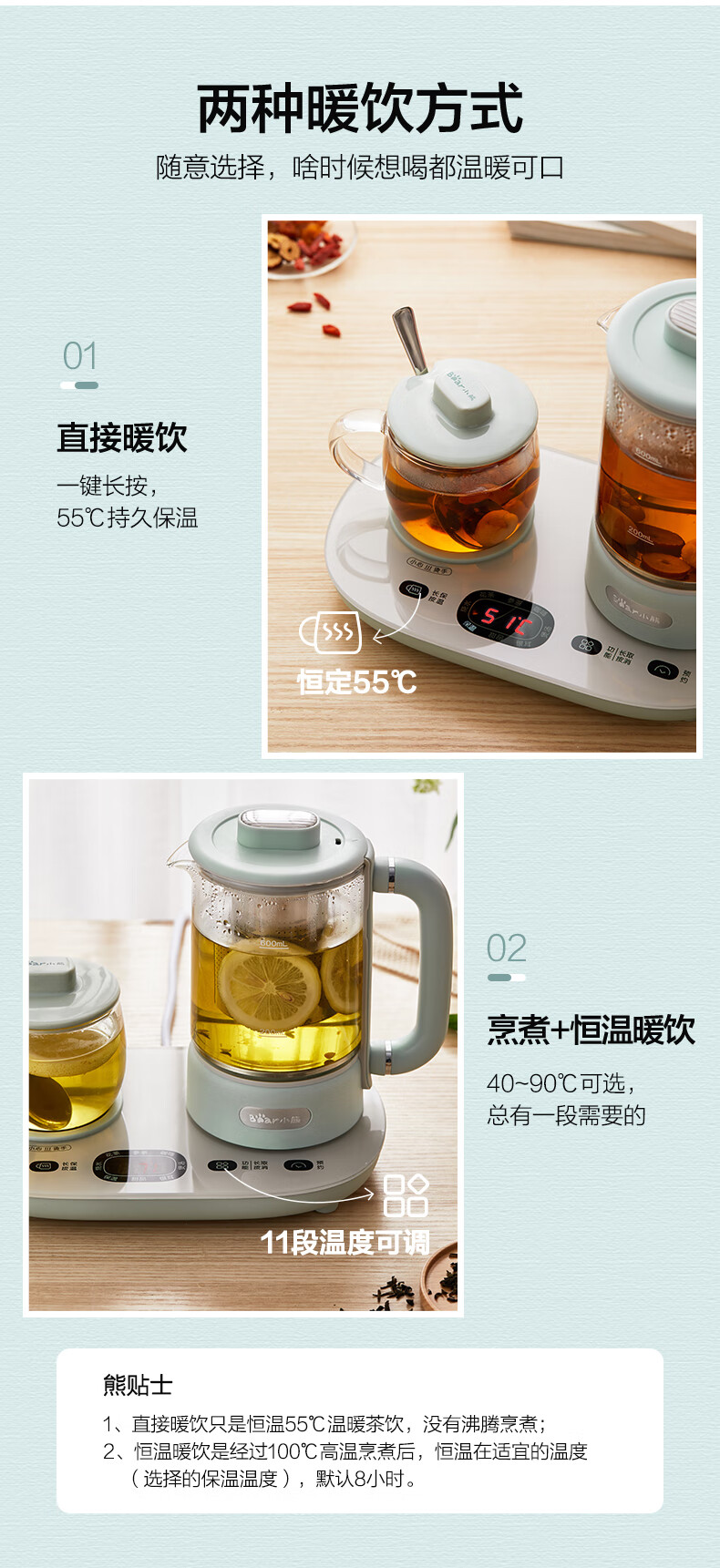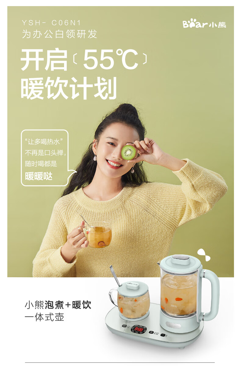 小熊(Bear) 养生壶组合套装0.3L养生杯恒温杯 多功能迷你煮茶器办公室家用花茶壶煮茶壶烧水壶煮水壶 泡煮暖饮三合一 YSH-C06N1