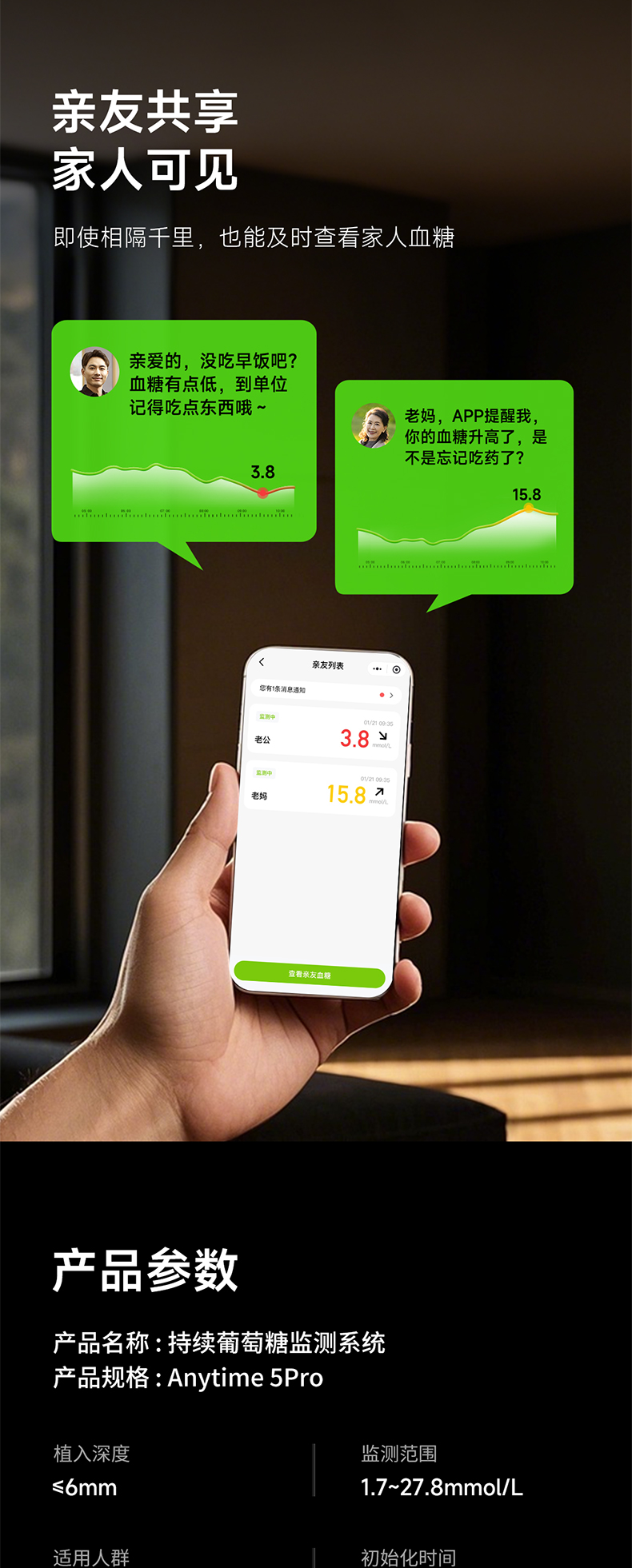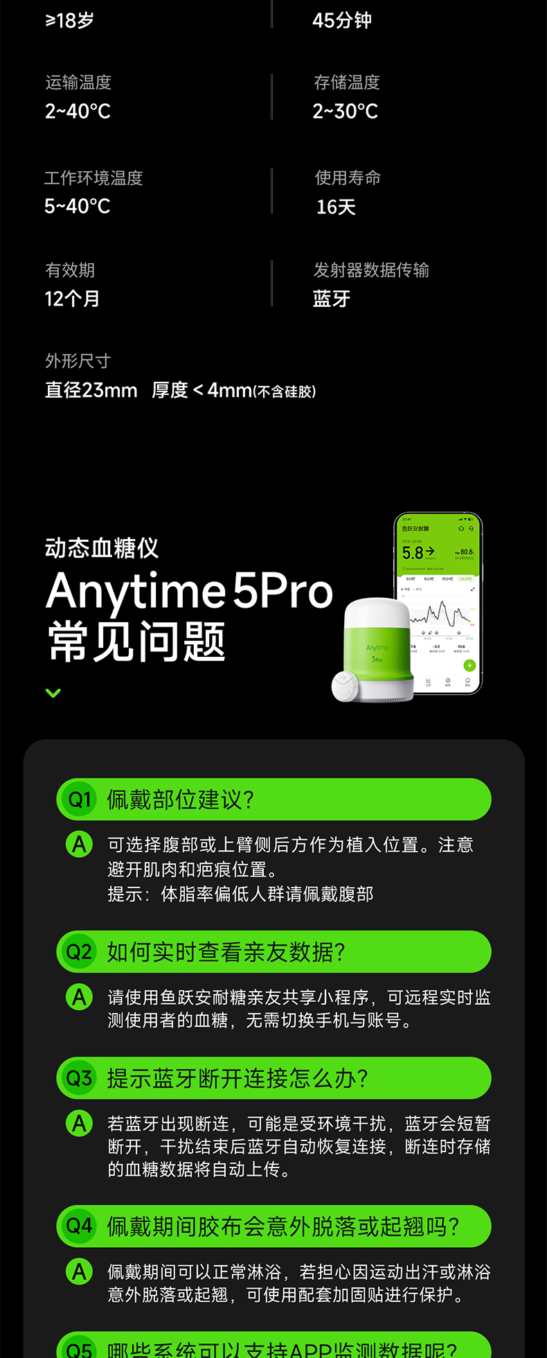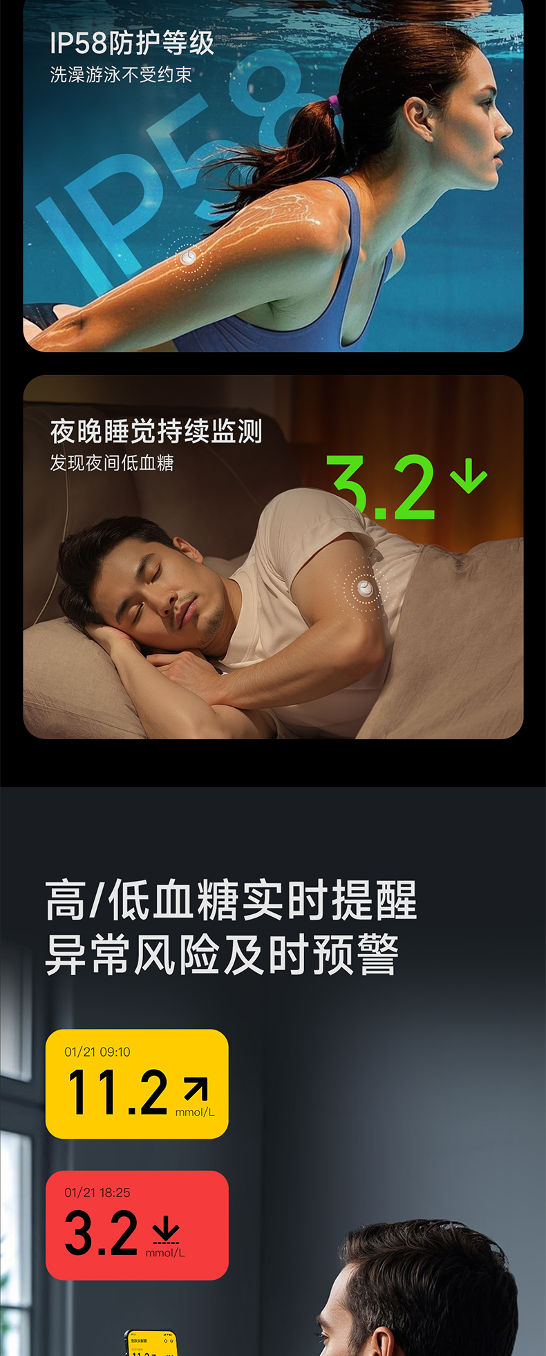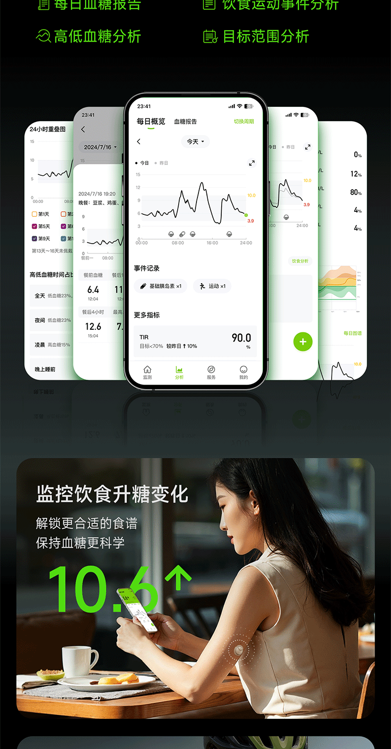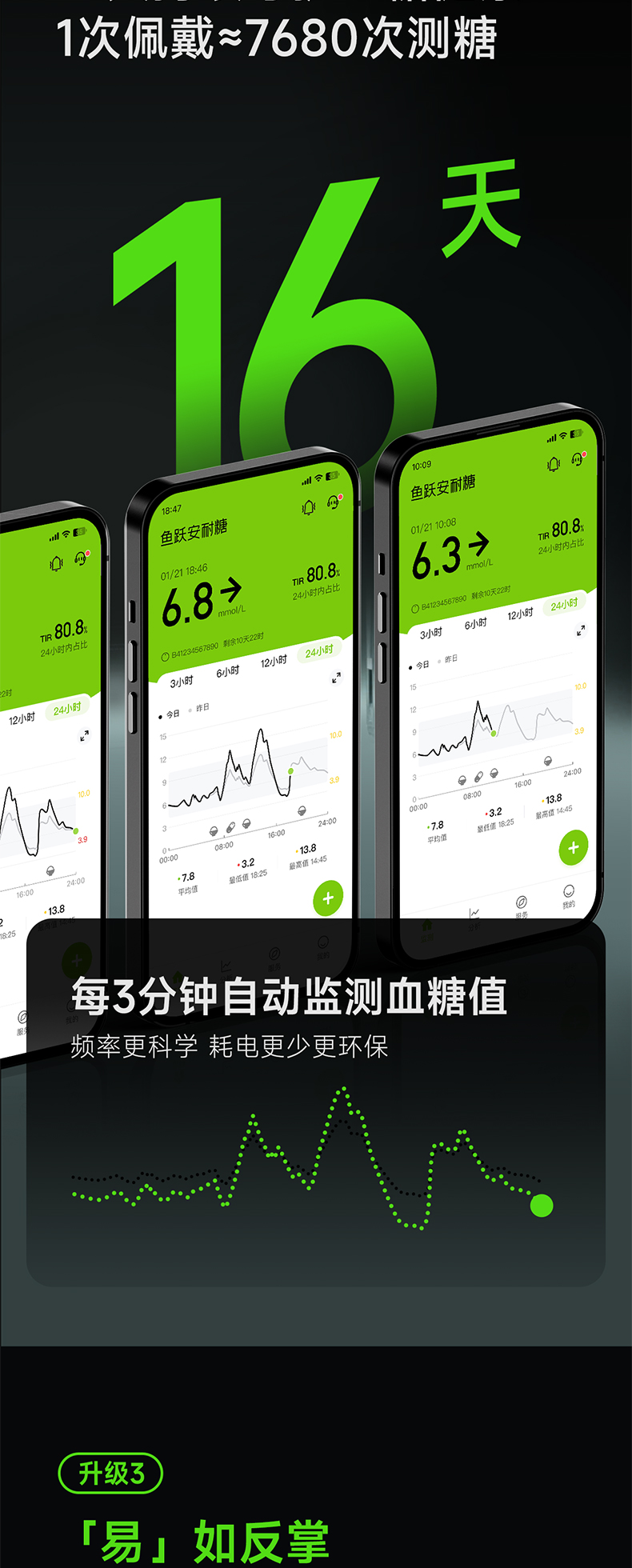 鱼跃第5代动态血糖仪24小时血糖动态监测仪测血糖免扎针家用5Pro