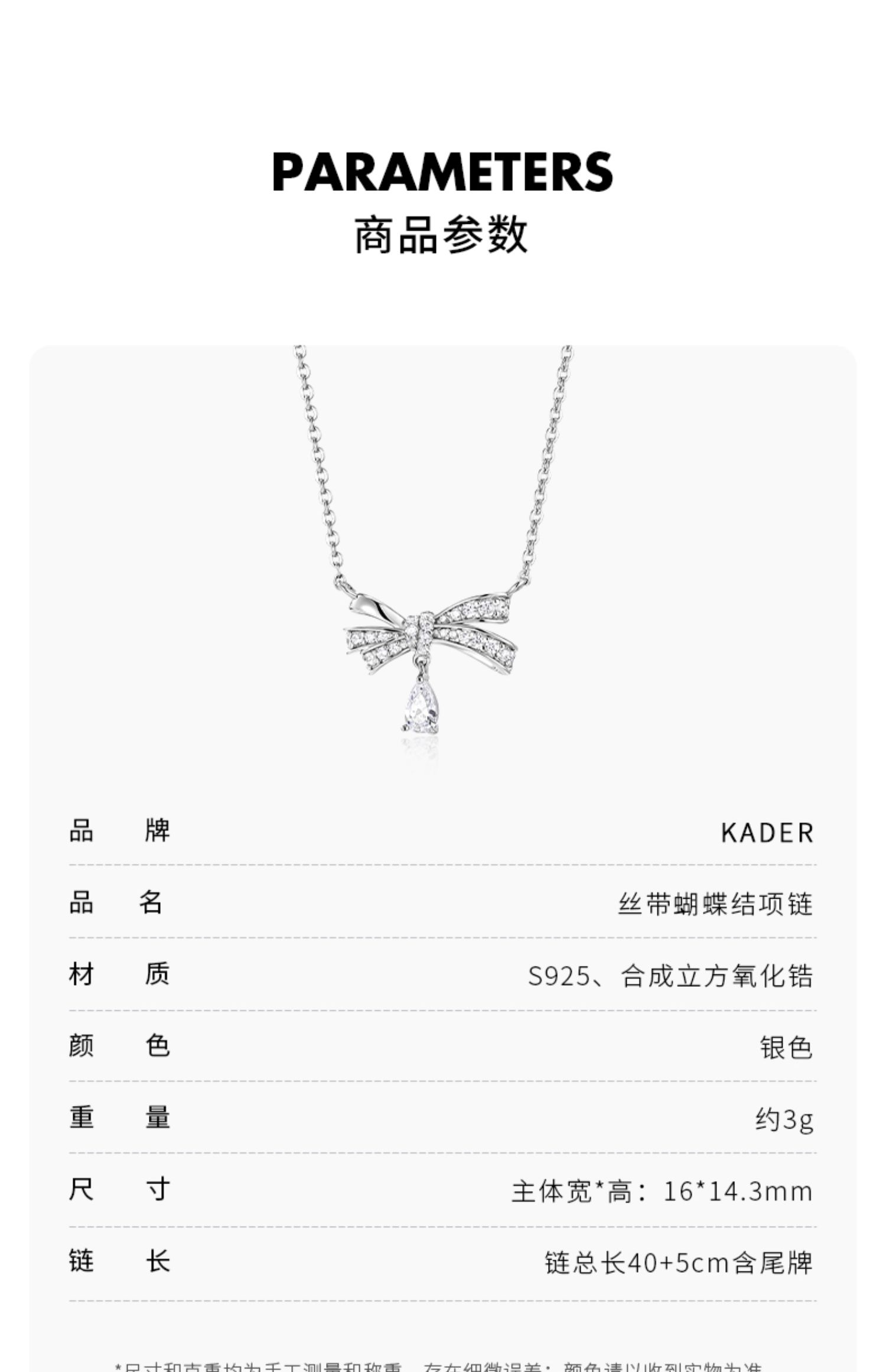 卡蒂罗丝带蝴蝶结项链女纯银轻奢小众设计2023年新款锁骨链礼物