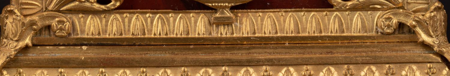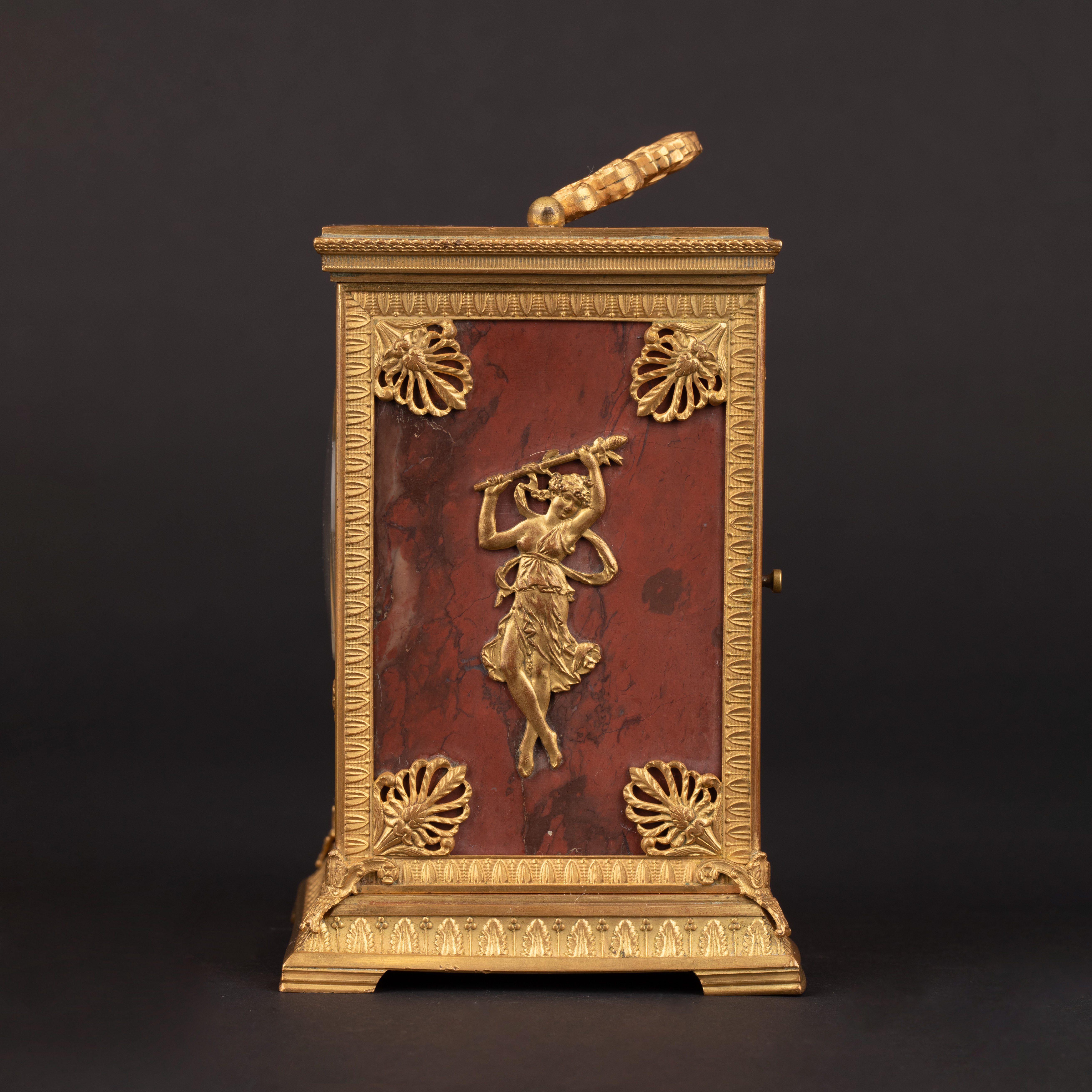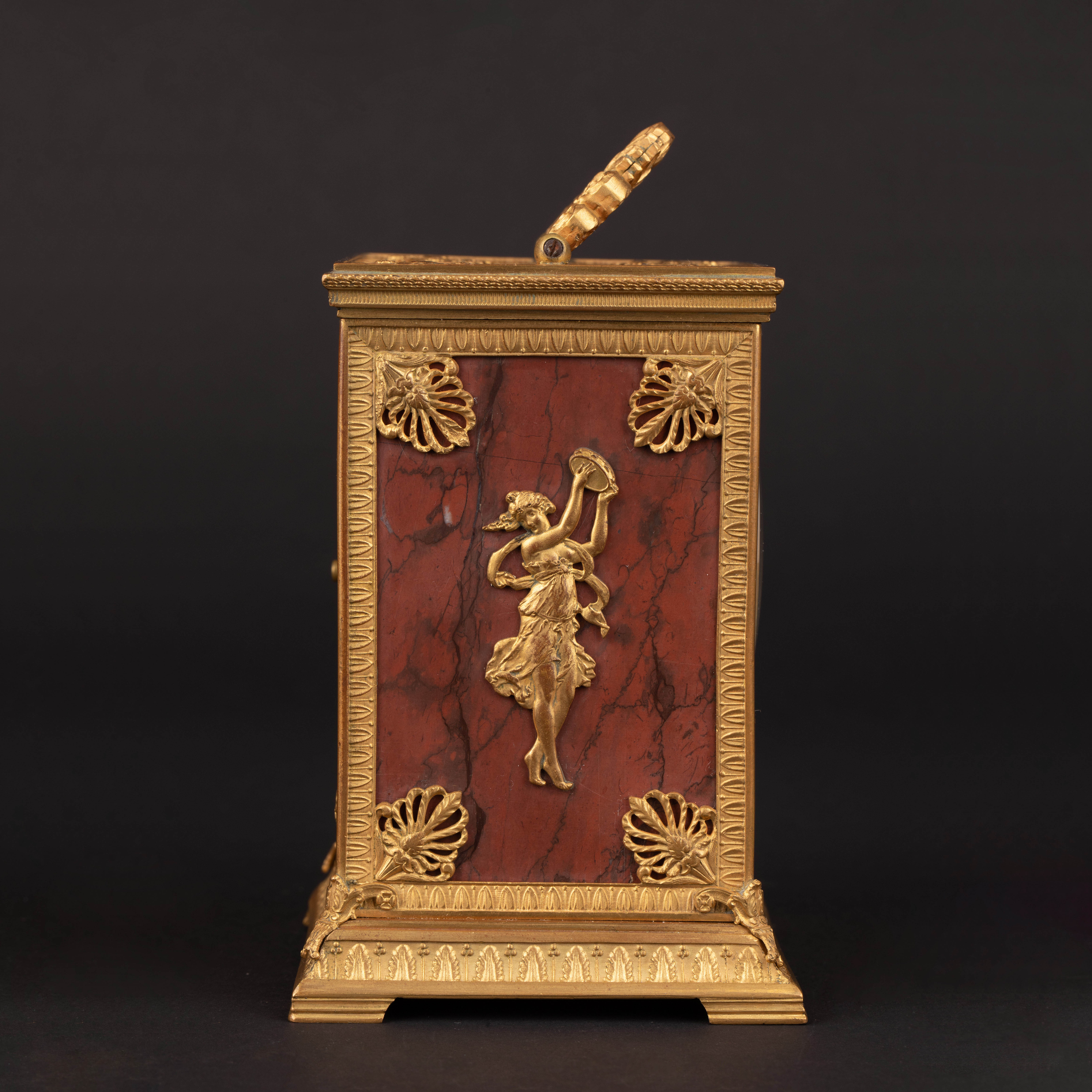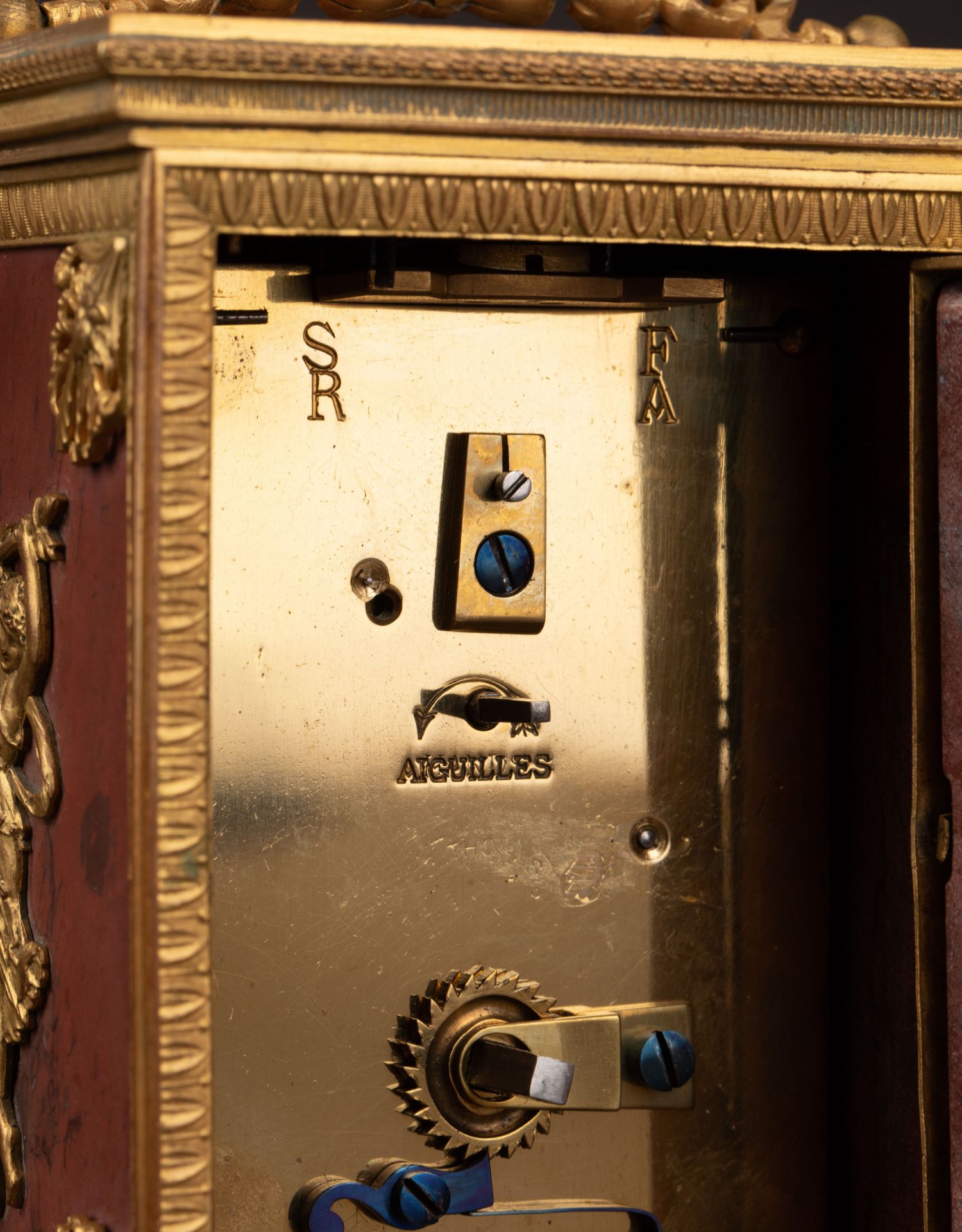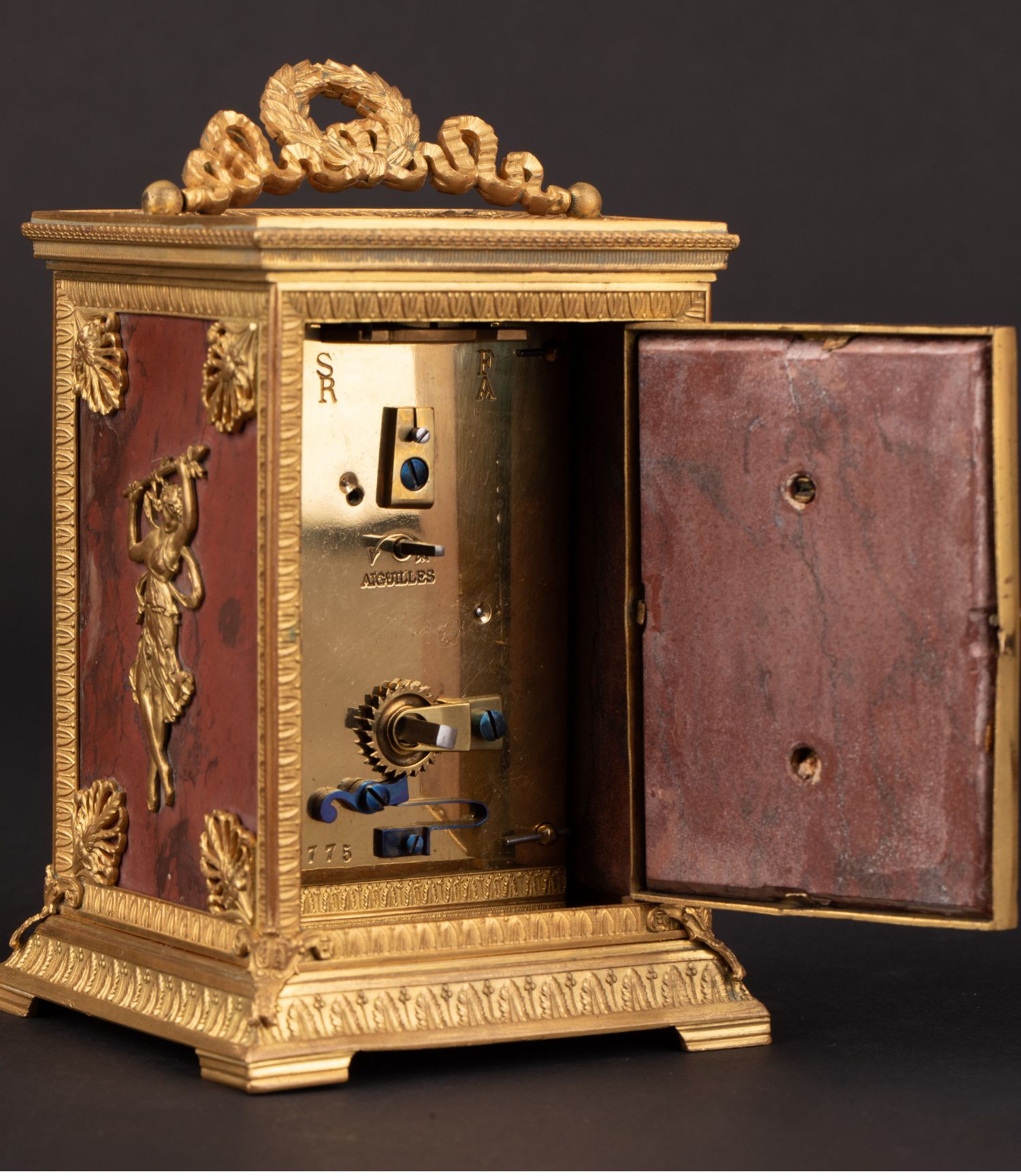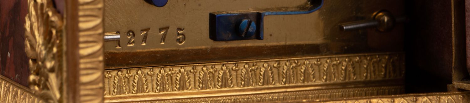 独角鹿西洋古董1880年代法国红色大理石面板鎏金青铜马车钟座钟