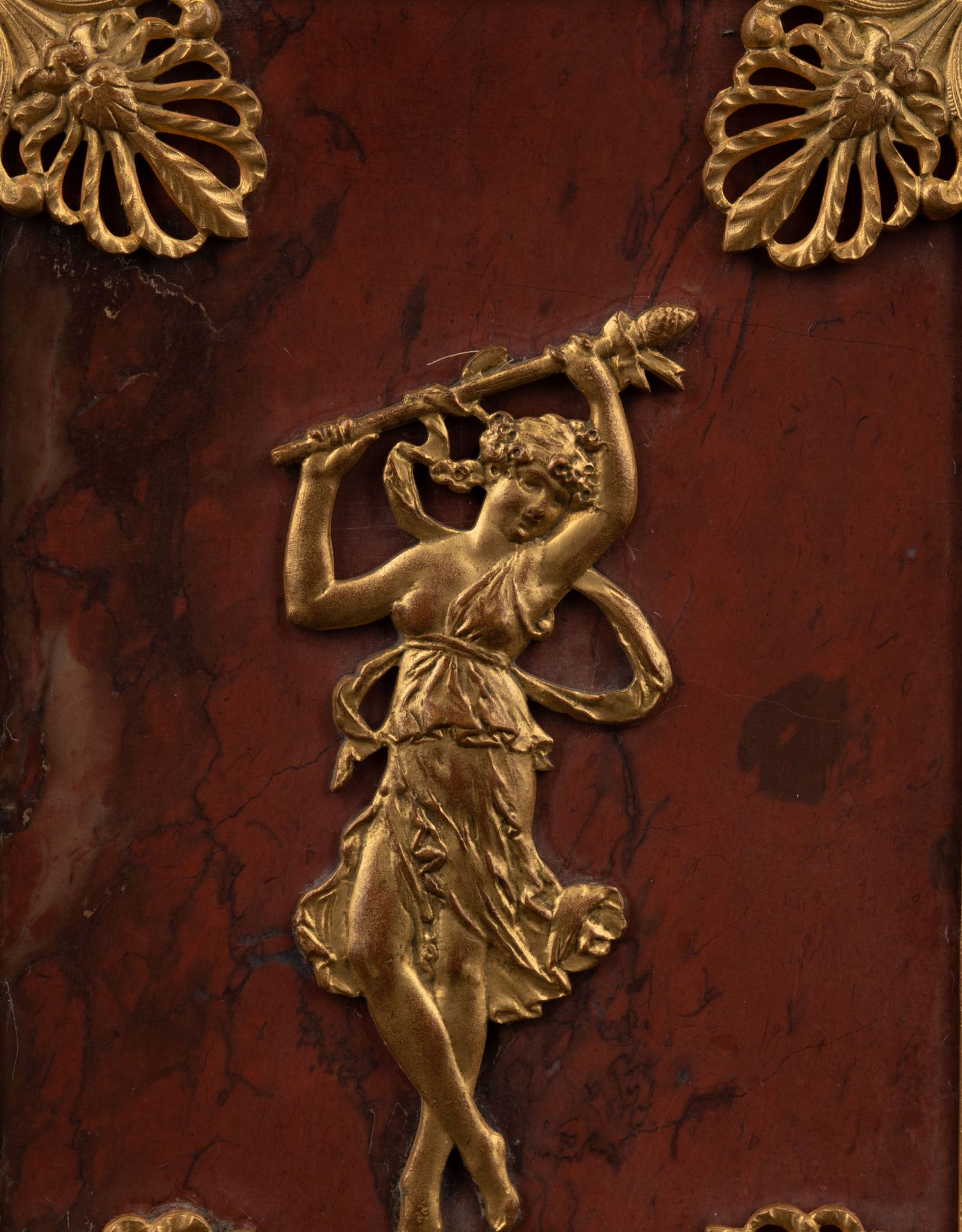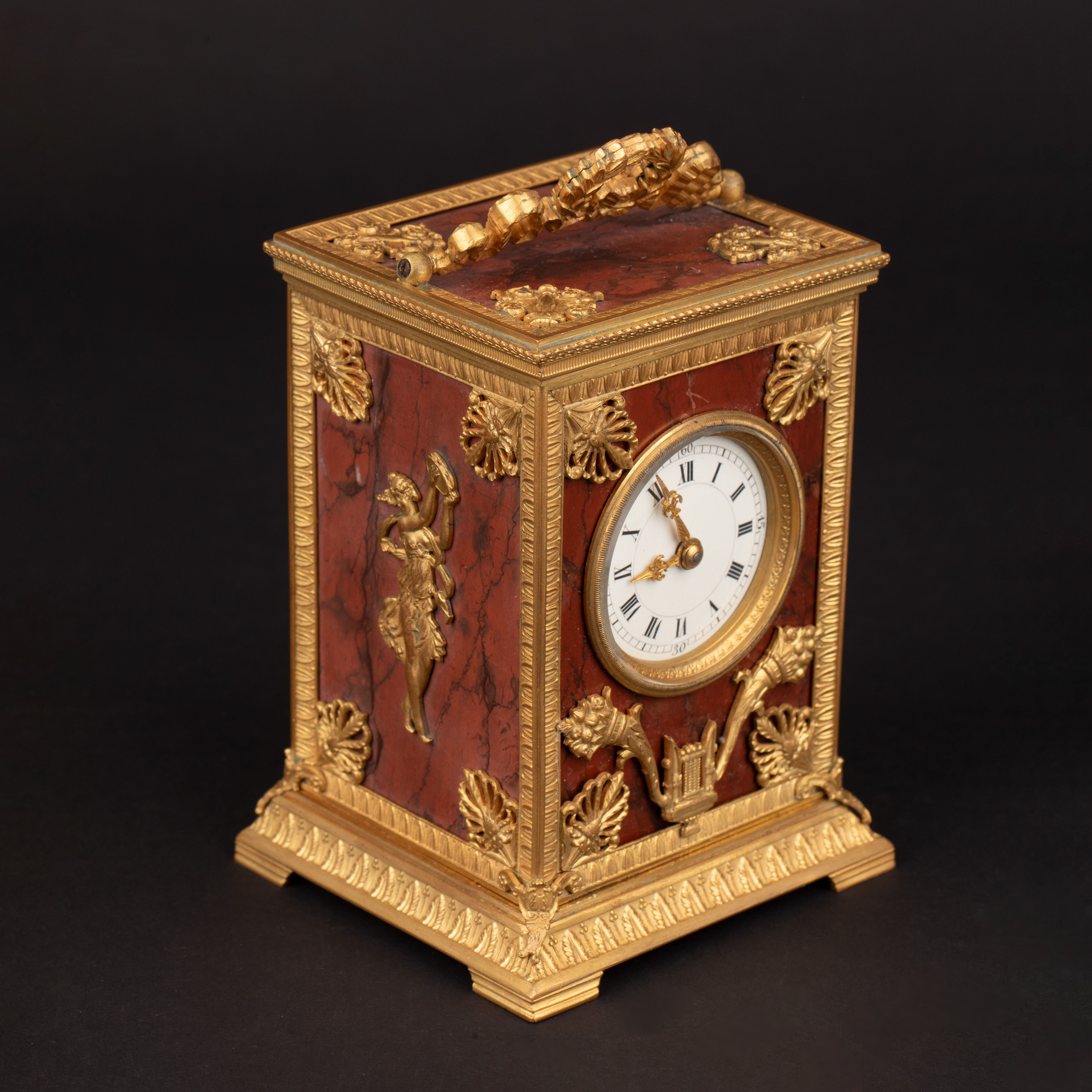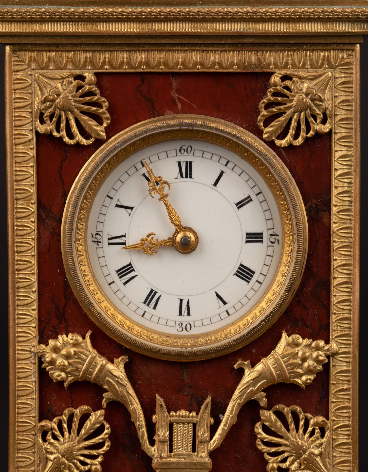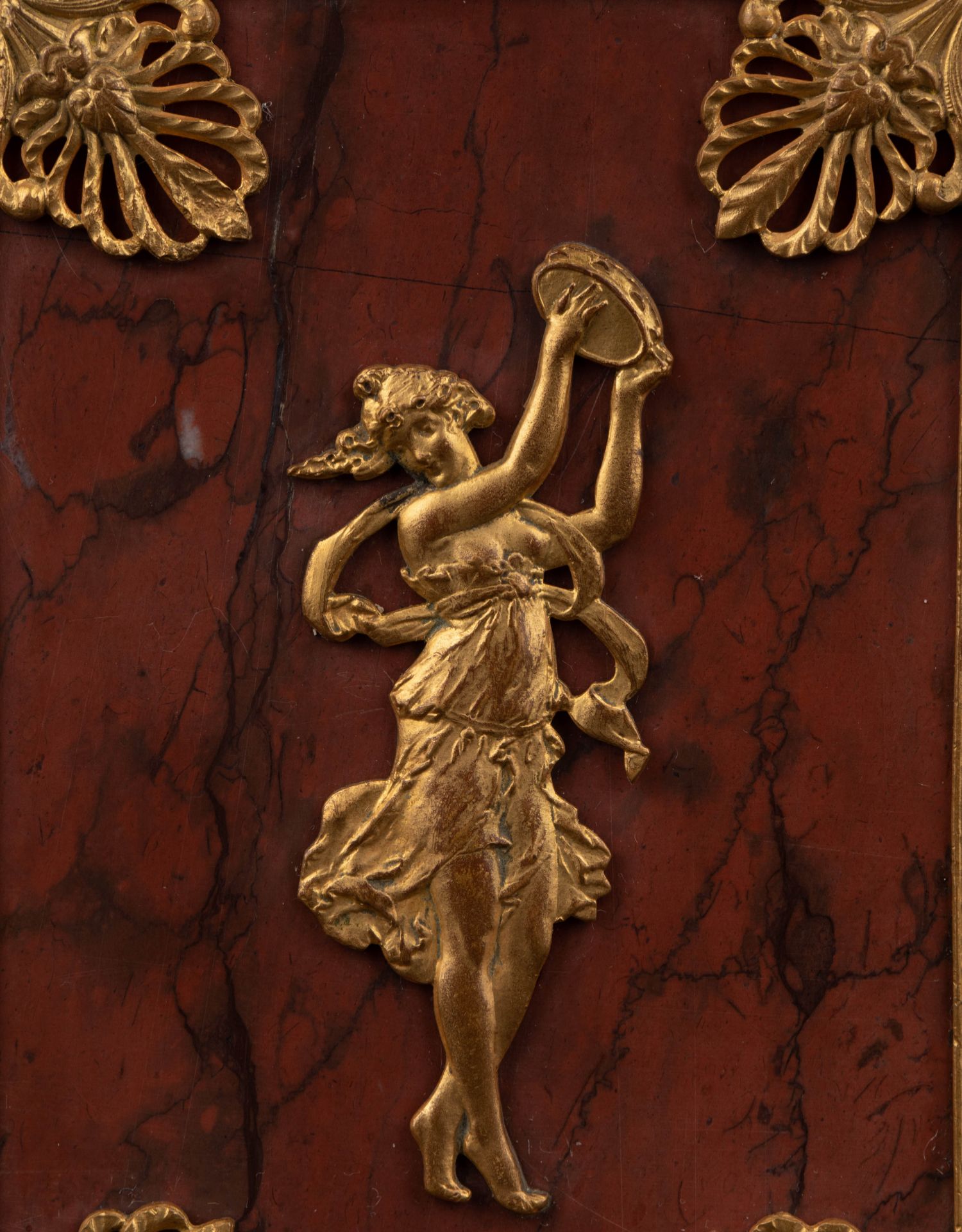 独角鹿西洋古董1880年代法国红色大理石面板鎏金青铜马车钟座钟