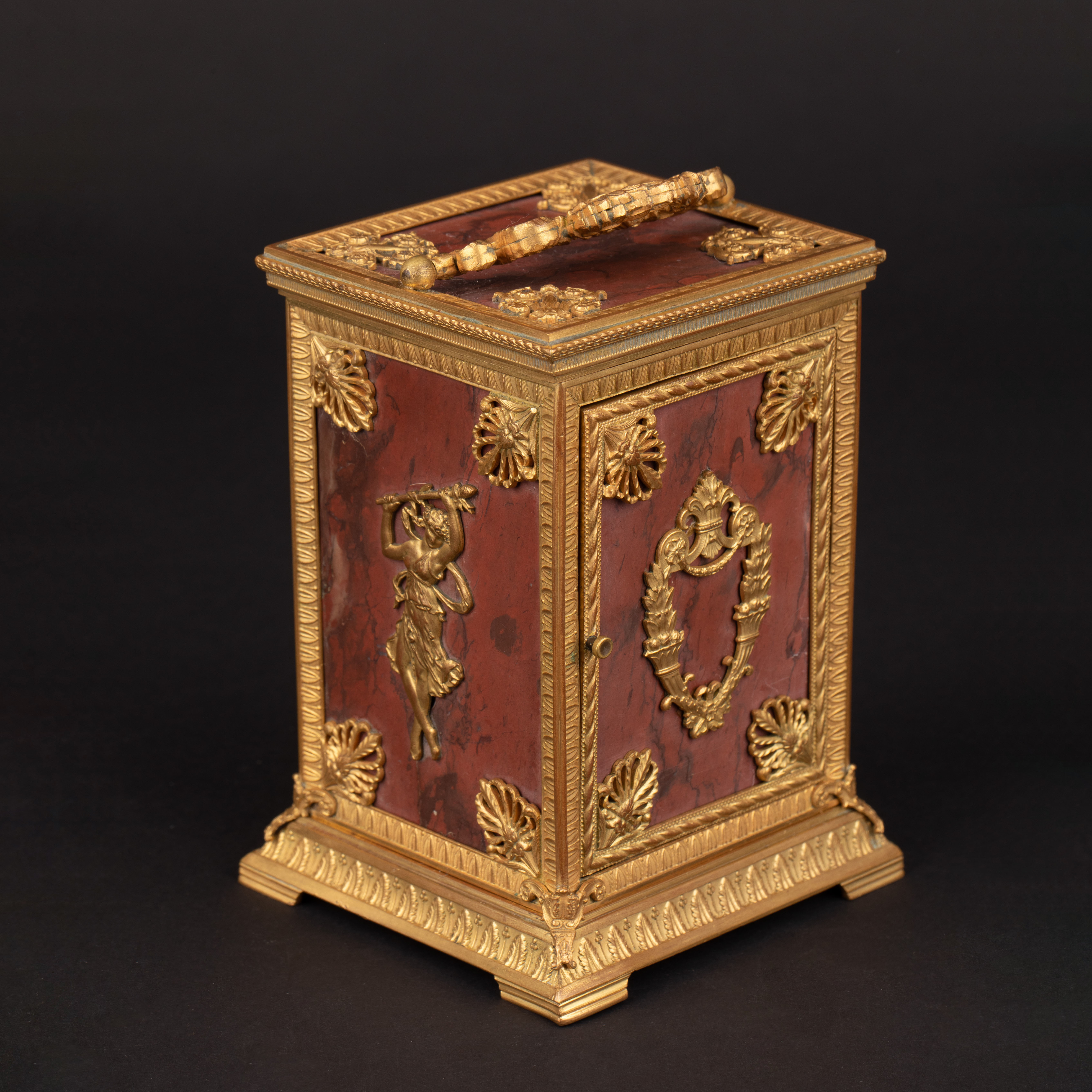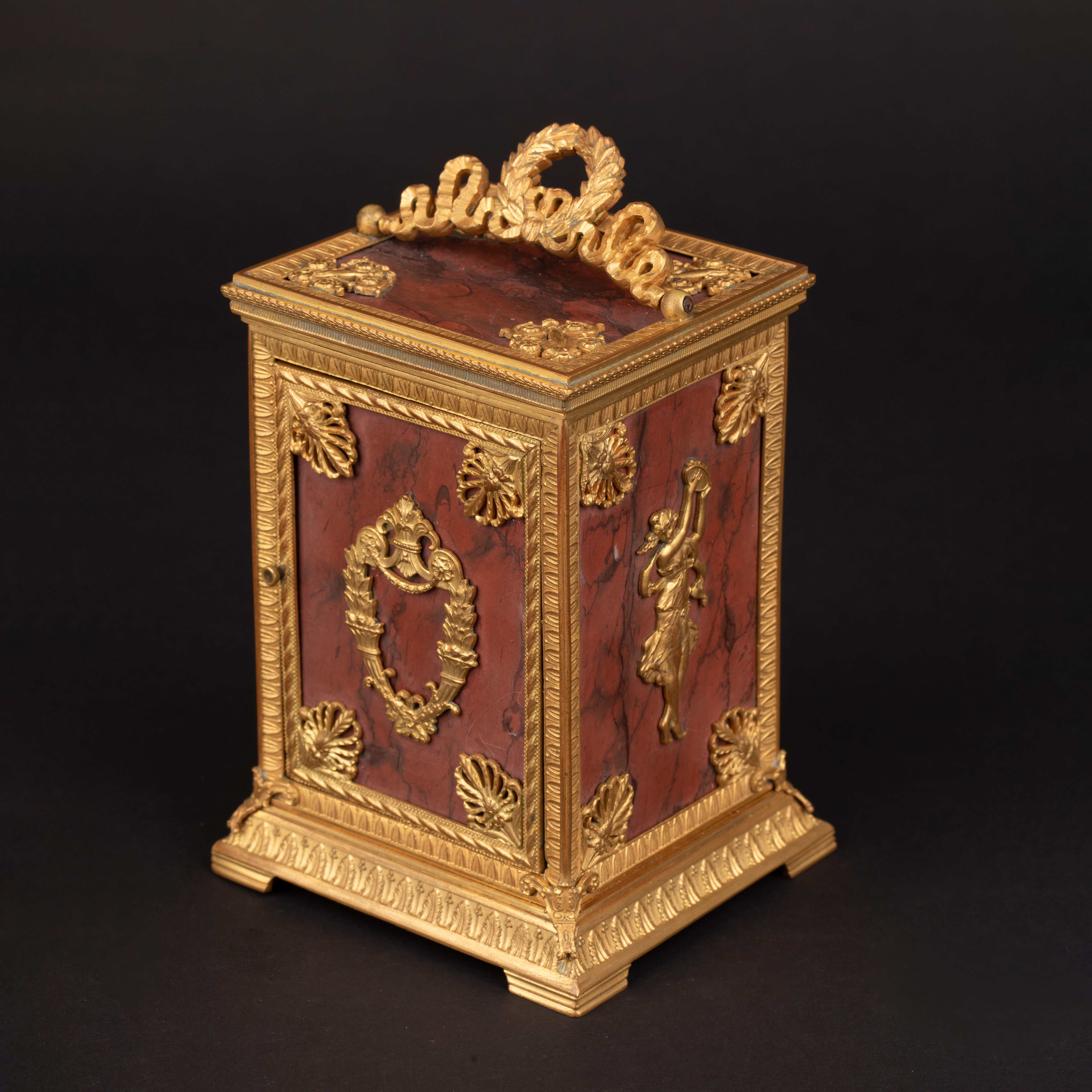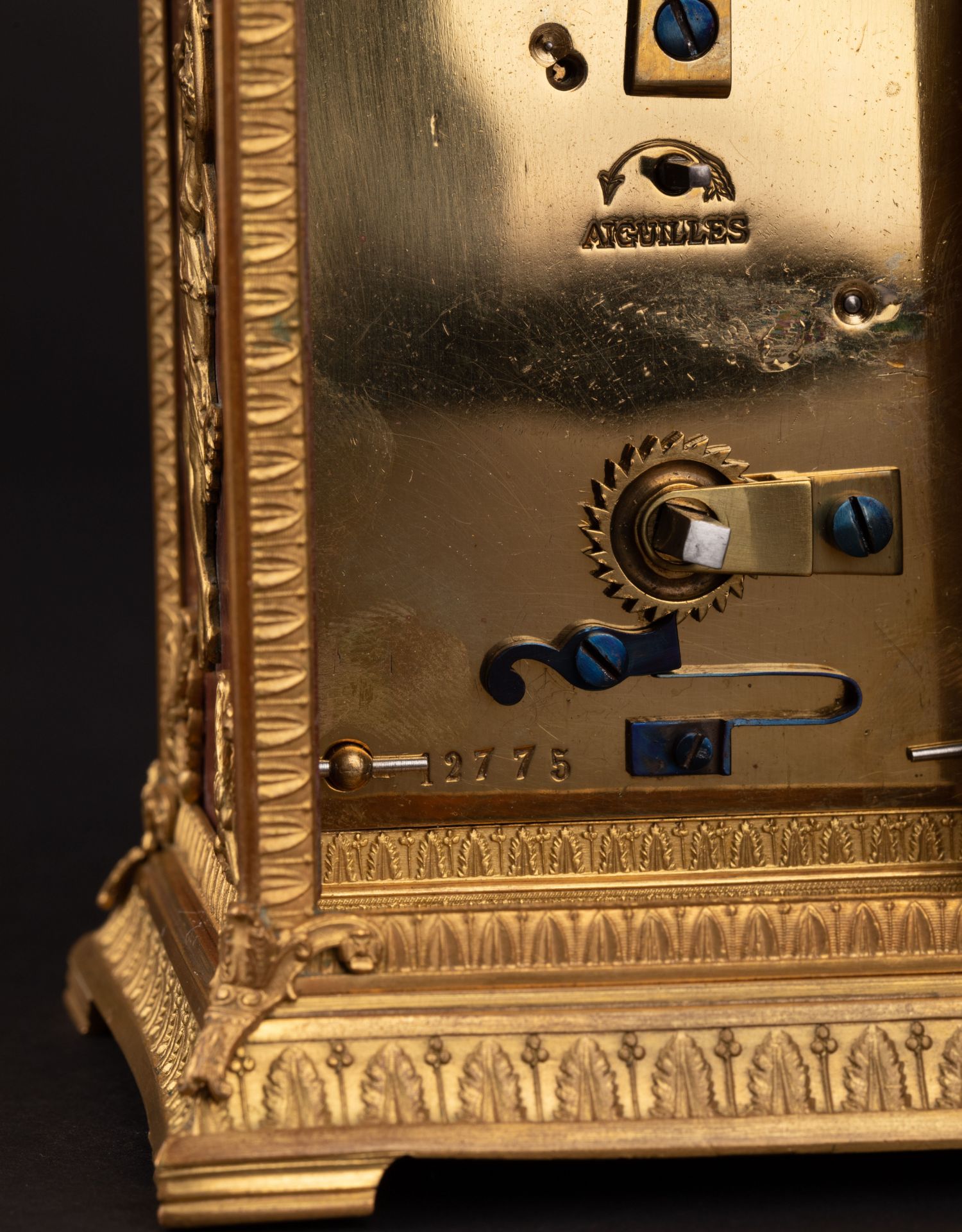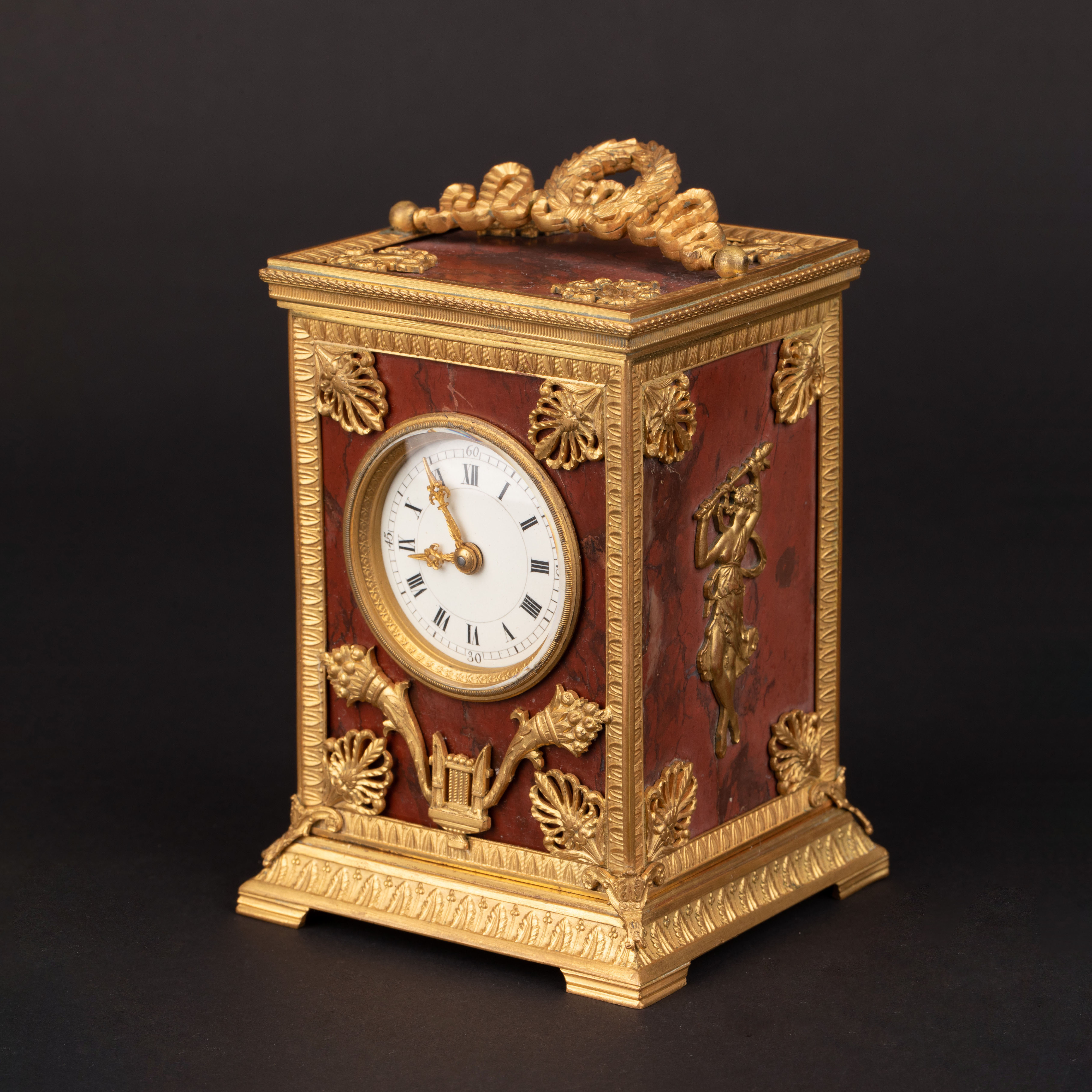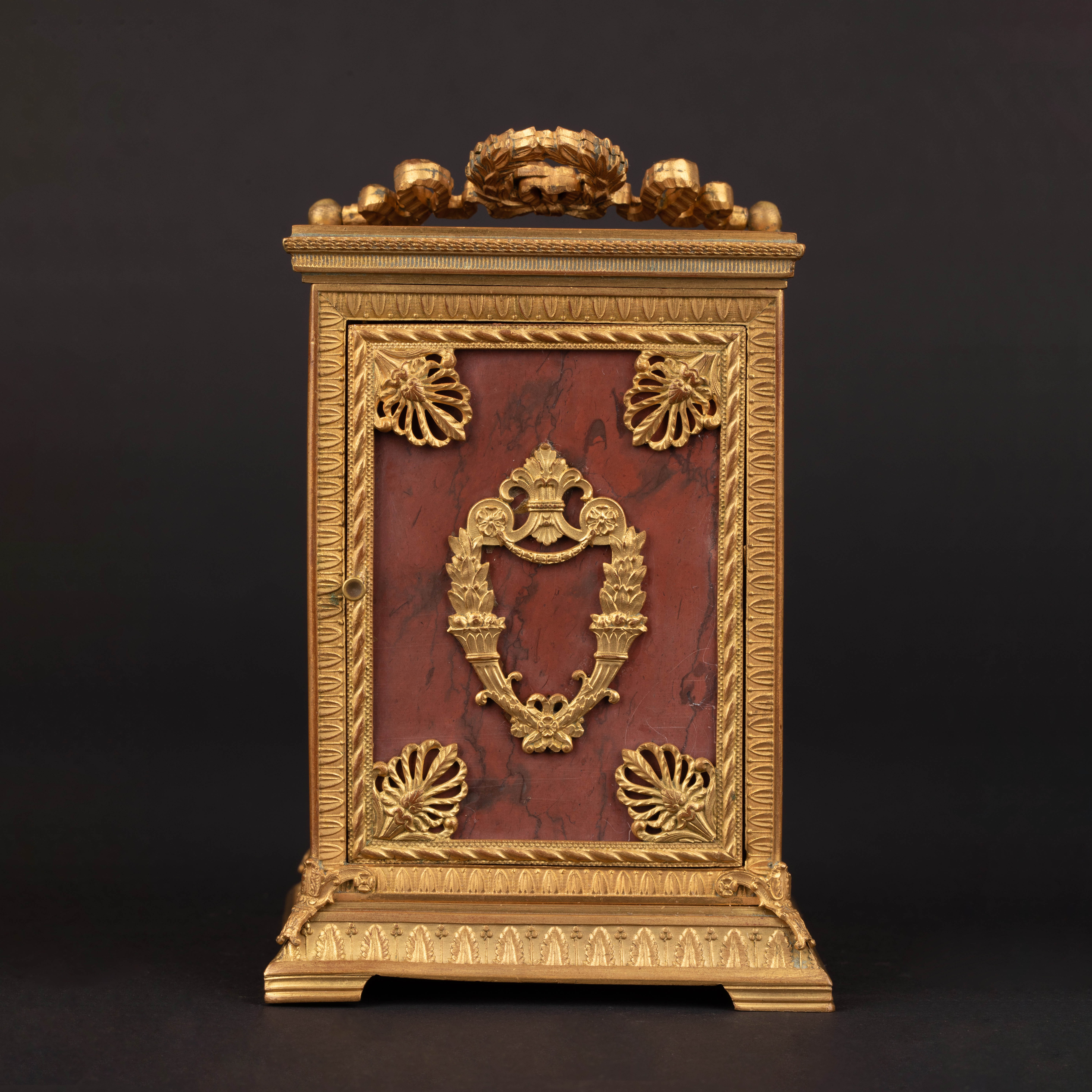 独角鹿西洋古董1880年代法国红色大理石面板鎏金青铜马车钟座钟