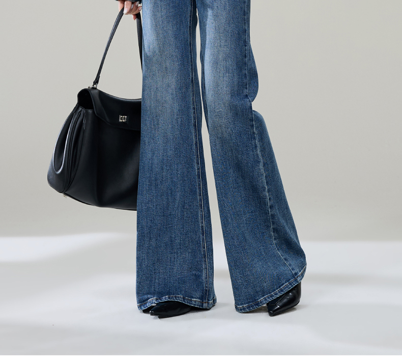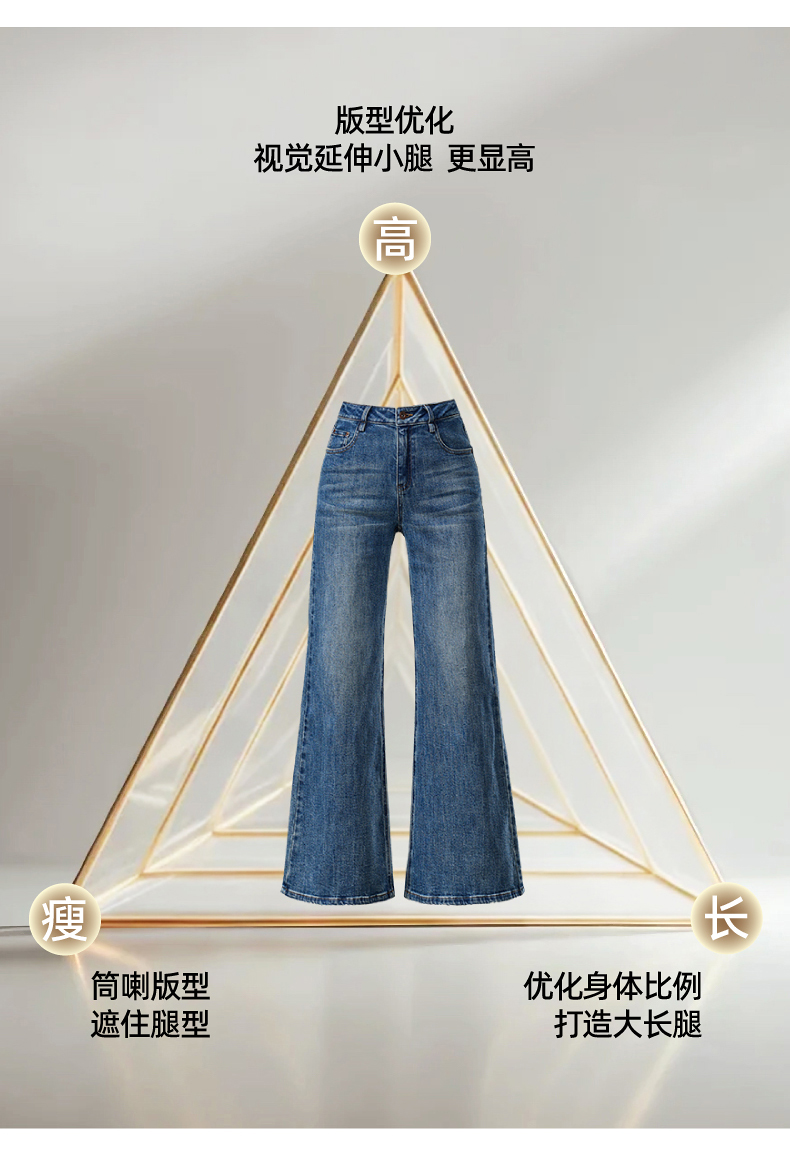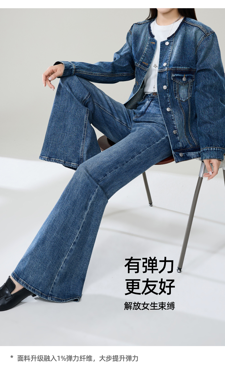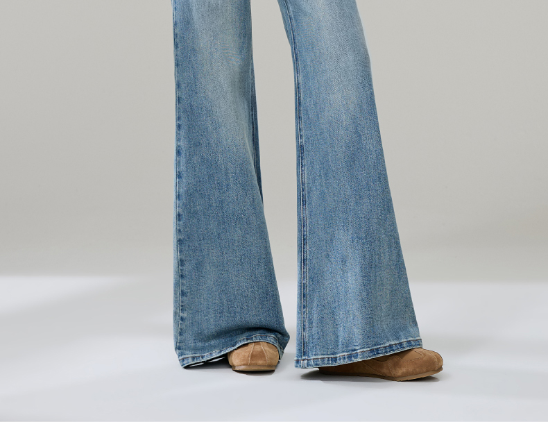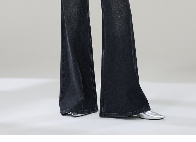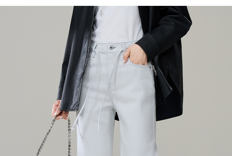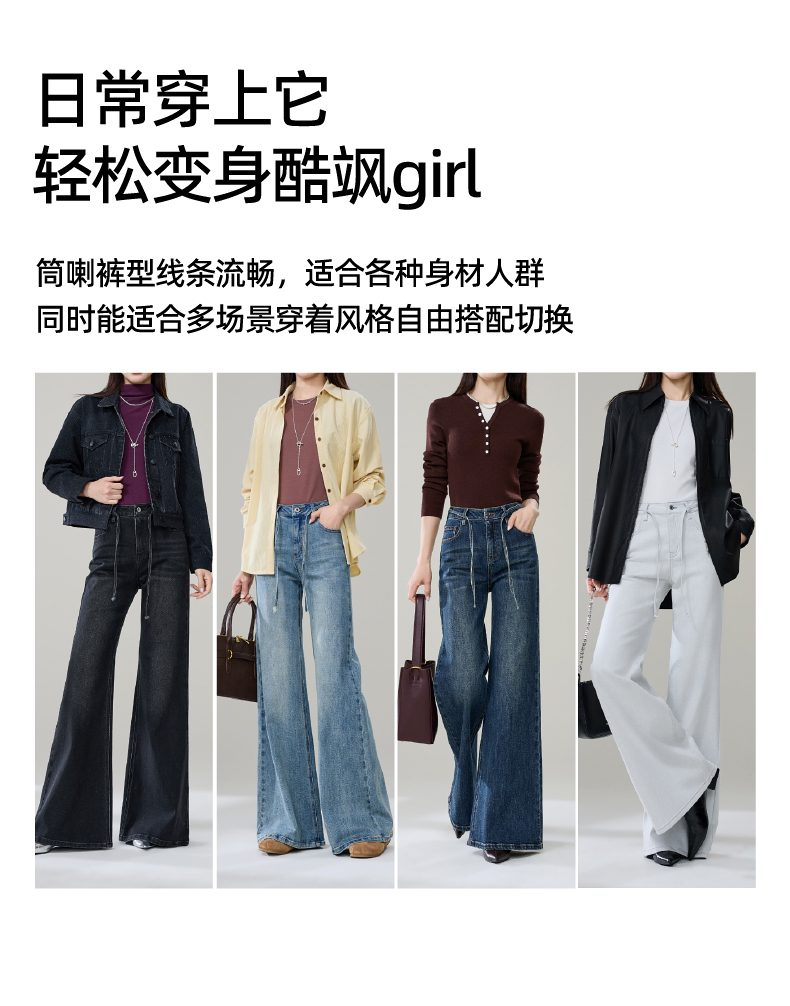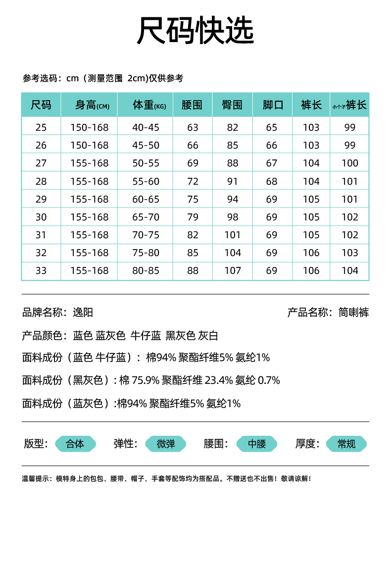 【两种裤长!春新品!筒喇牛仔】逸阳春季新款抽绳显高直筒喇叭牛仔裤8226