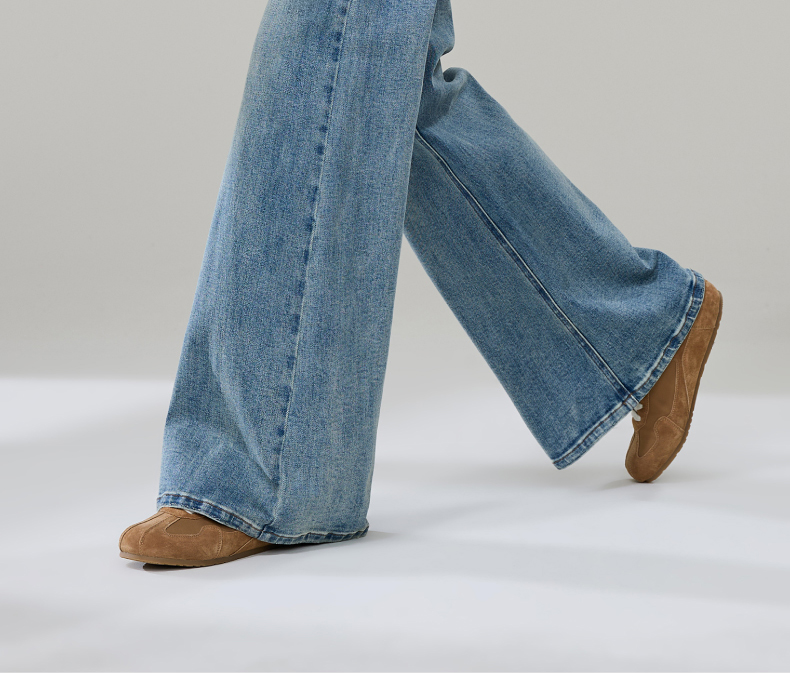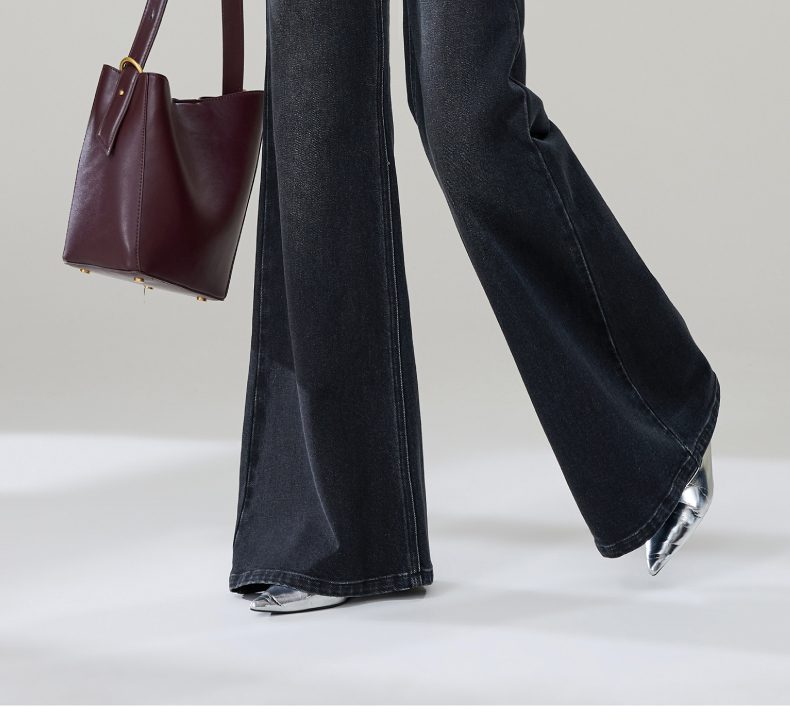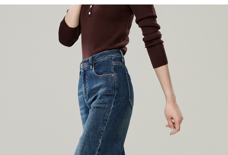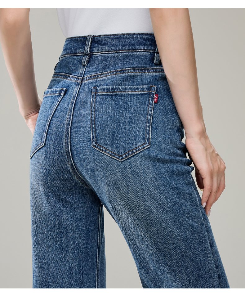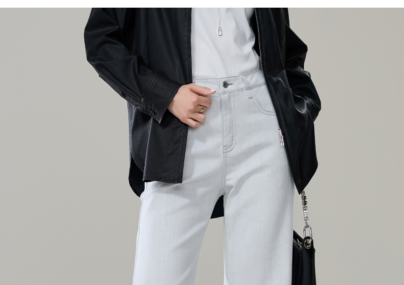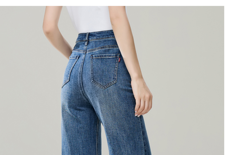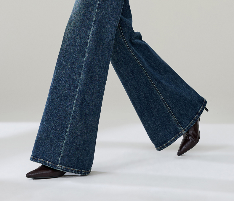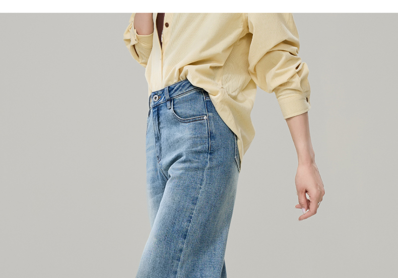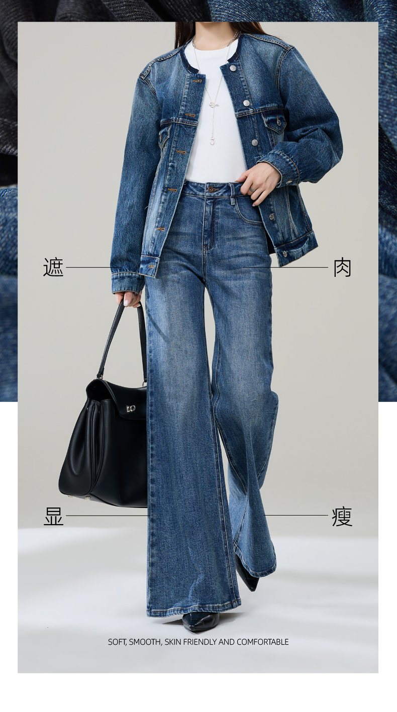 【两种裤长!春新品!筒喇牛仔】逸阳春季新款抽绳显高直筒喇叭牛仔裤8226