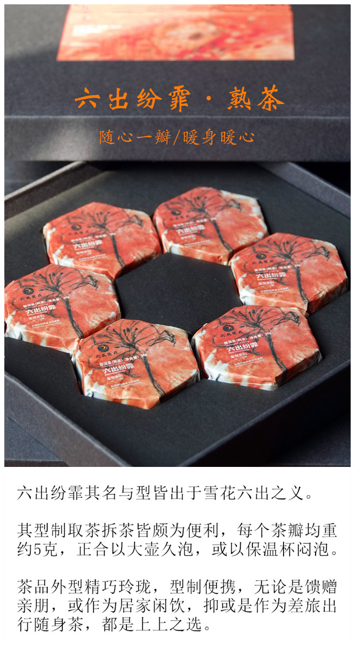 伴手茶礼 2020新品 六出纷霏 普洱熟茶 六瓣茶礼 一瓣一泡 6*30克/盒 天威德成出品