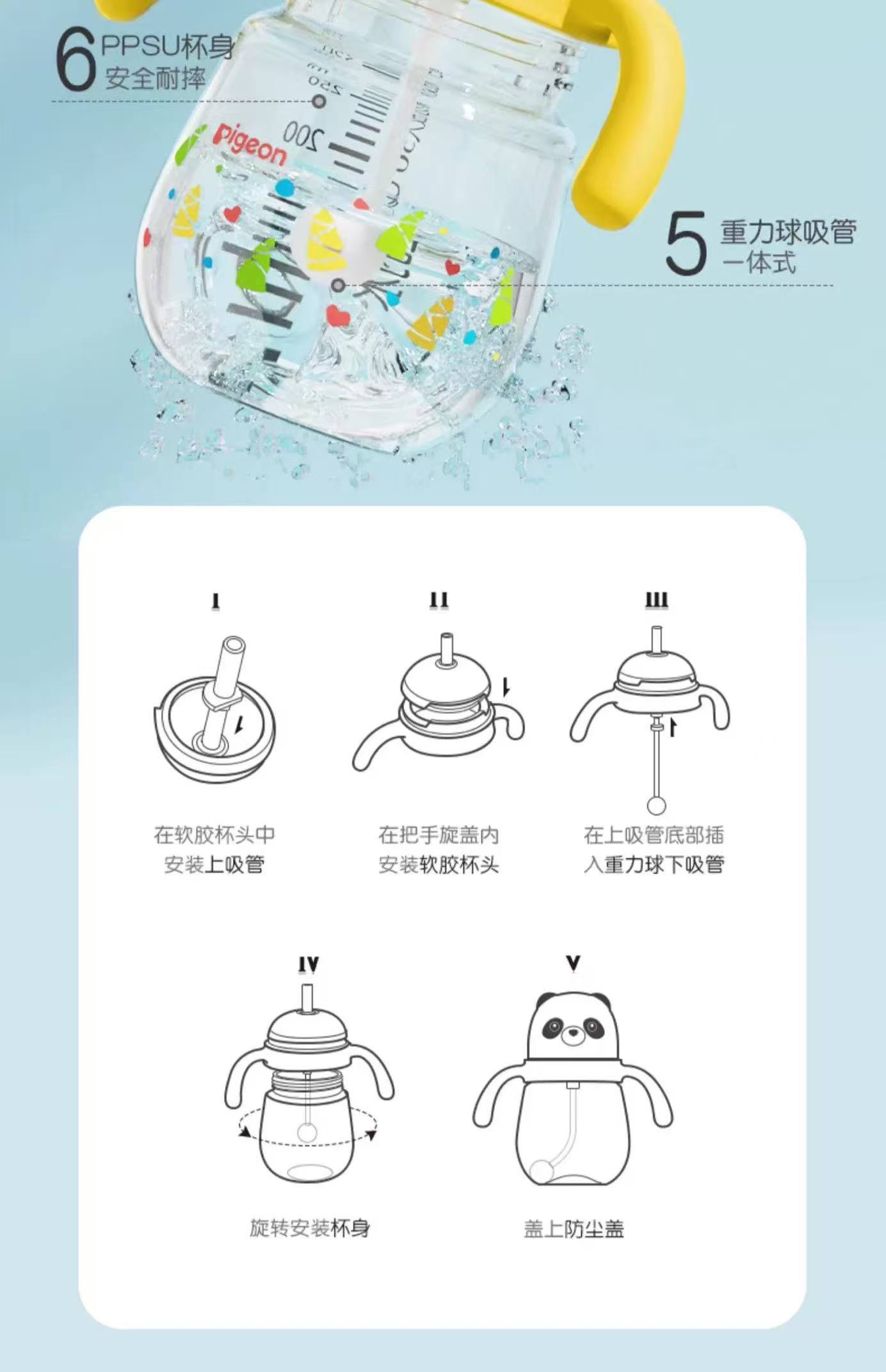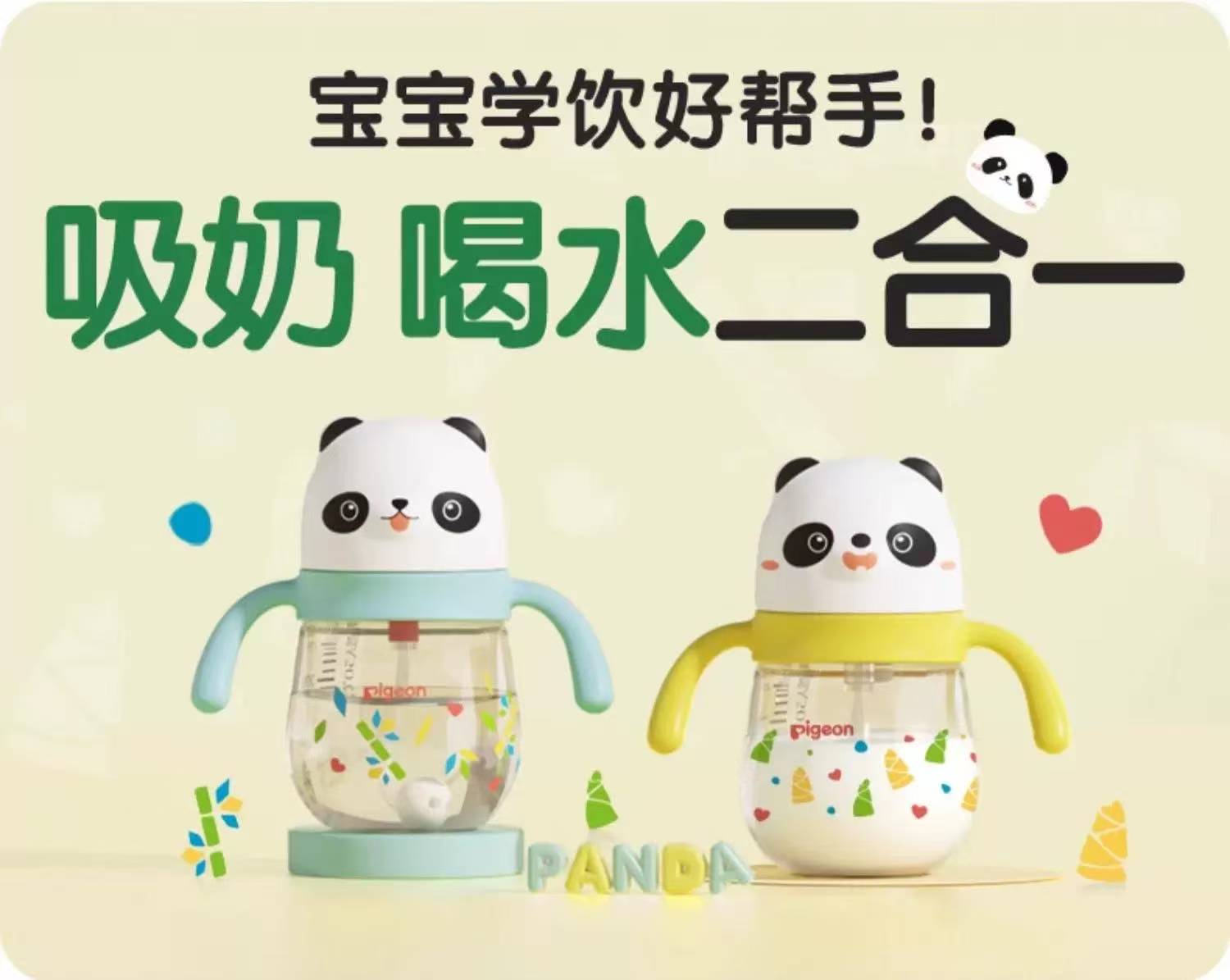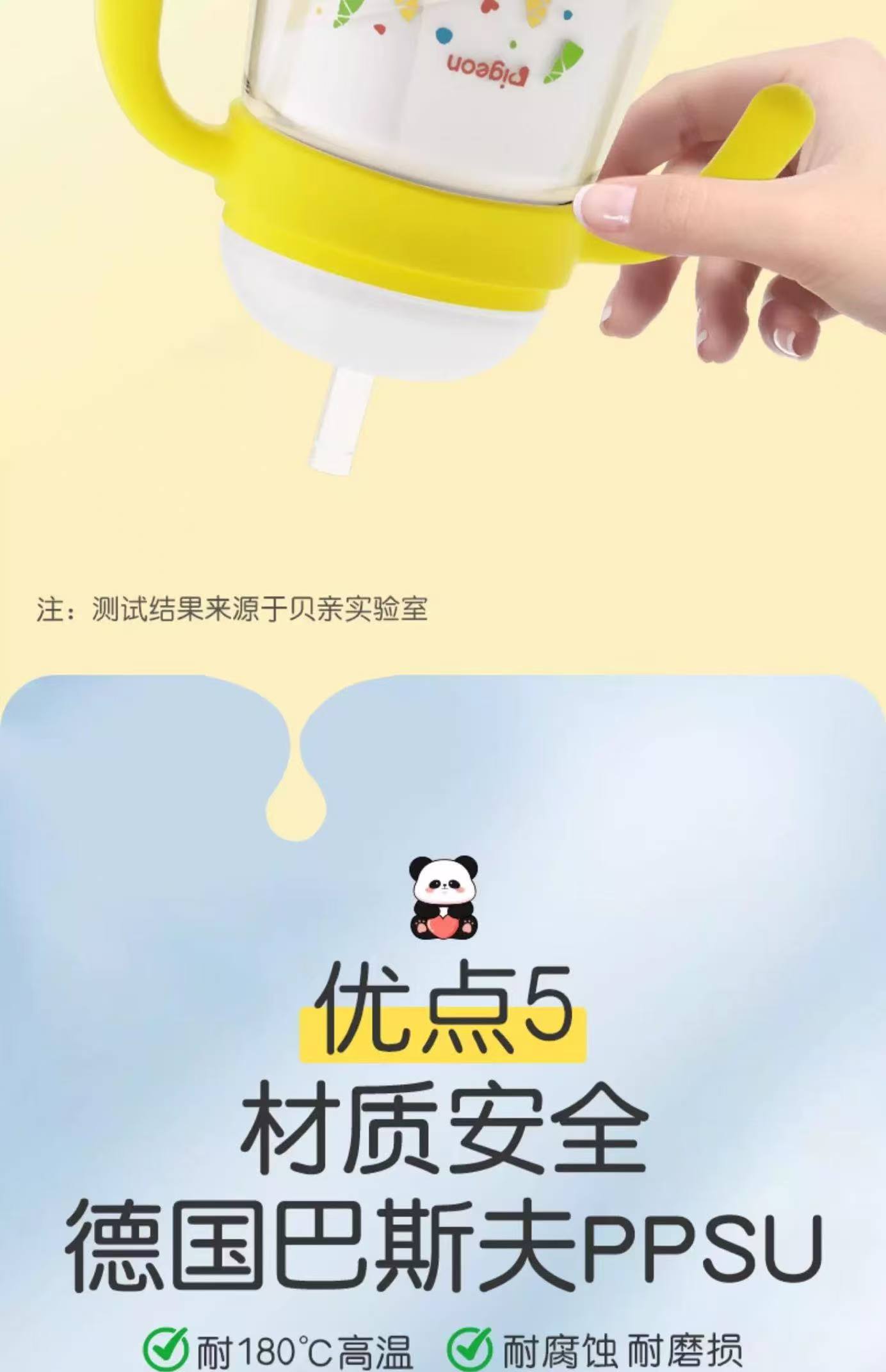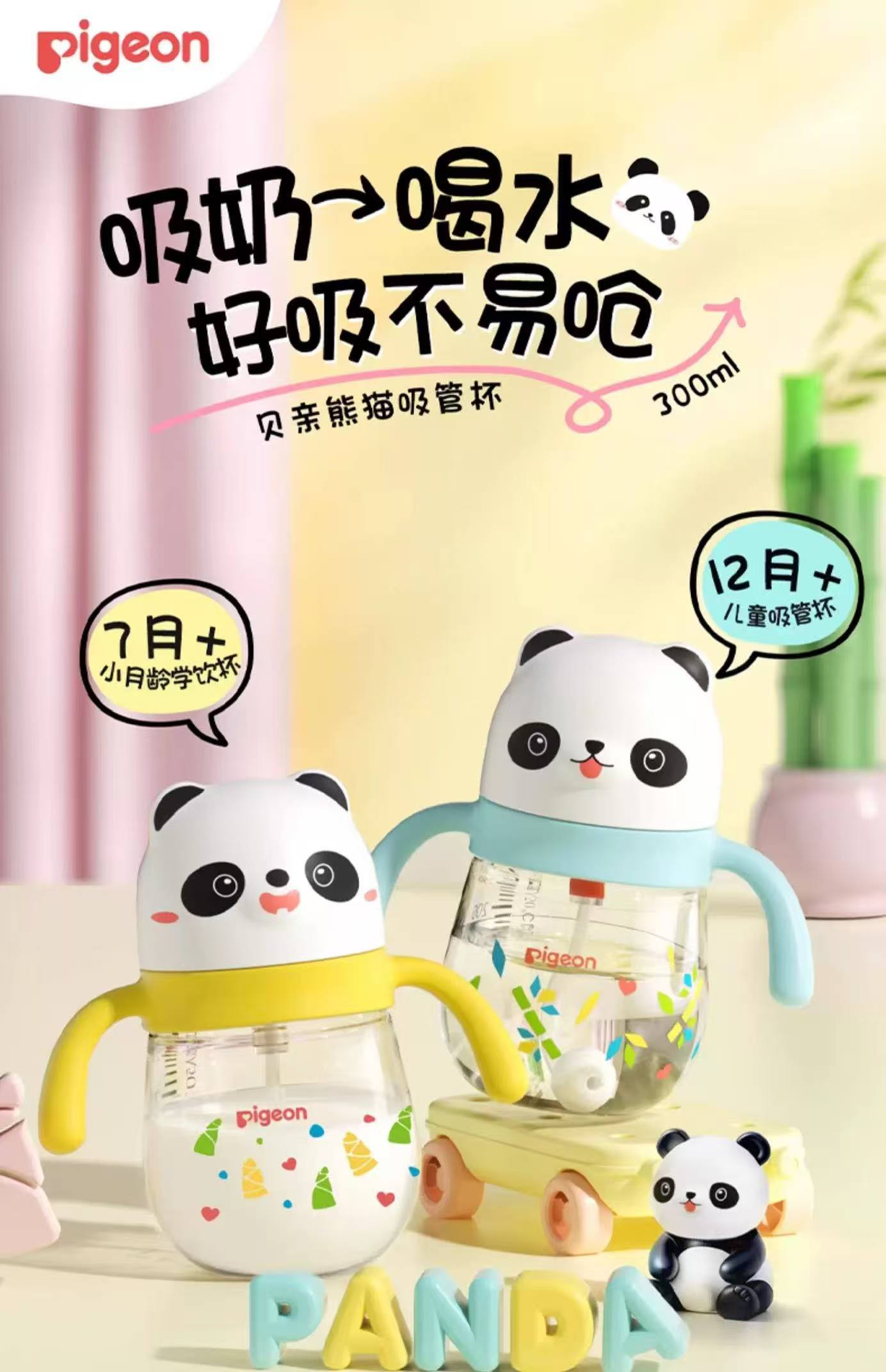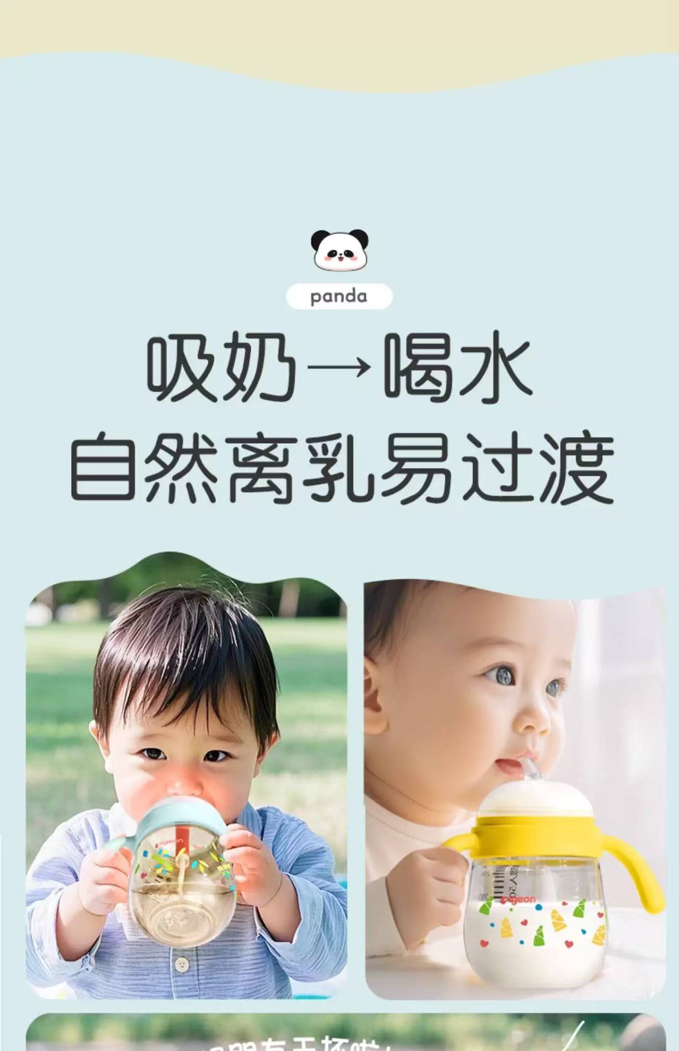 贝亲熊猫吸管水杯黄色蓝色300ml