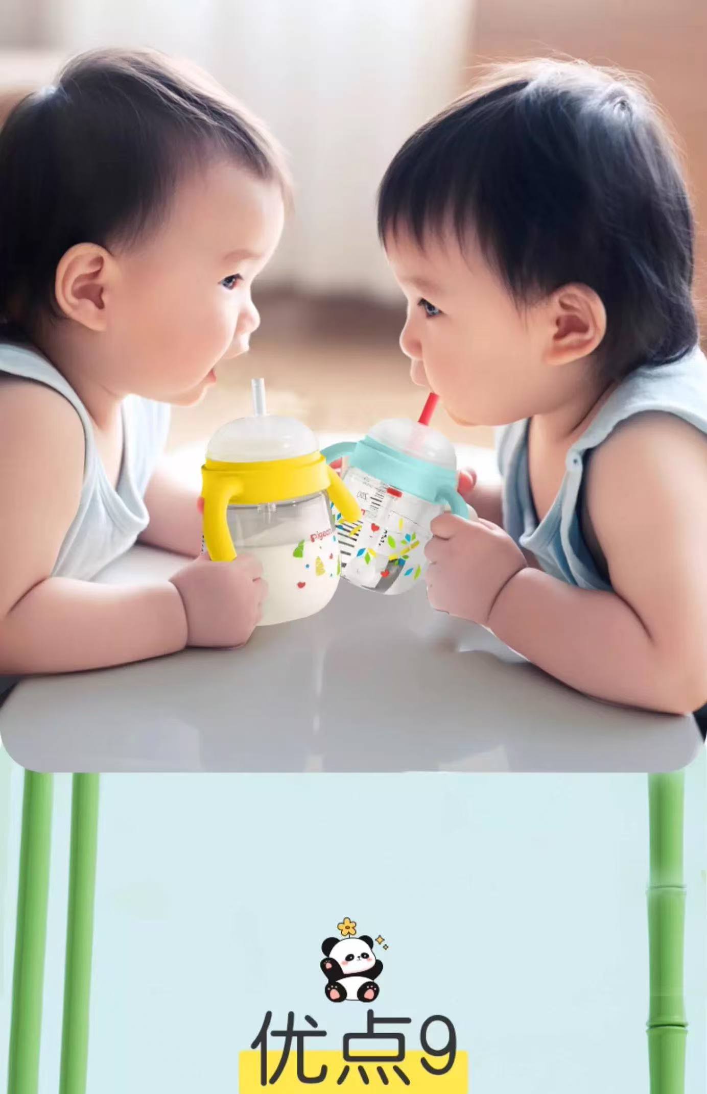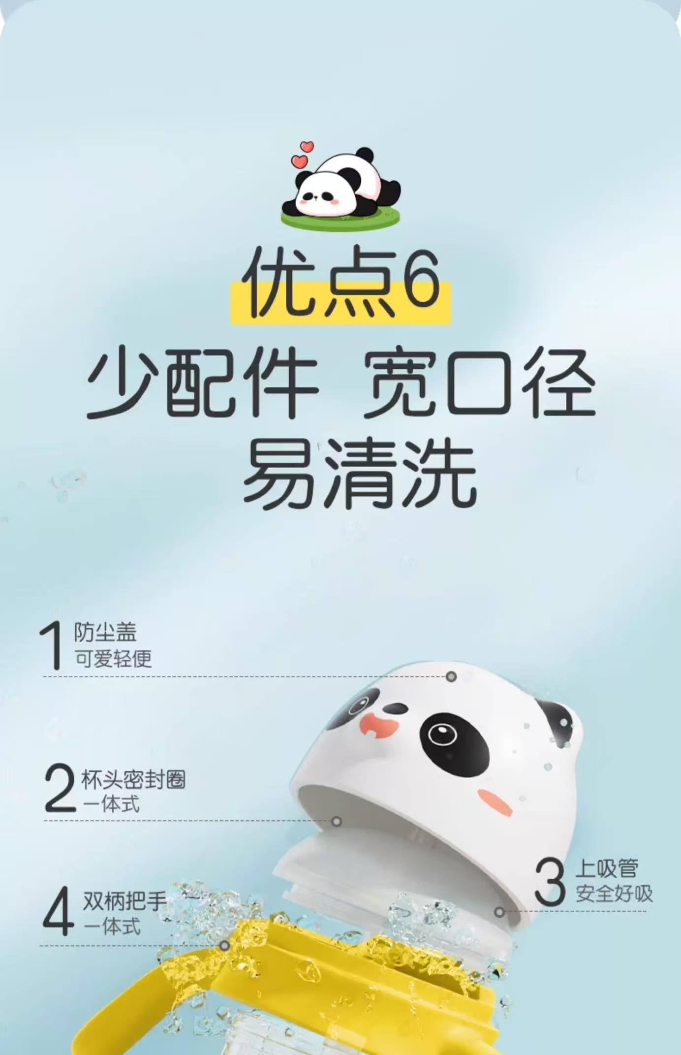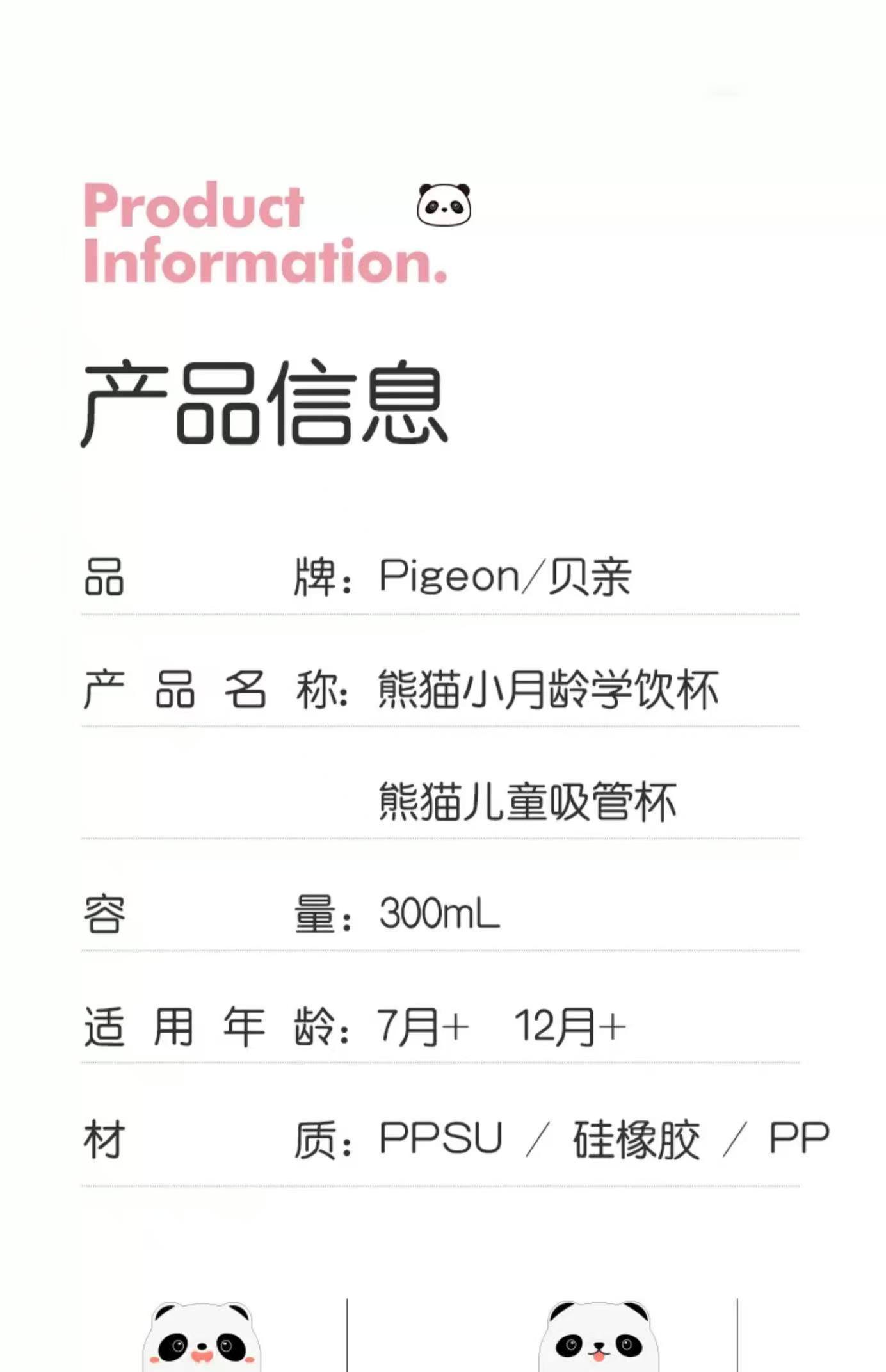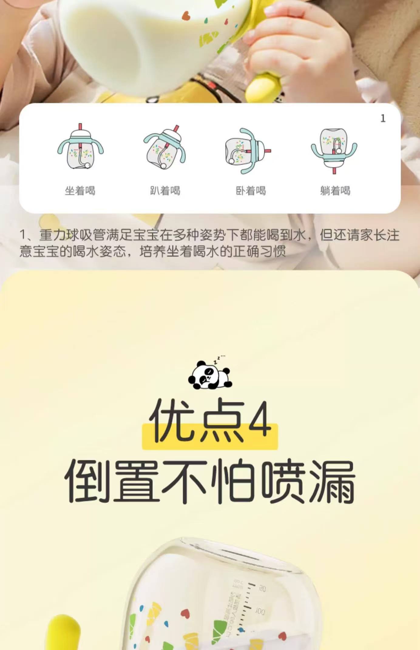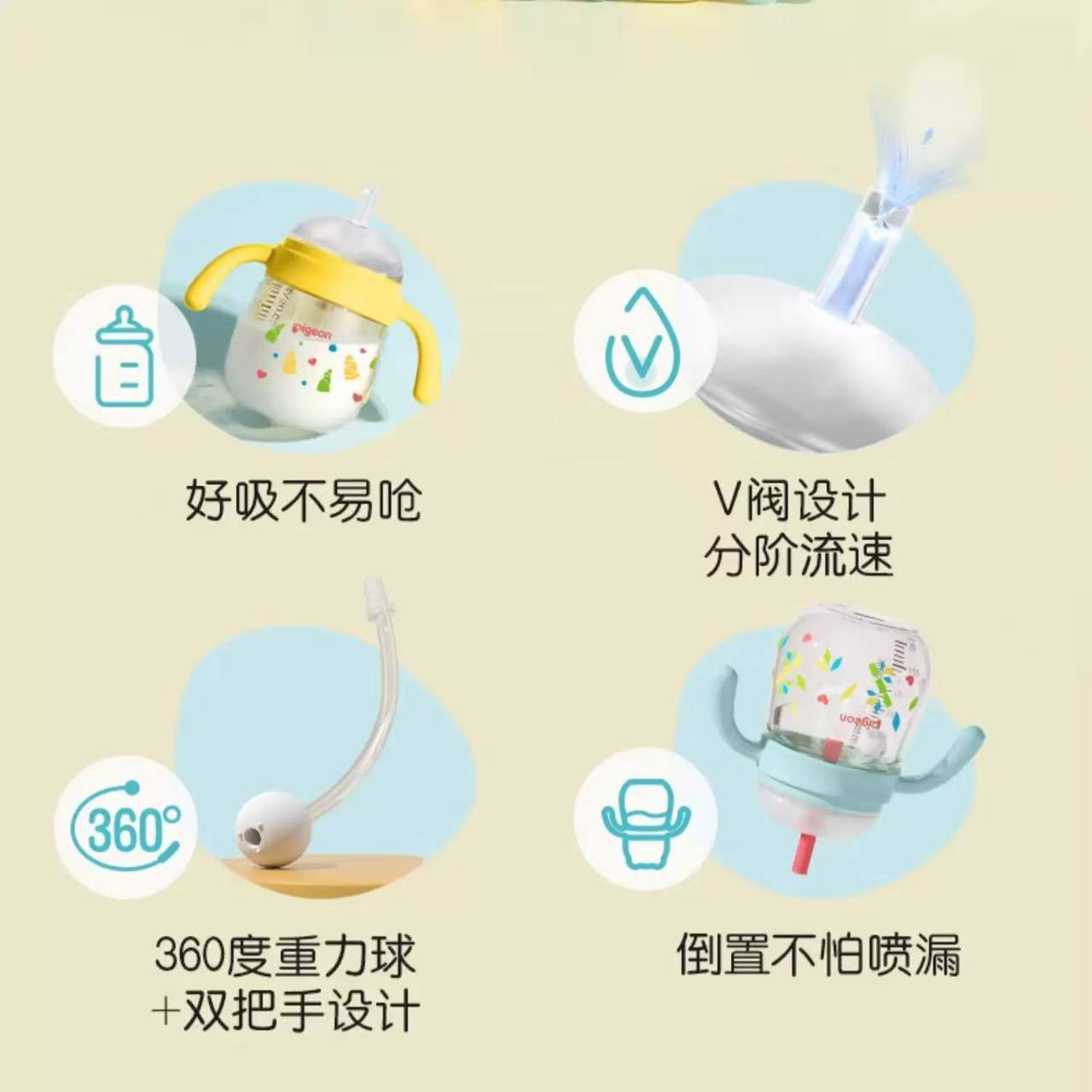 贝亲熊猫吸管水杯黄色蓝色300ml