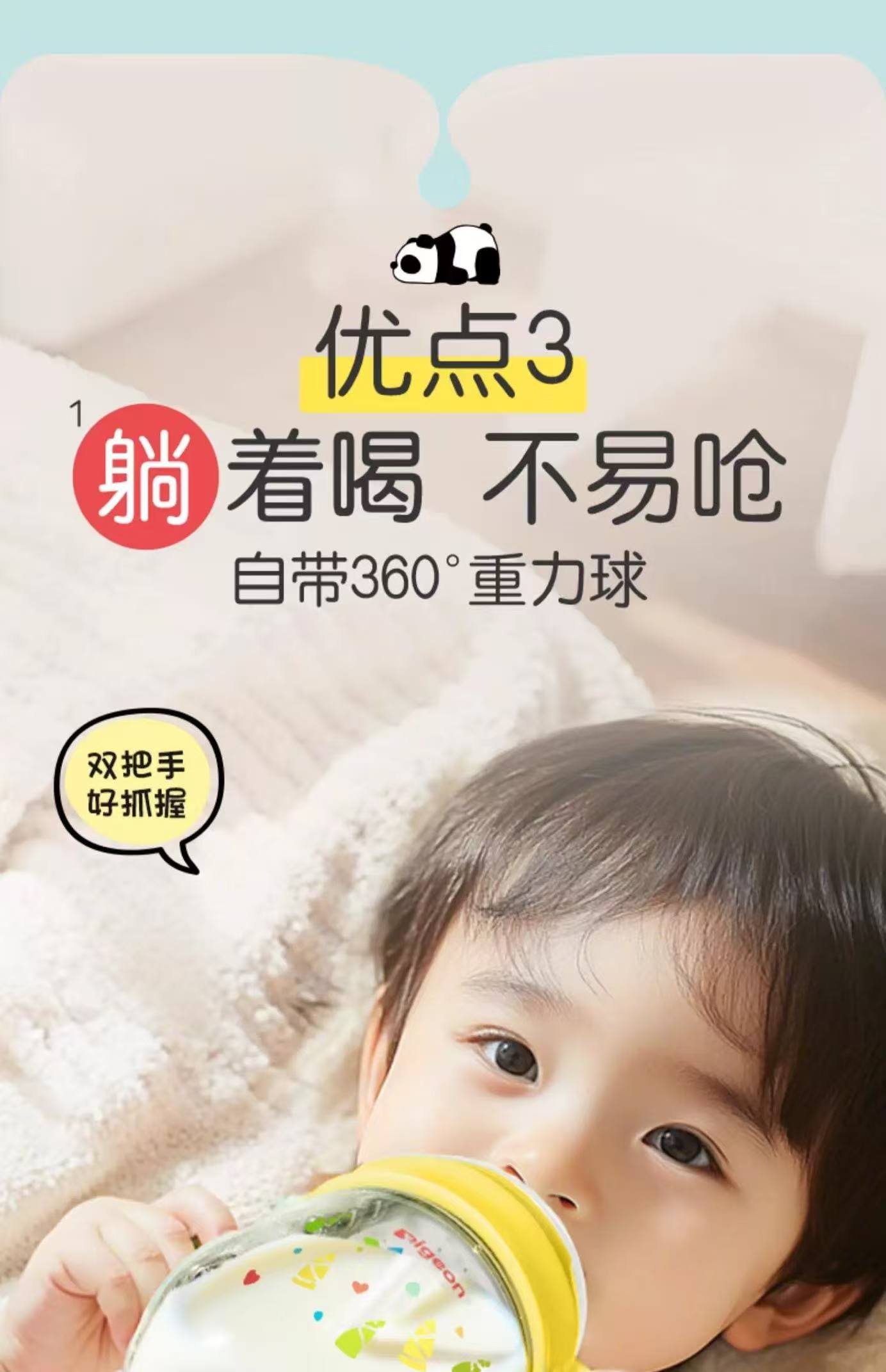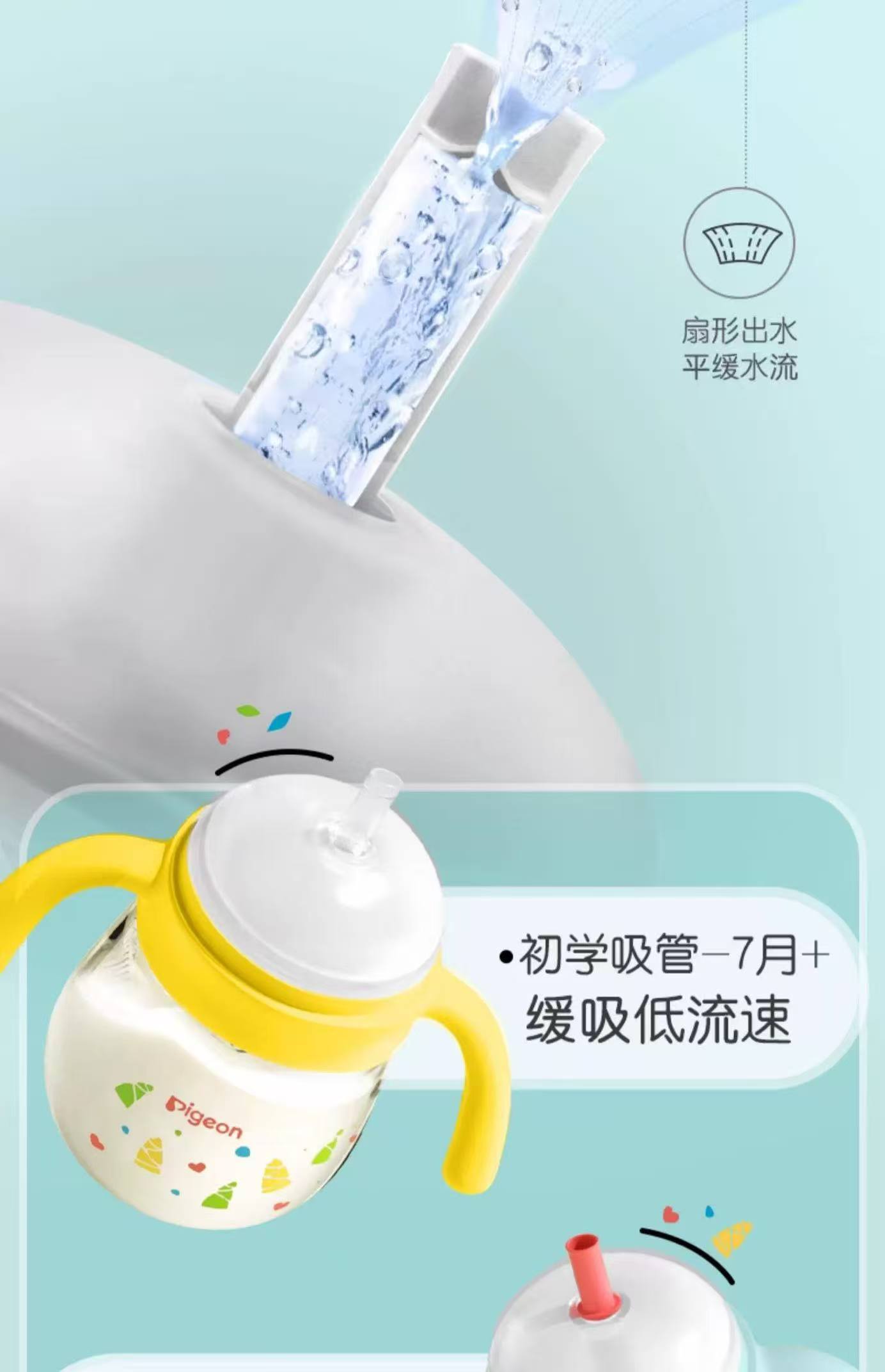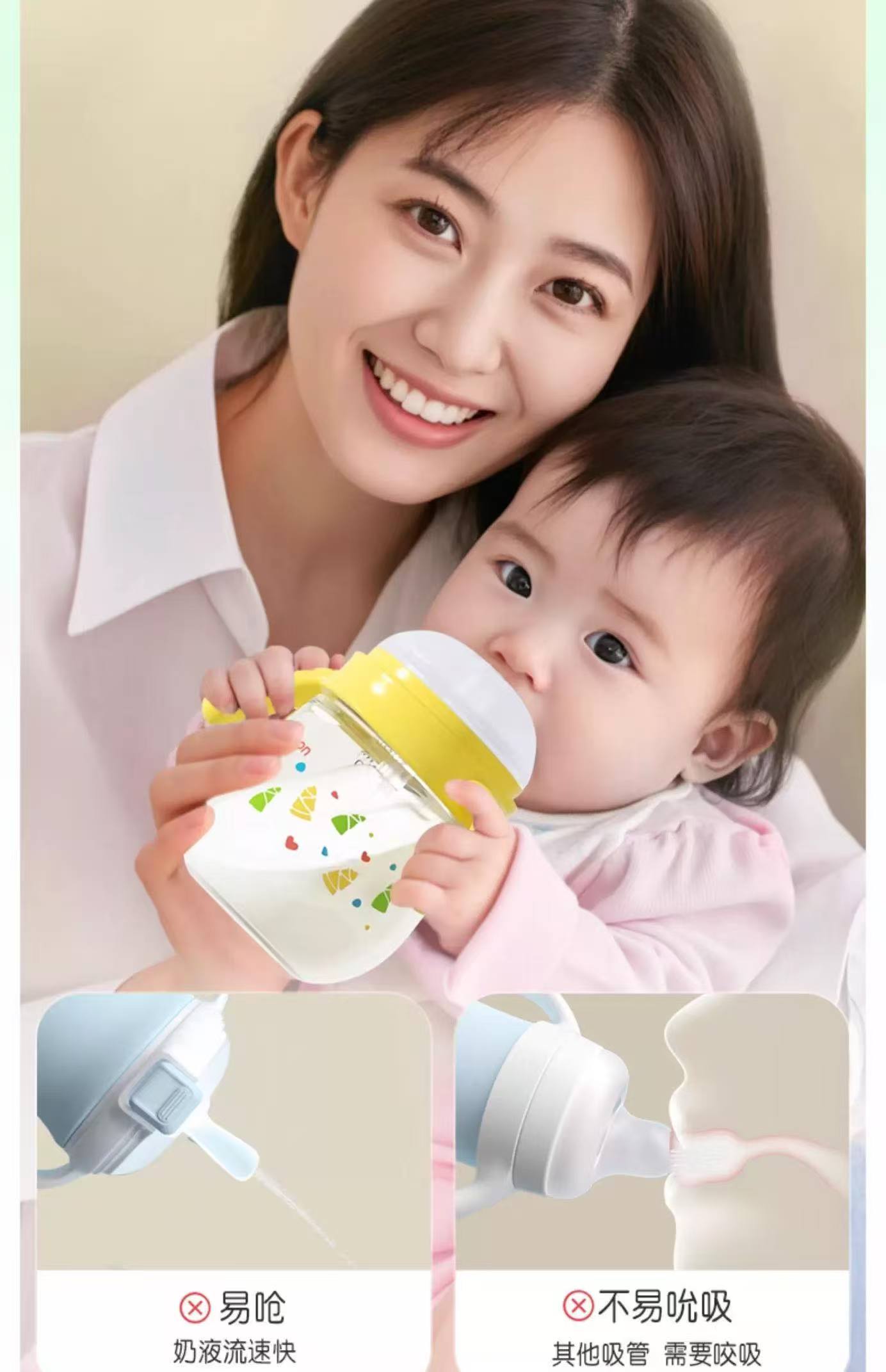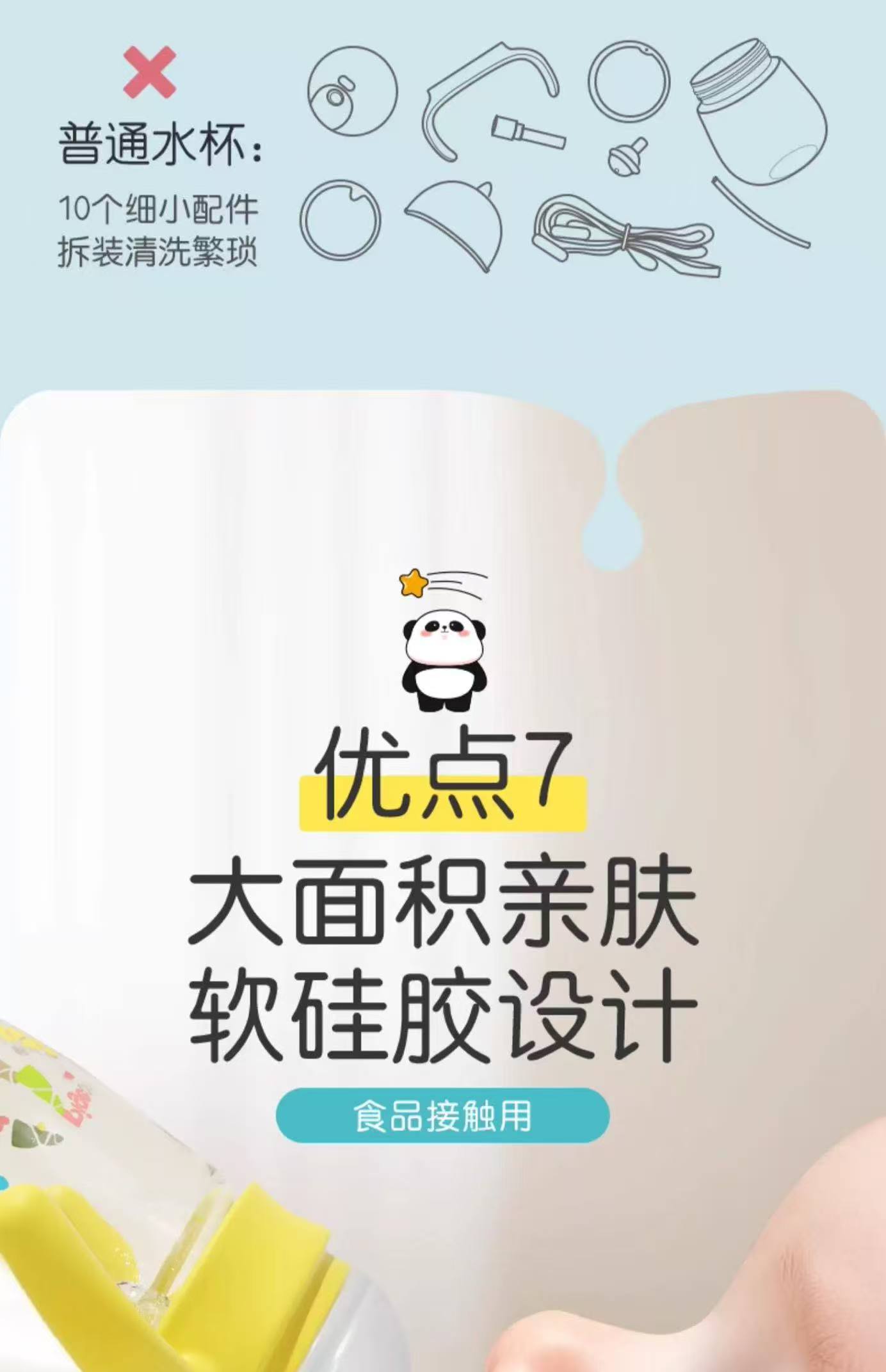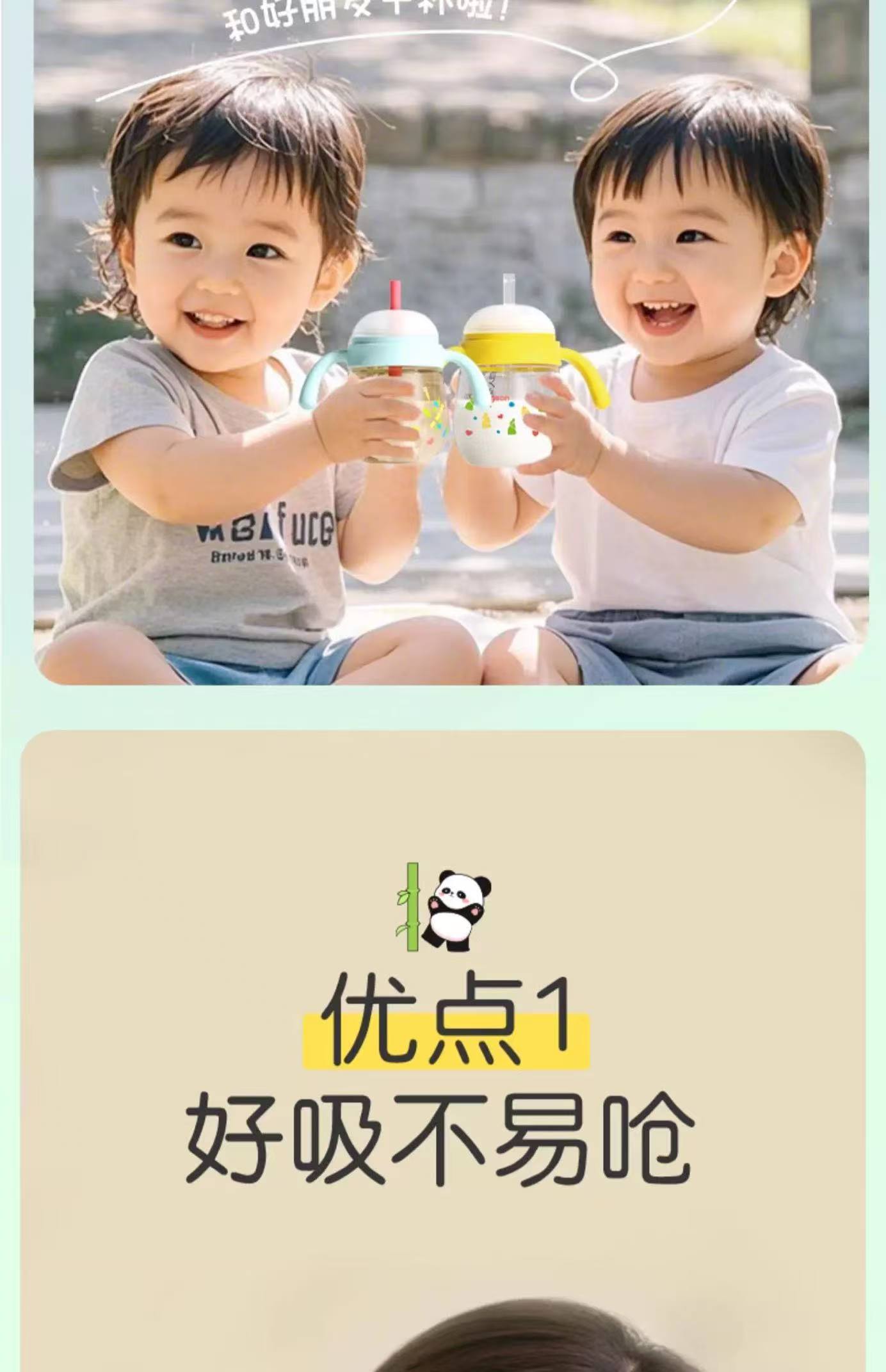 贝亲熊猫吸管水杯黄色蓝色300ml