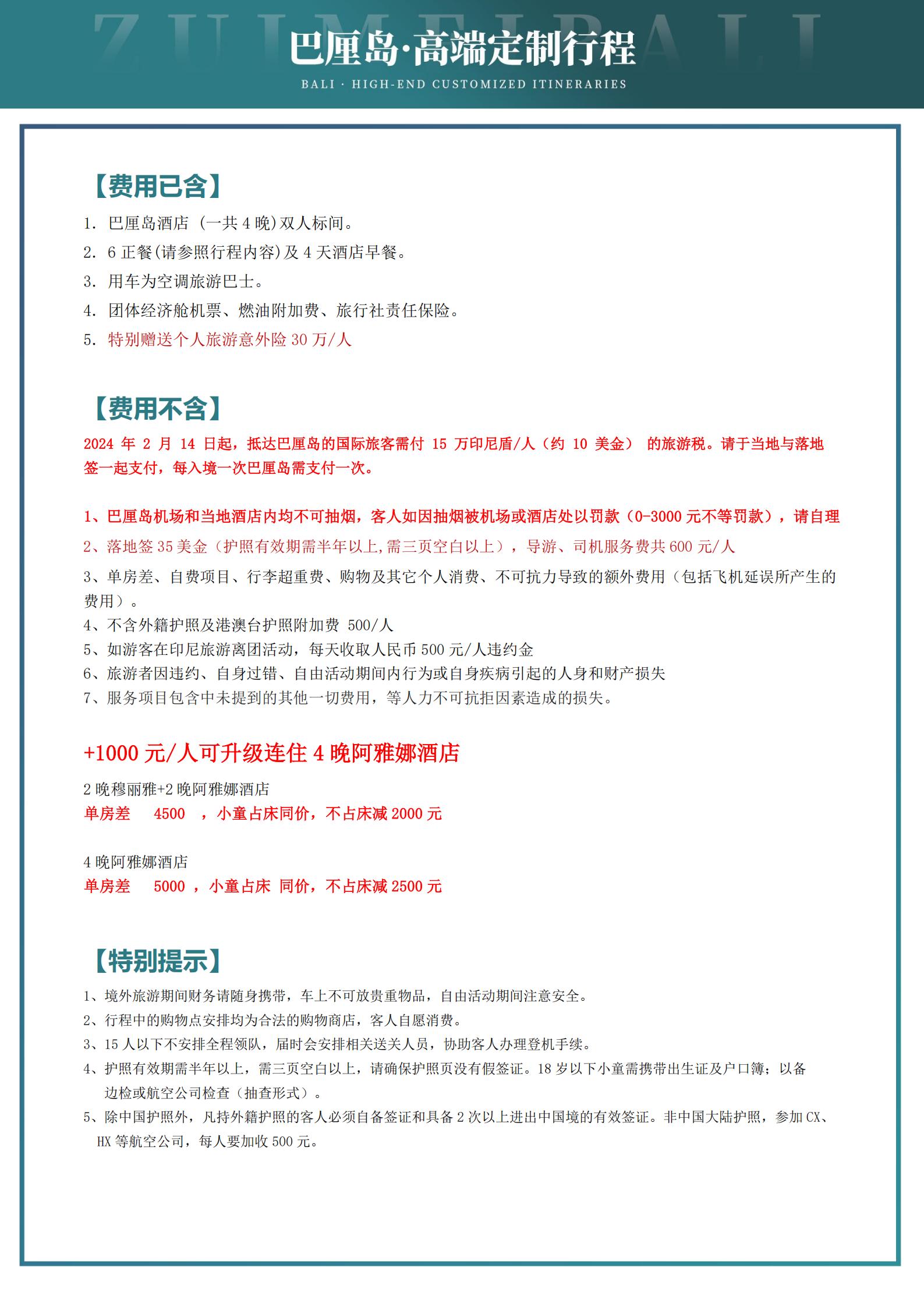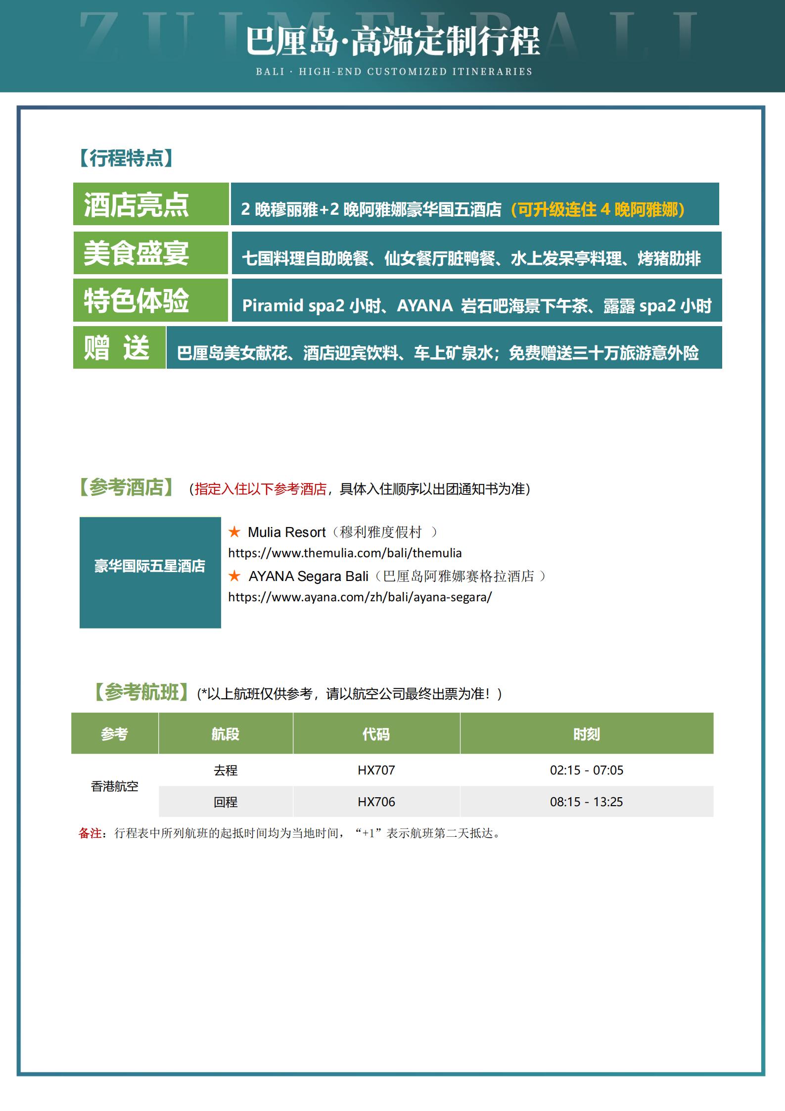 【五一 私家团】<巴厘岛5天高端纯玩-全程国际五星酒店>穆丽雅海景下午茶、海滩俱乐部畅玩+无边泳池派对+激情狂欢摇滚音乐晚会+晚餐、SPA、特色行程三选一