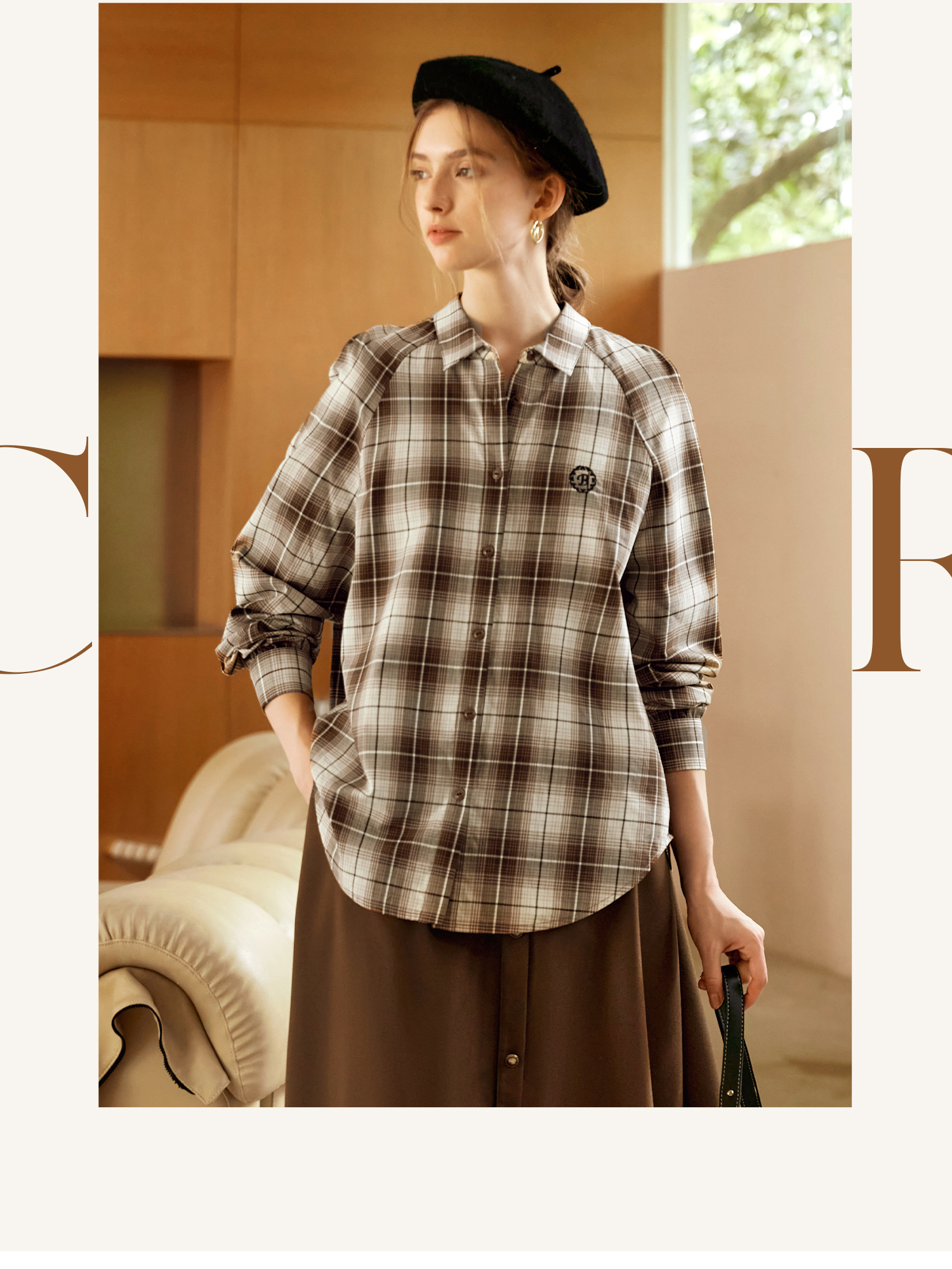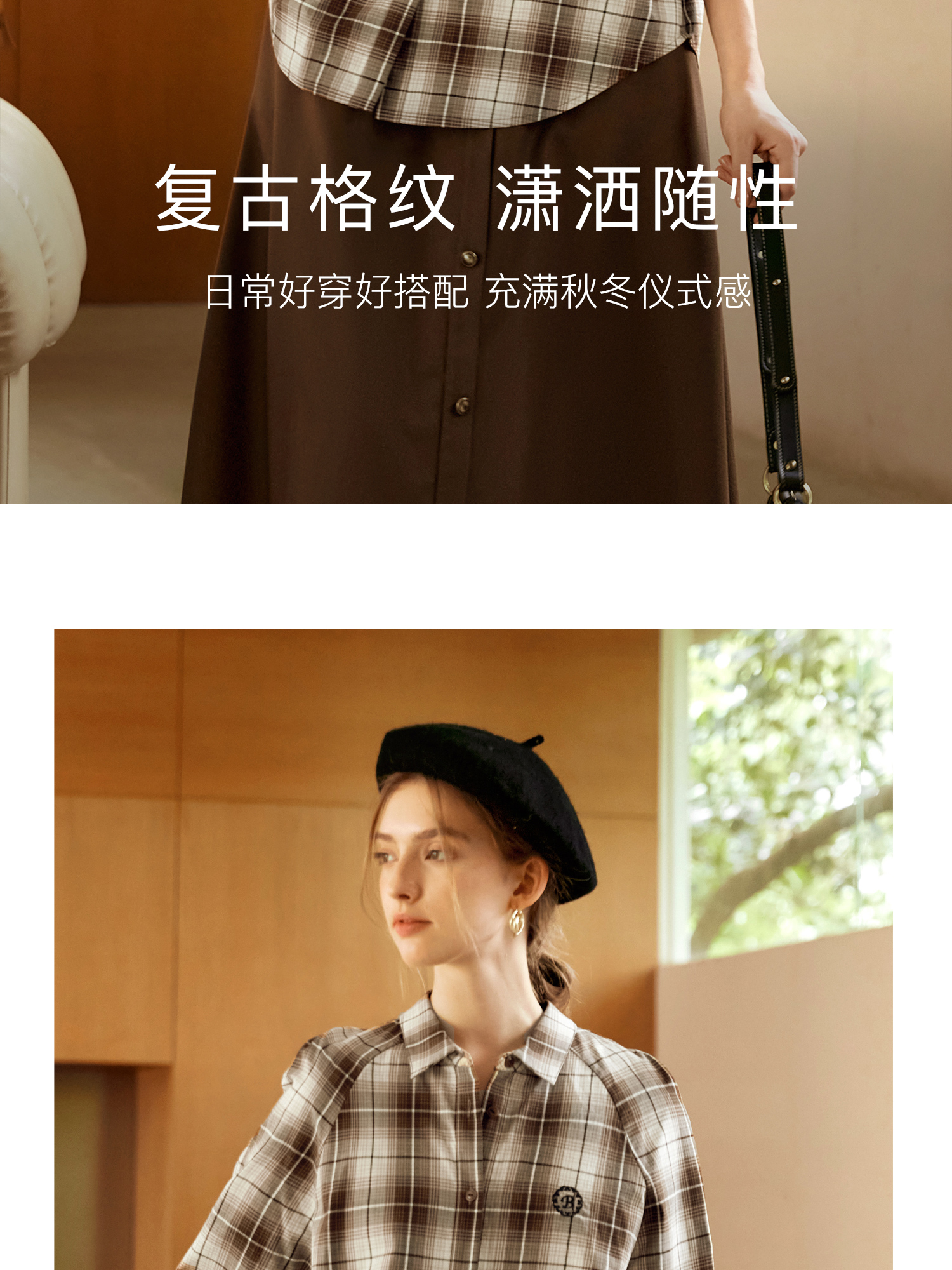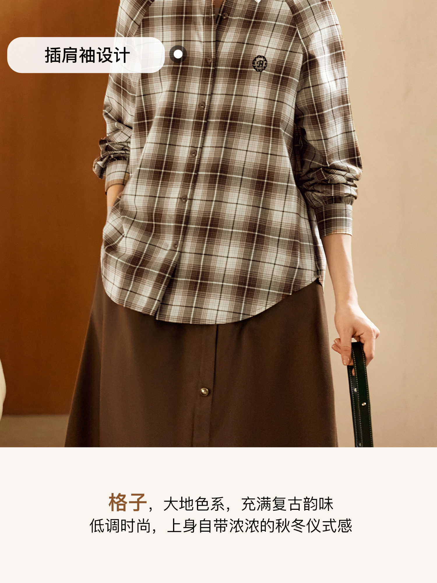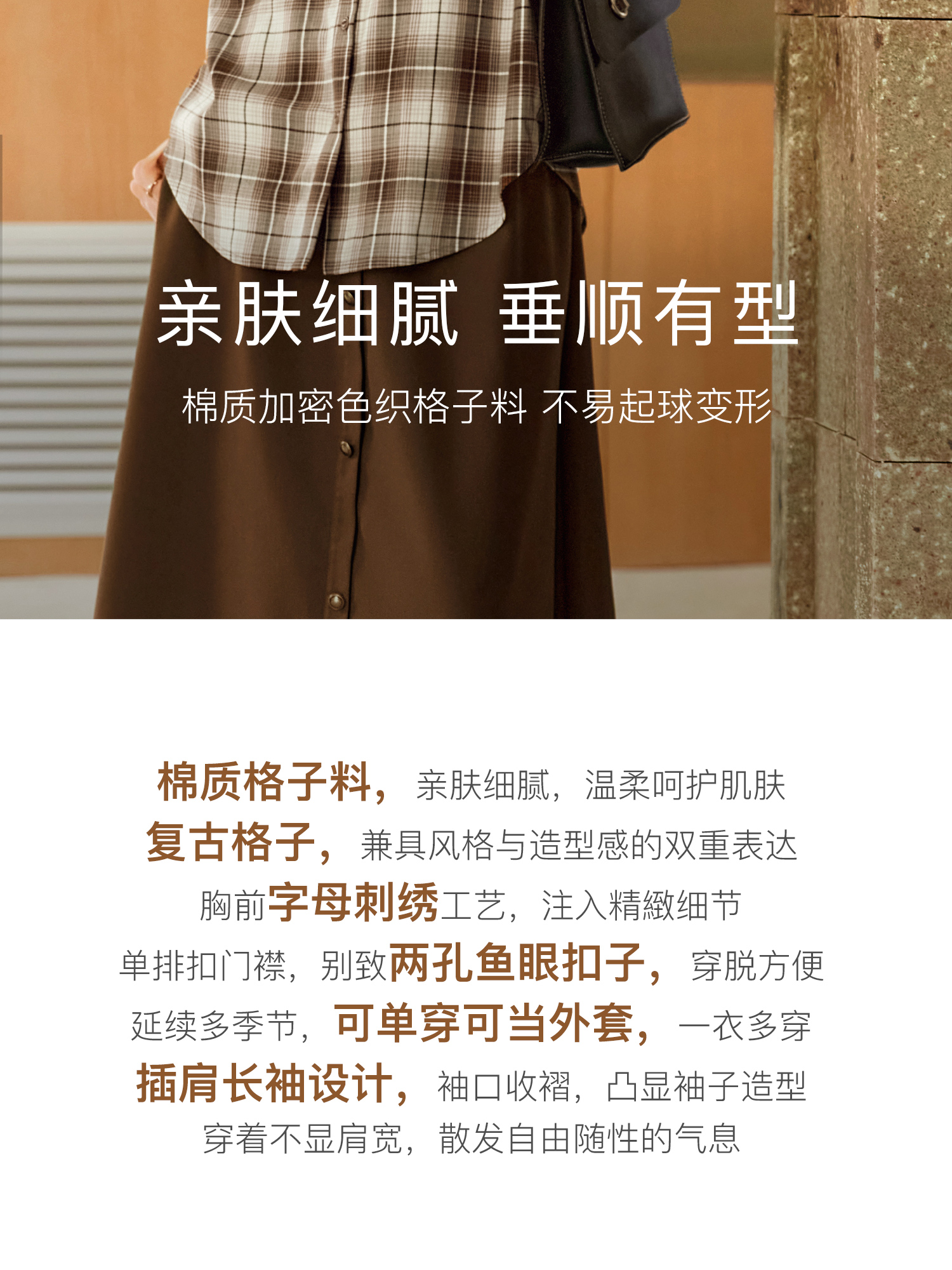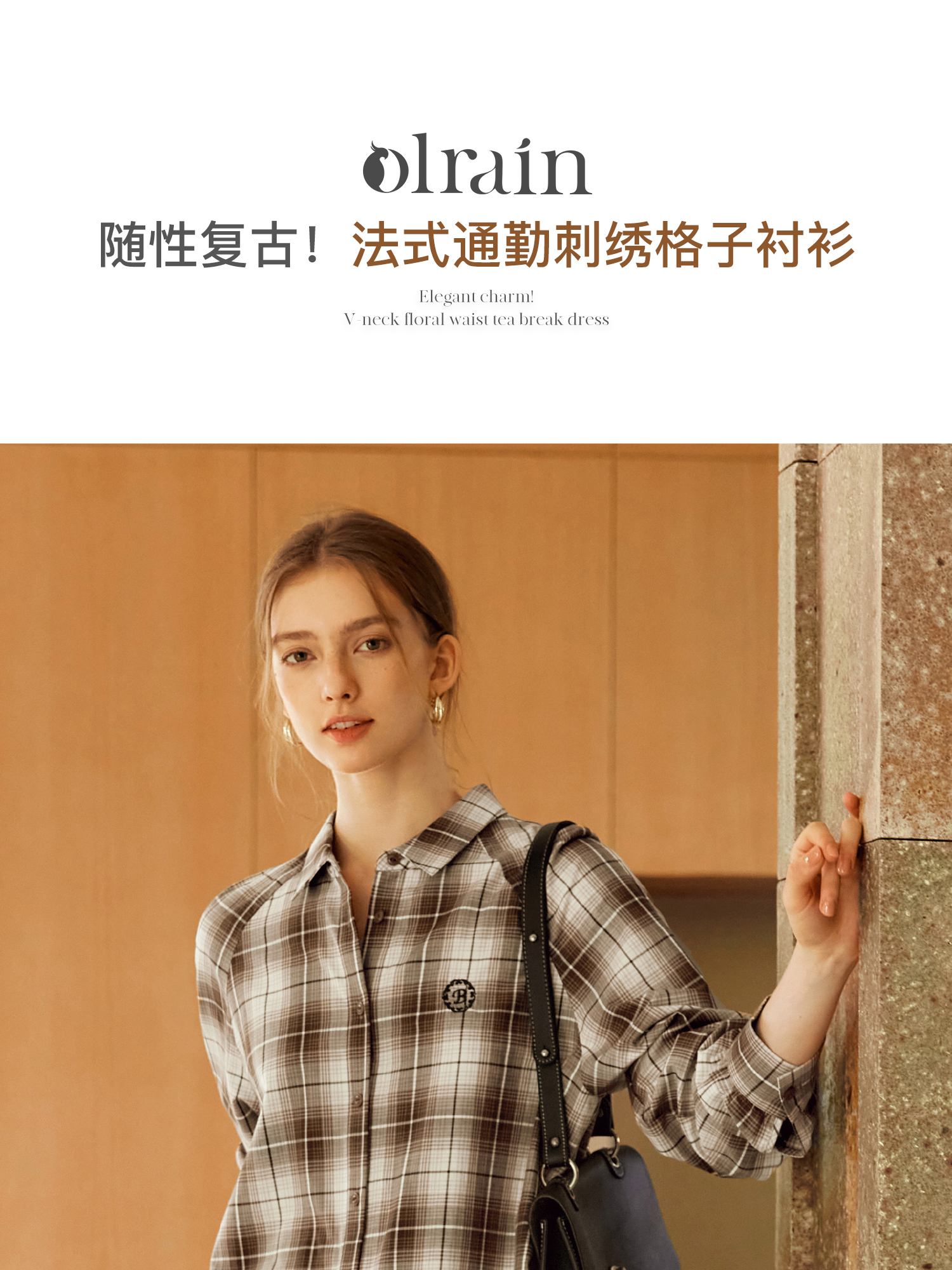 OLrain欧芮儿法式格子长袖衬衫女早秋2024年新款通勤字刺绣上衣