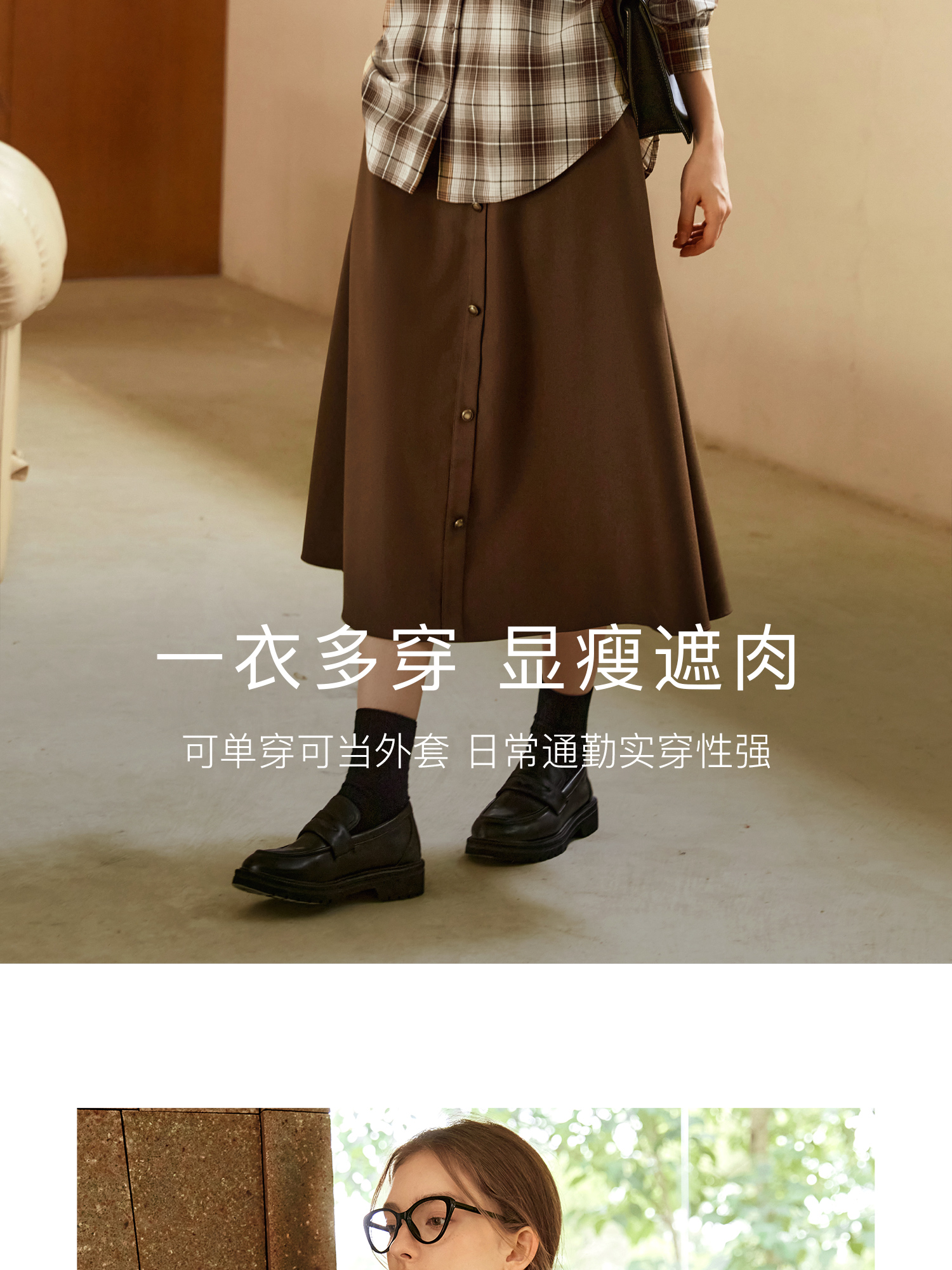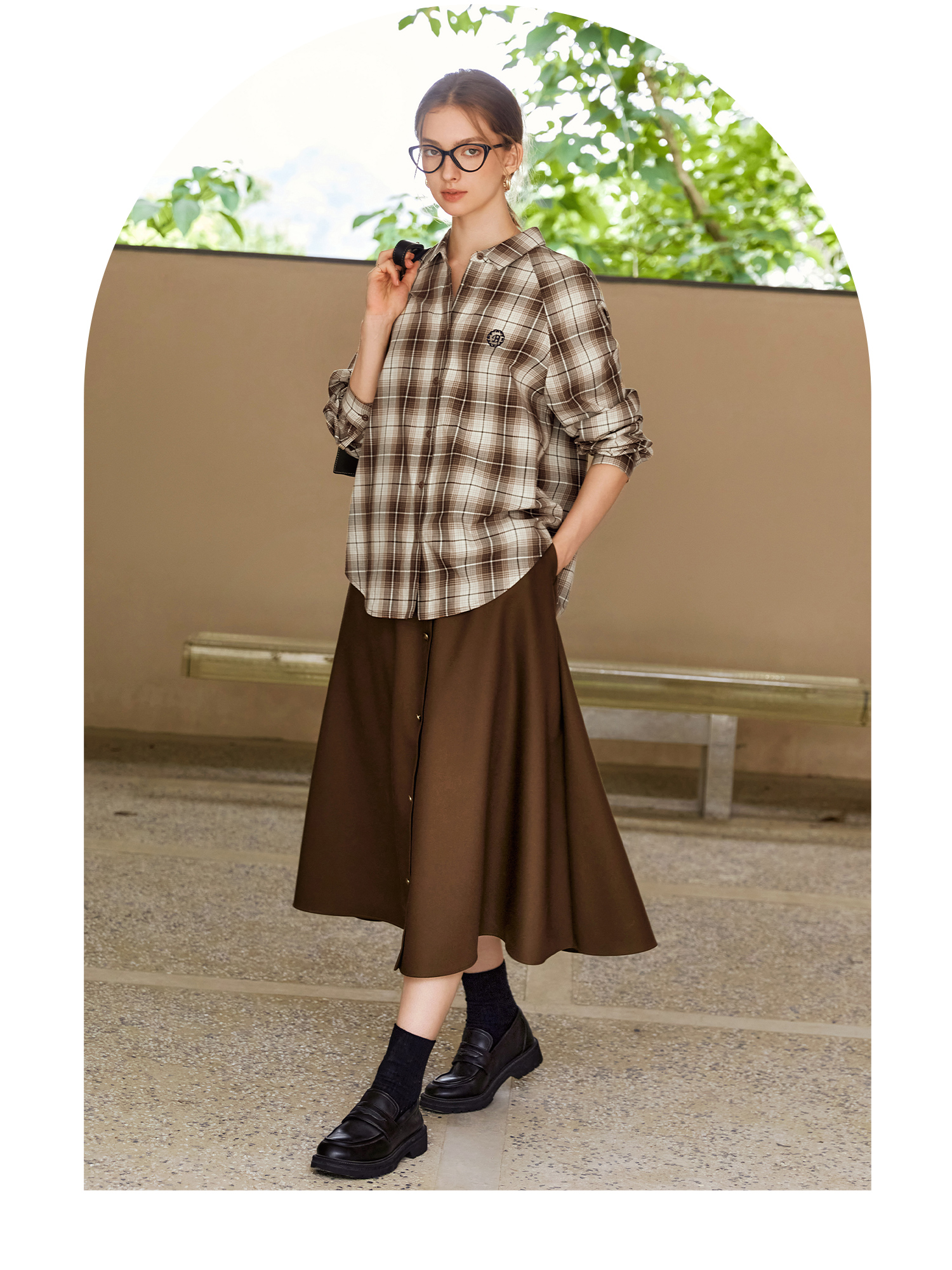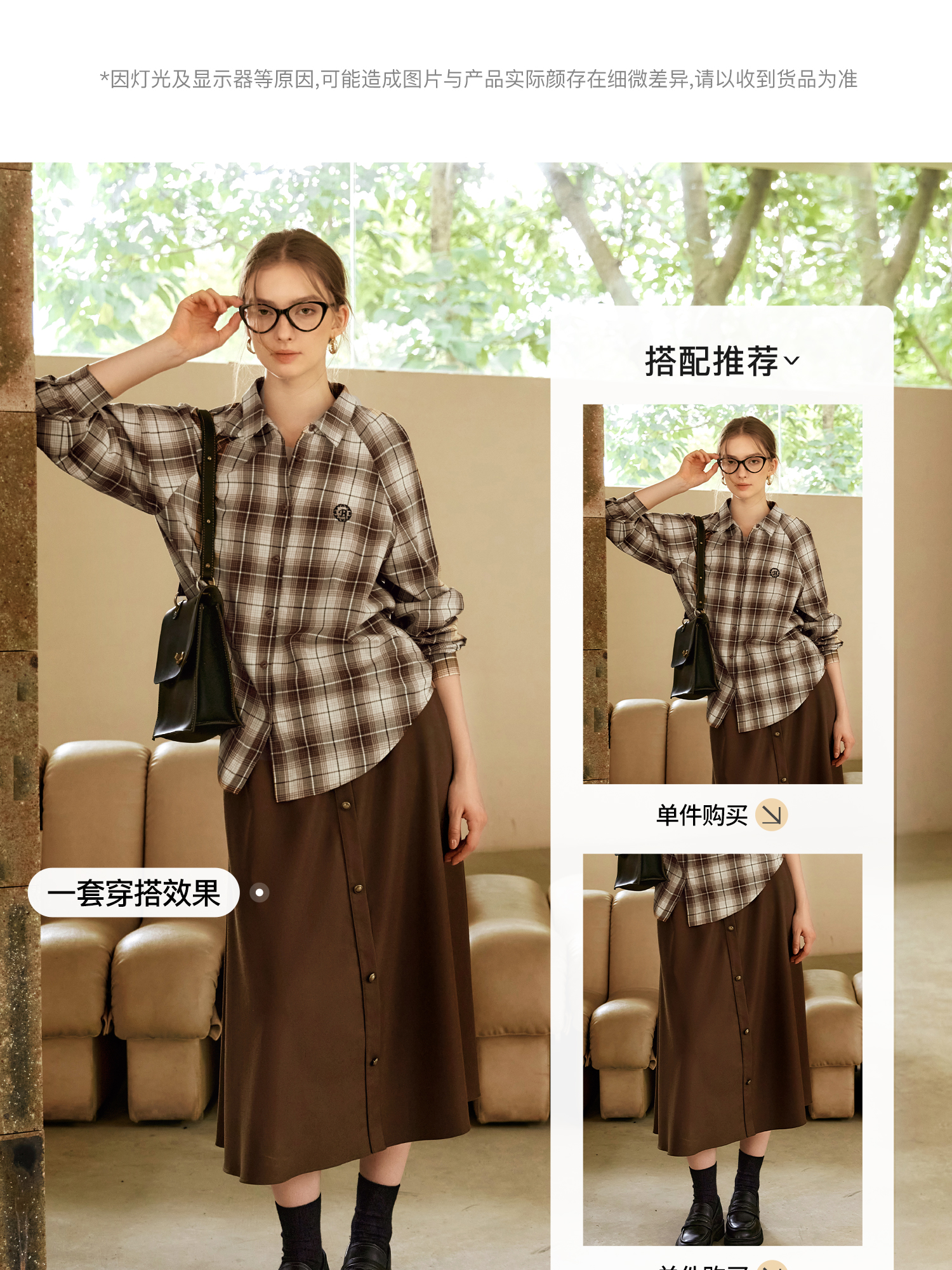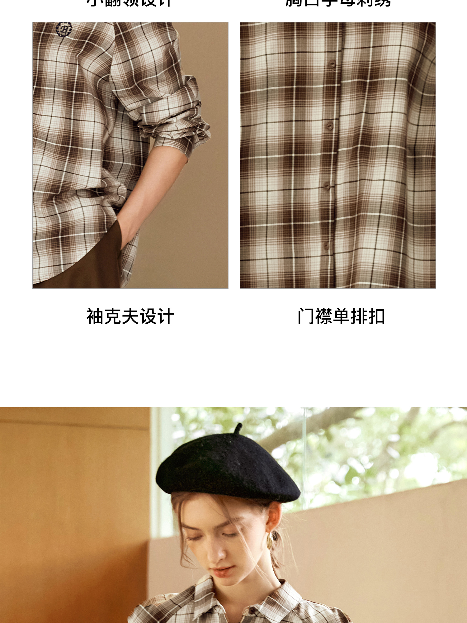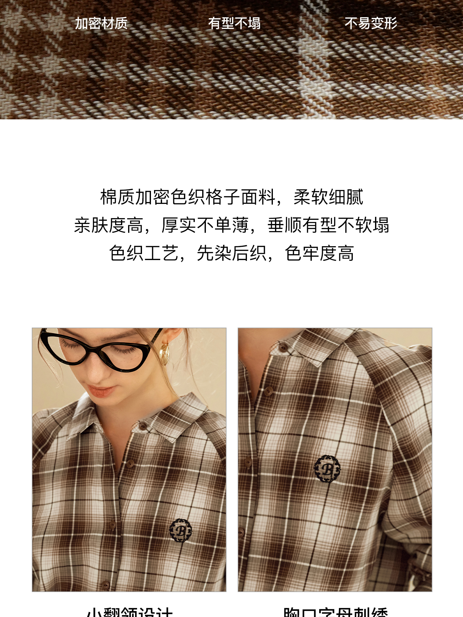 OLrain欧芮儿法式格子长袖衬衫女早秋2024年新款通勤字刺绣上衣