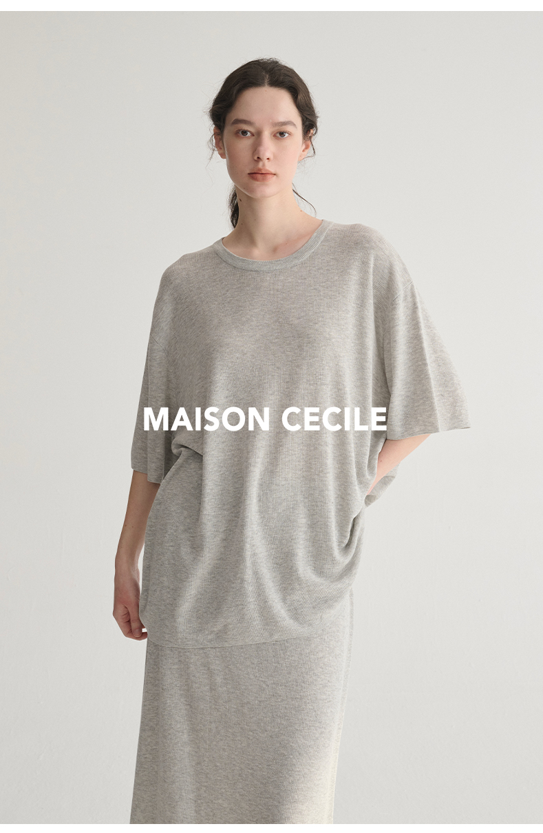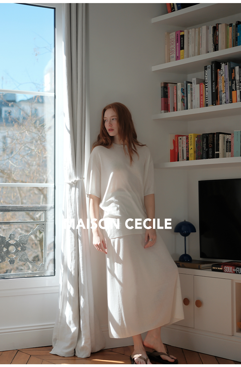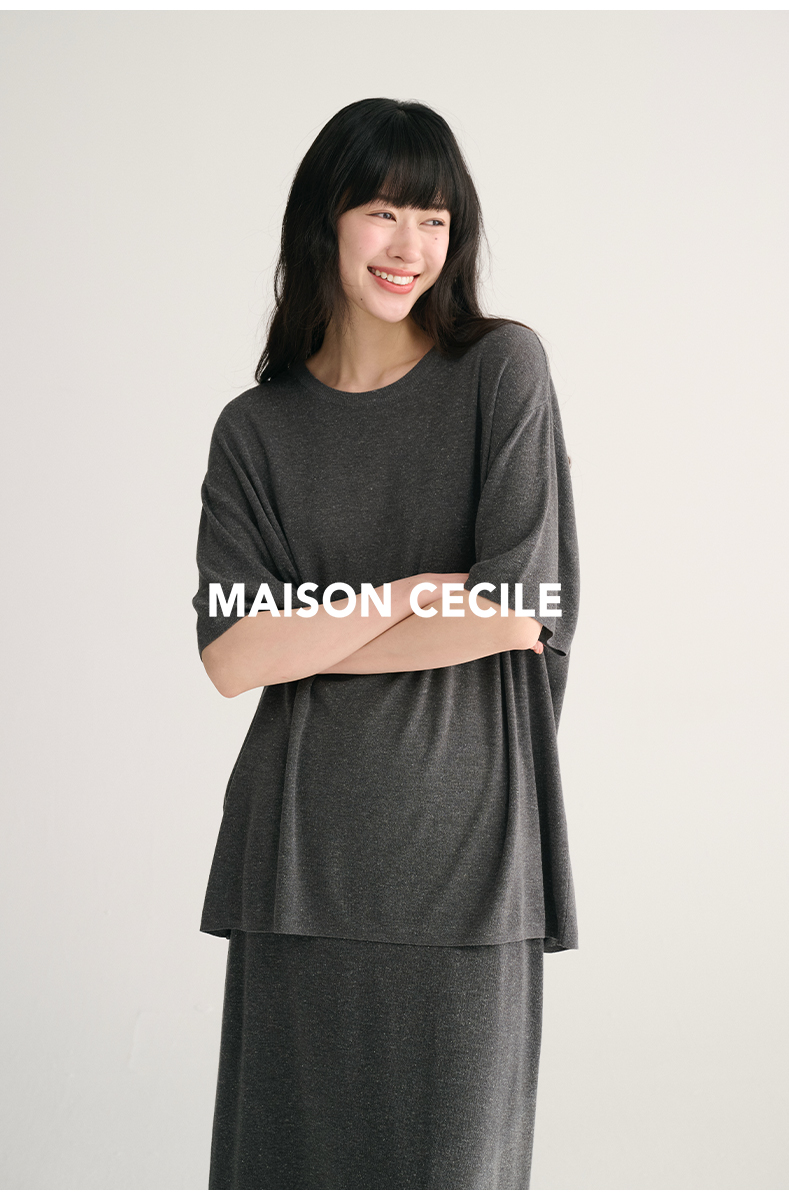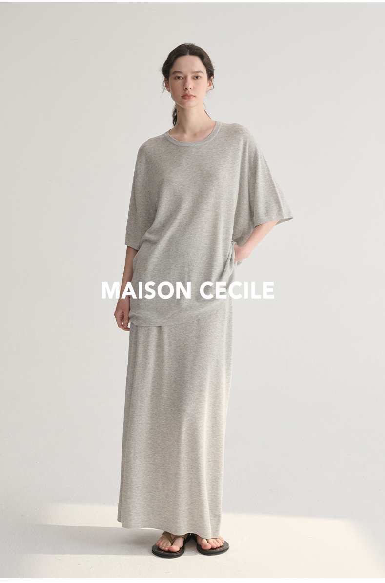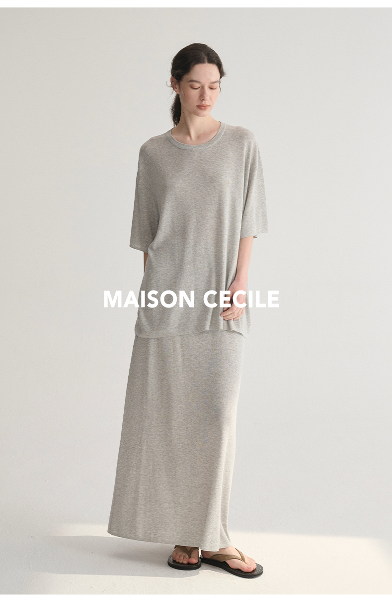 MAISON CECILE 三色夏日轻透软糯莱赛尔亚麻混纺针织短袖T恤/半裙(新增花灰色)