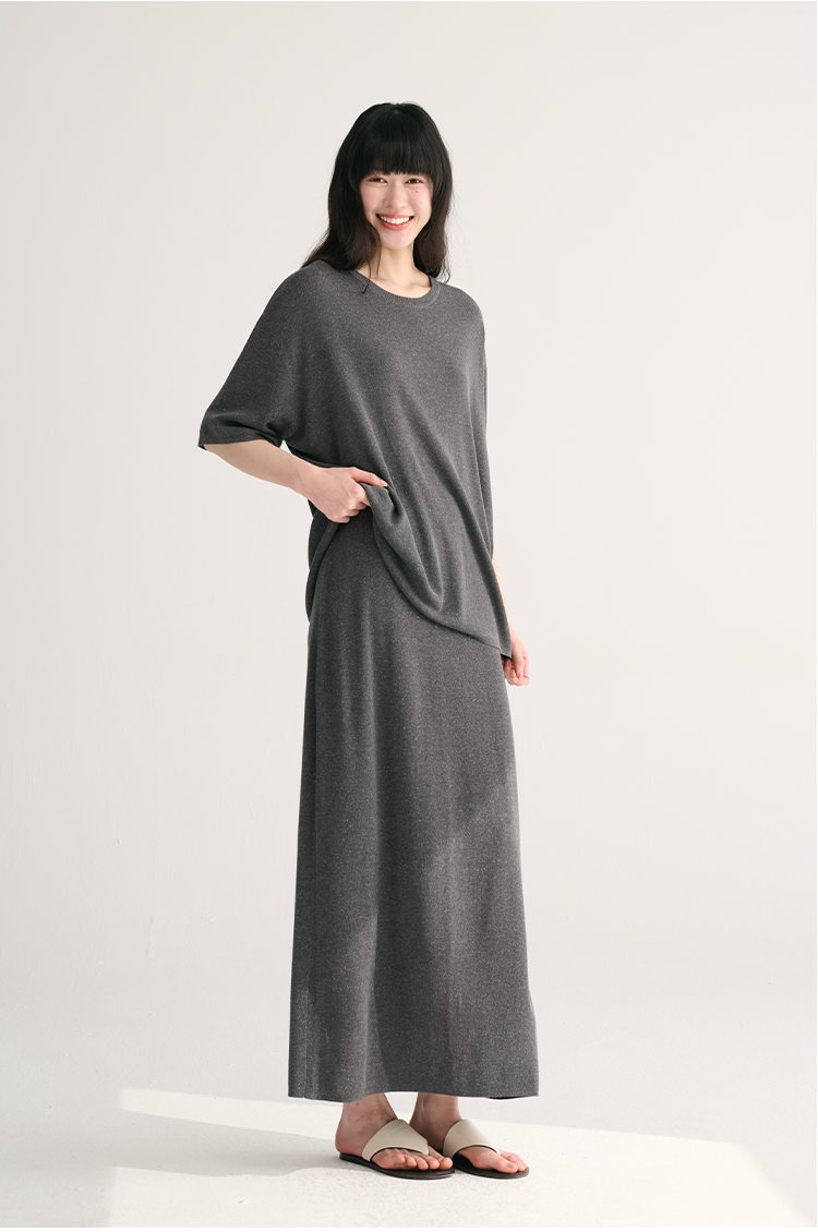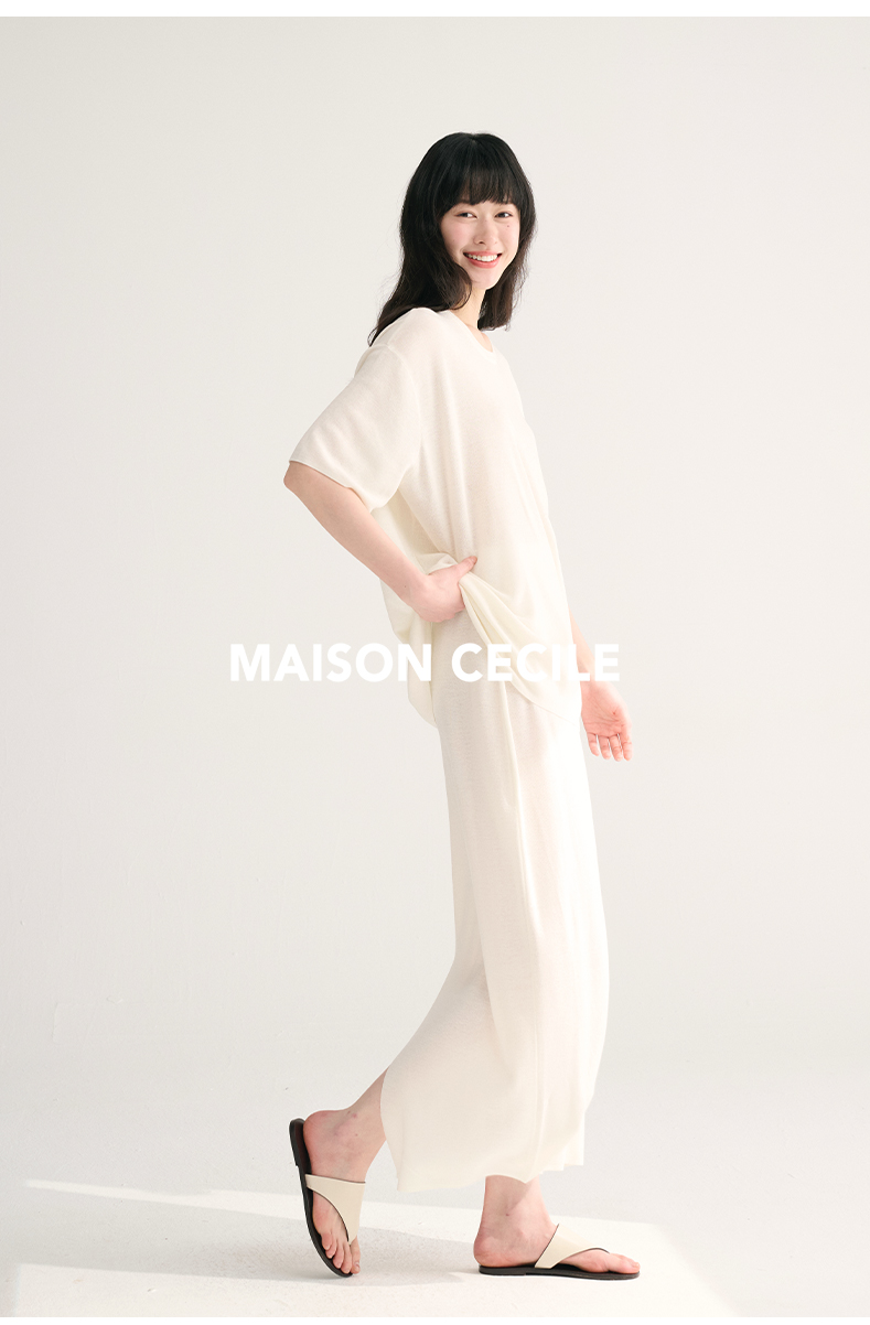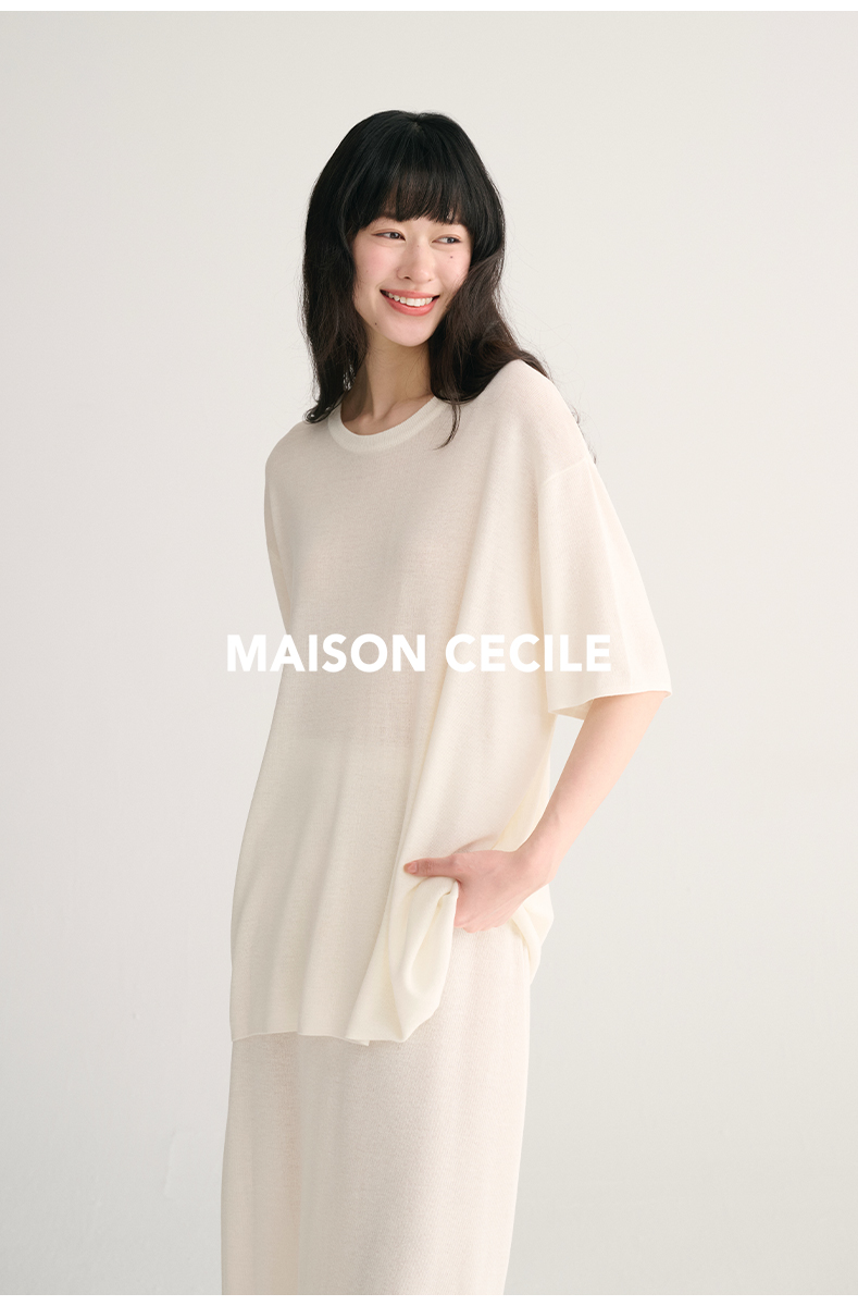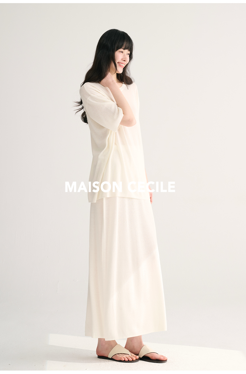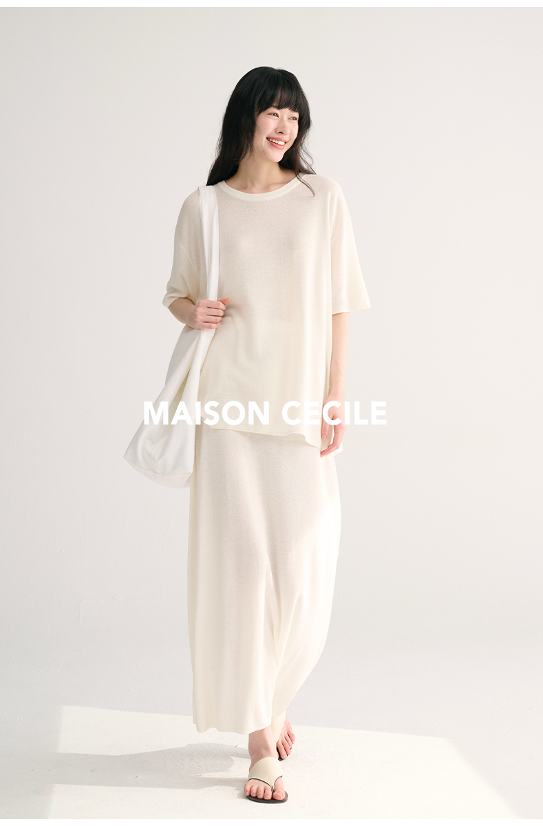 MAISON CECILE 三色夏日轻透软糯莱赛尔亚麻混纺针织短袖T恤/半裙(新增花灰色)