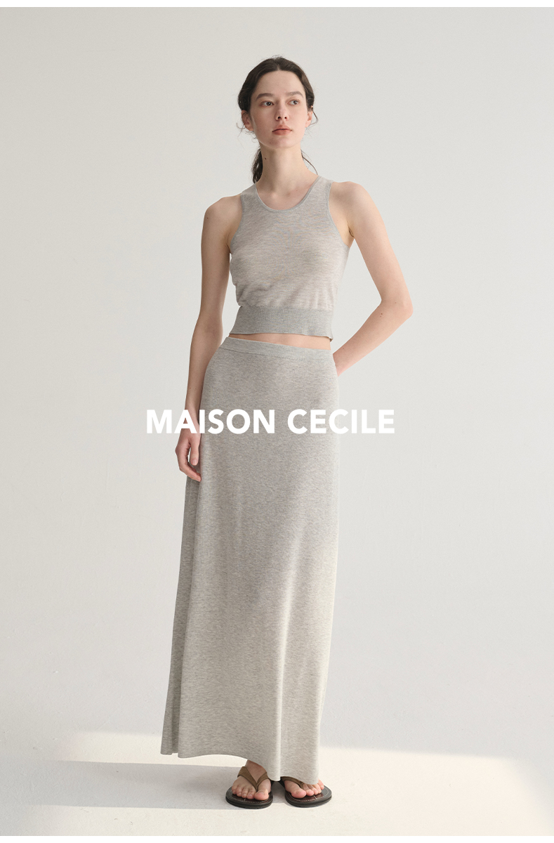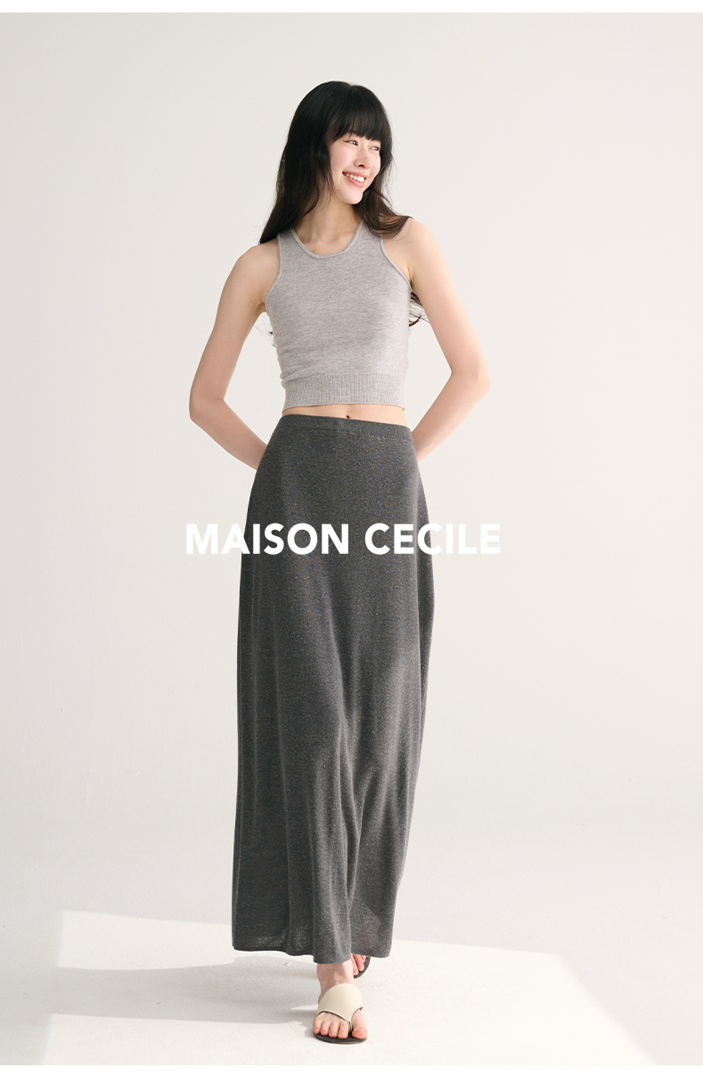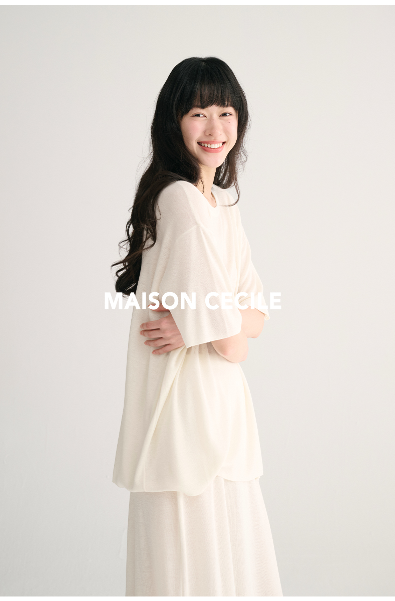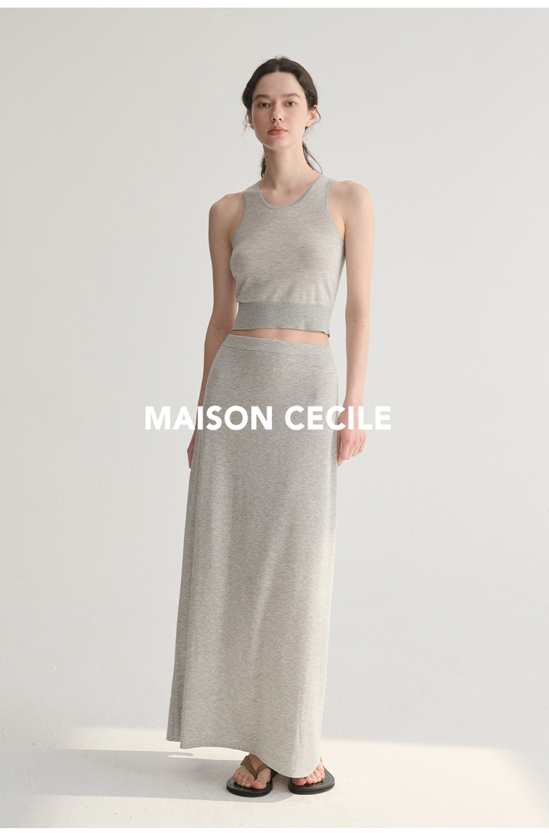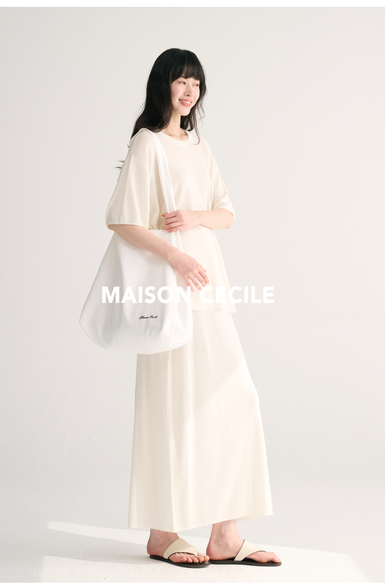 MAISON CECILE 三色夏日轻透软糯莱赛尔亚麻混纺针织短袖T恤/半裙(新增花灰色)