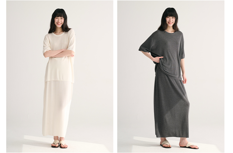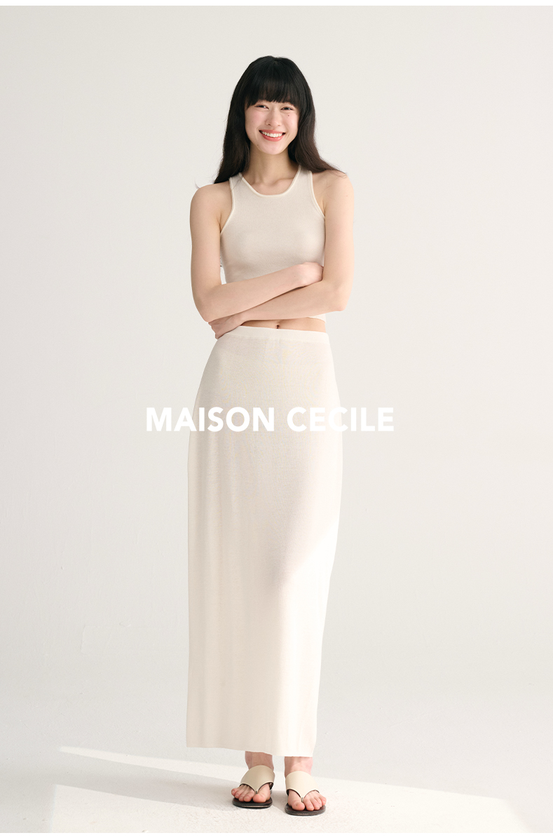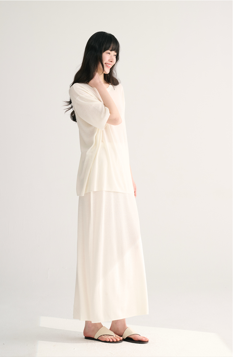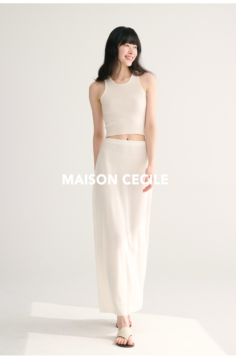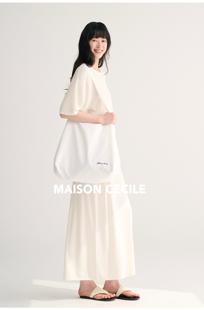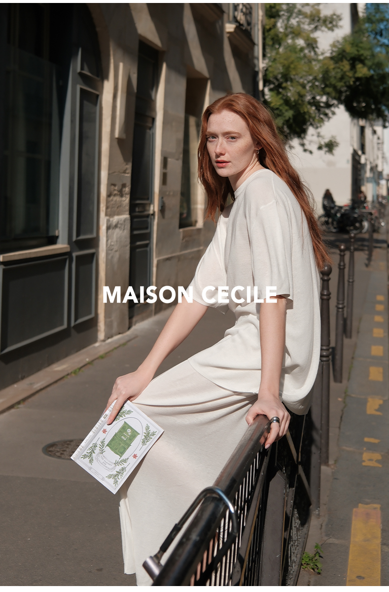 MAISON CECILE 三色夏日轻透软糯莱赛尔亚麻混纺针织短袖T恤/半裙(新增花灰色)