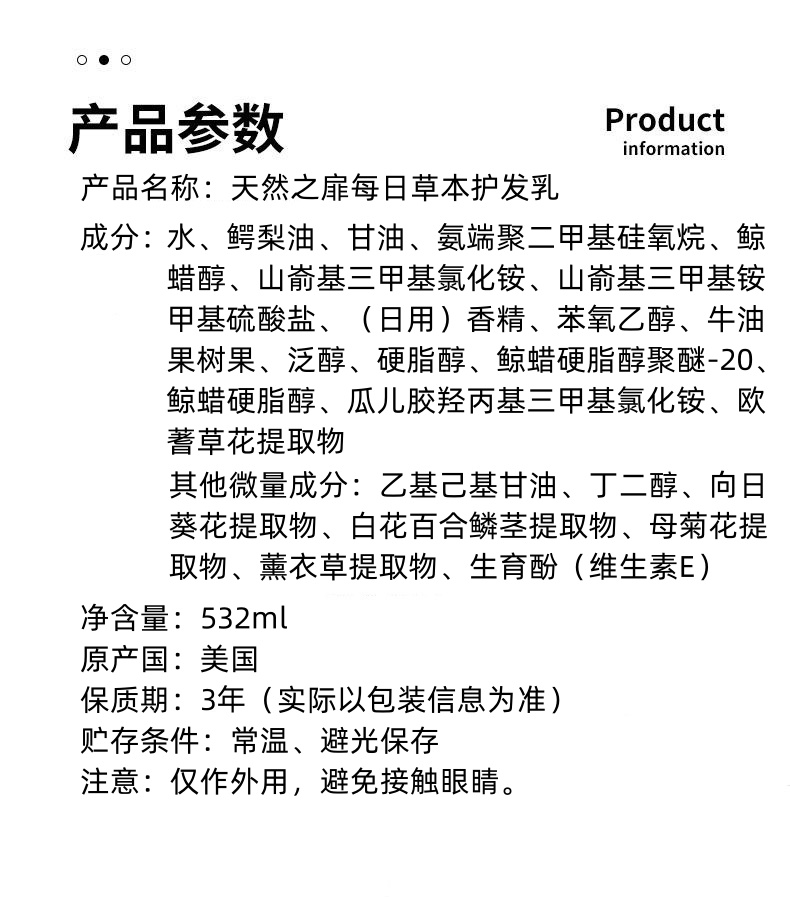 美国进口天然之扉每日草本护发乳532ml(满一件赠同品牌每日草本护发乳50ml))