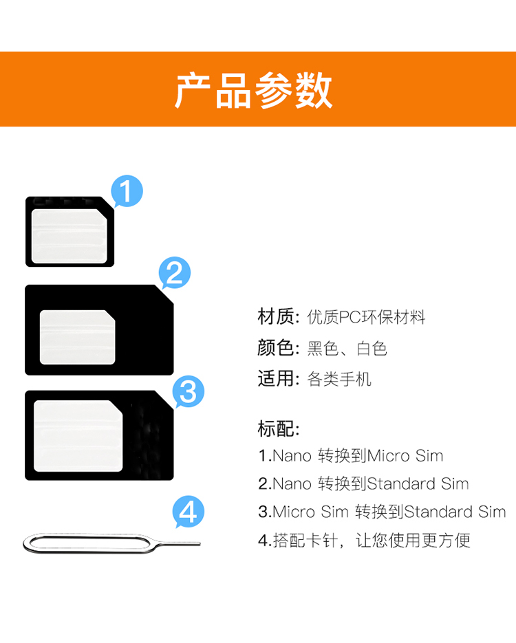 技光(JEARLAKON)卡槽卡针四件套 手机卡托还原sim卡套Micro/Nano转化卡槽取卡针苹果华为小米通用黑色