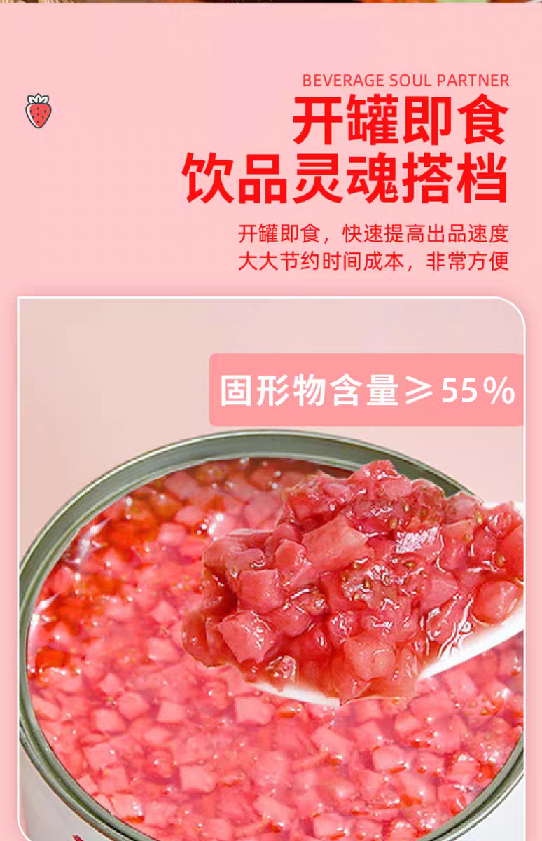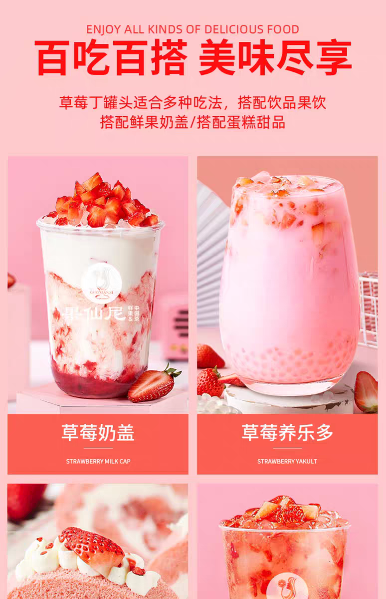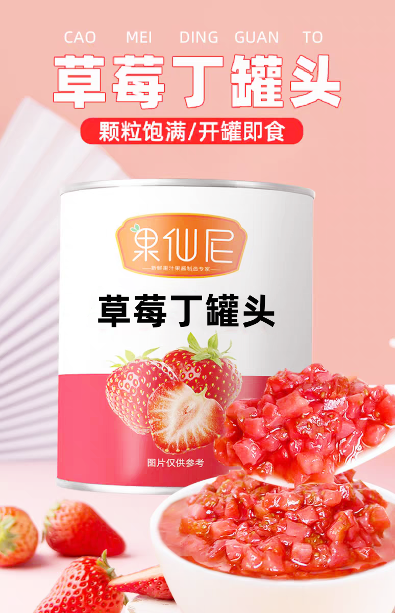 820g 果仙尼 草莓丁罐头 奶茶饮品果茶水果捞冰沙蛋糕甜品草莓果肉罐头