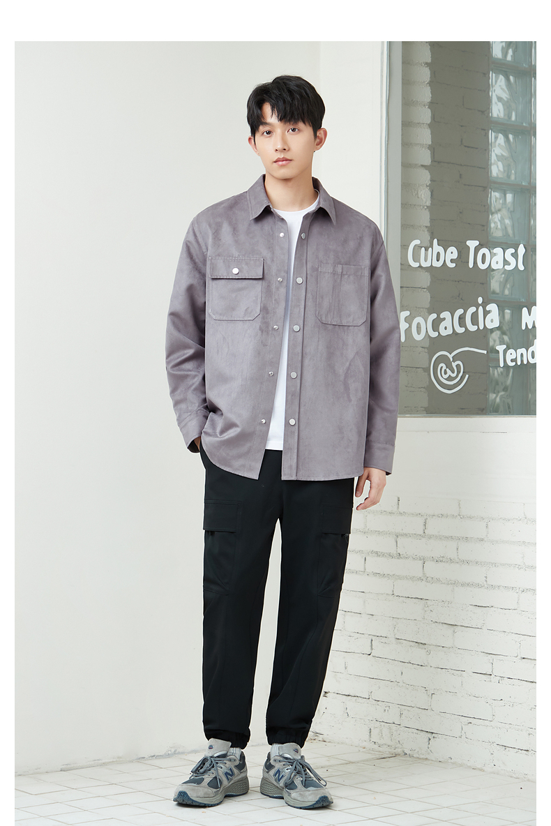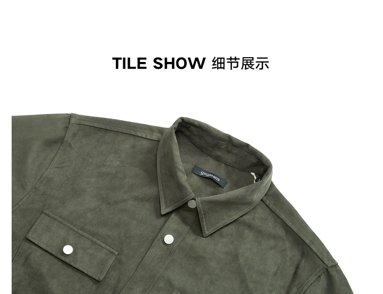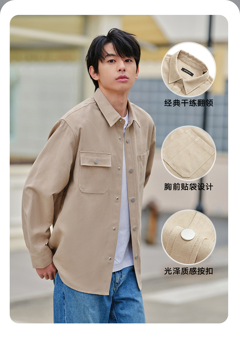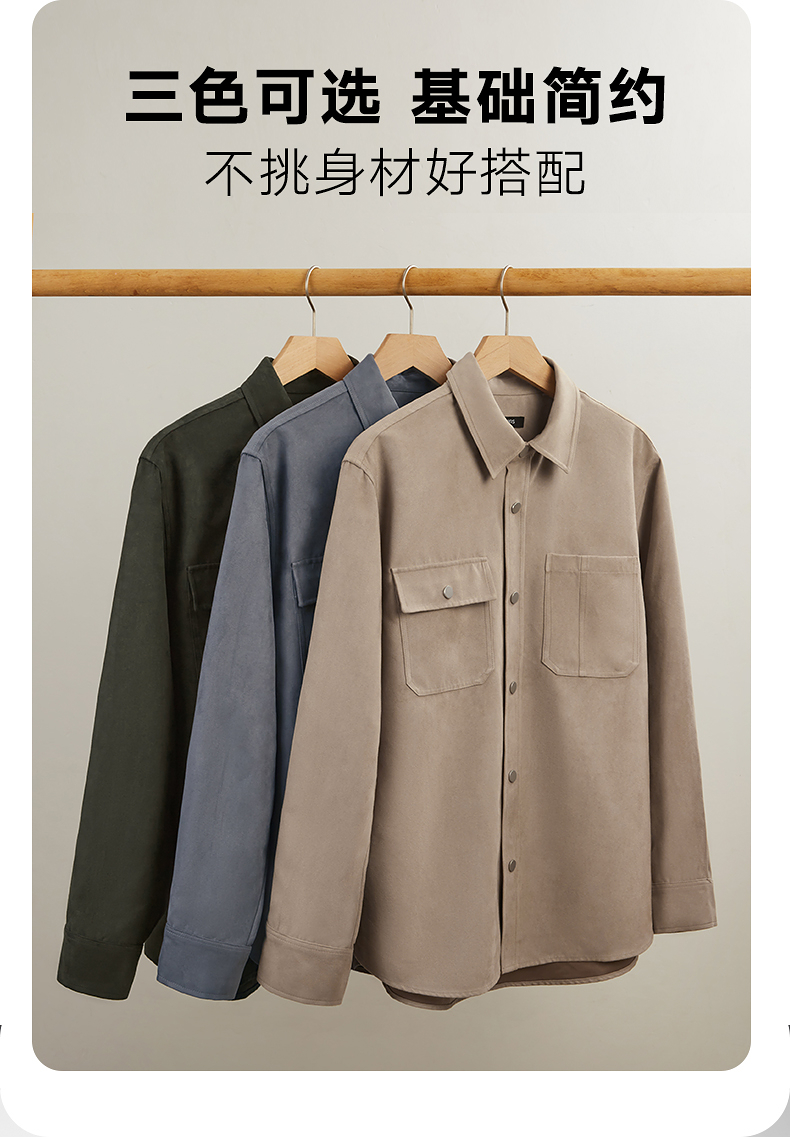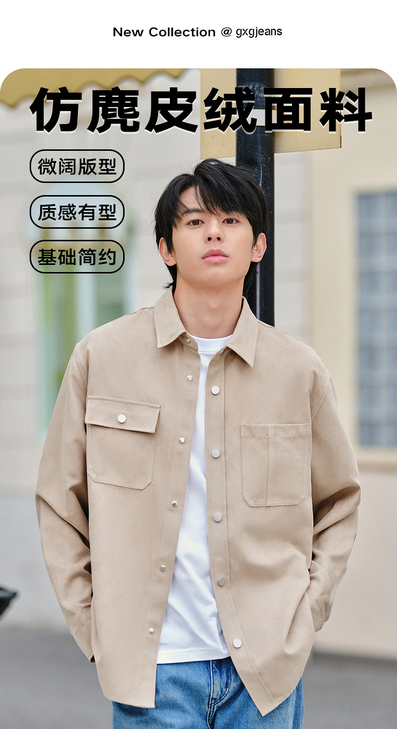 gxgjeans男装秋季衬衣外套仿麂皮绒翻领休闲长袖衬衫潮*