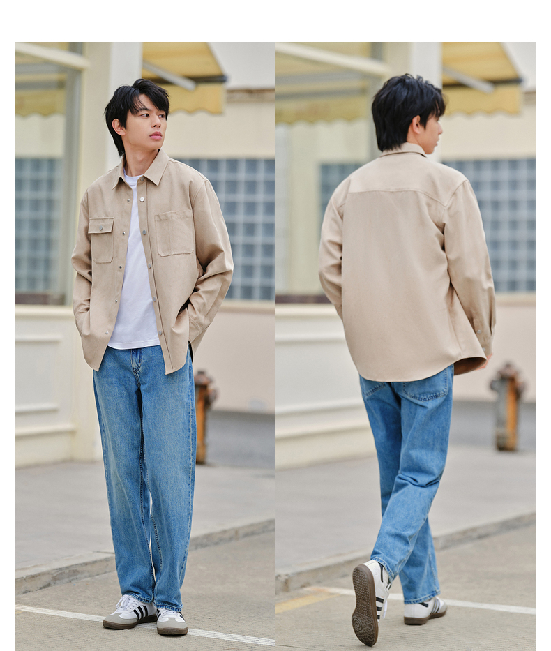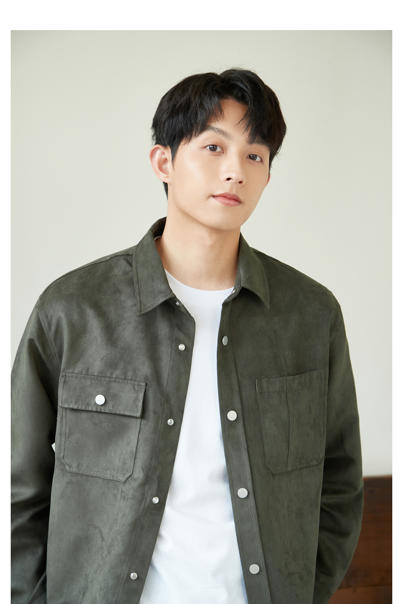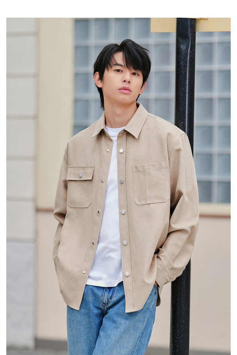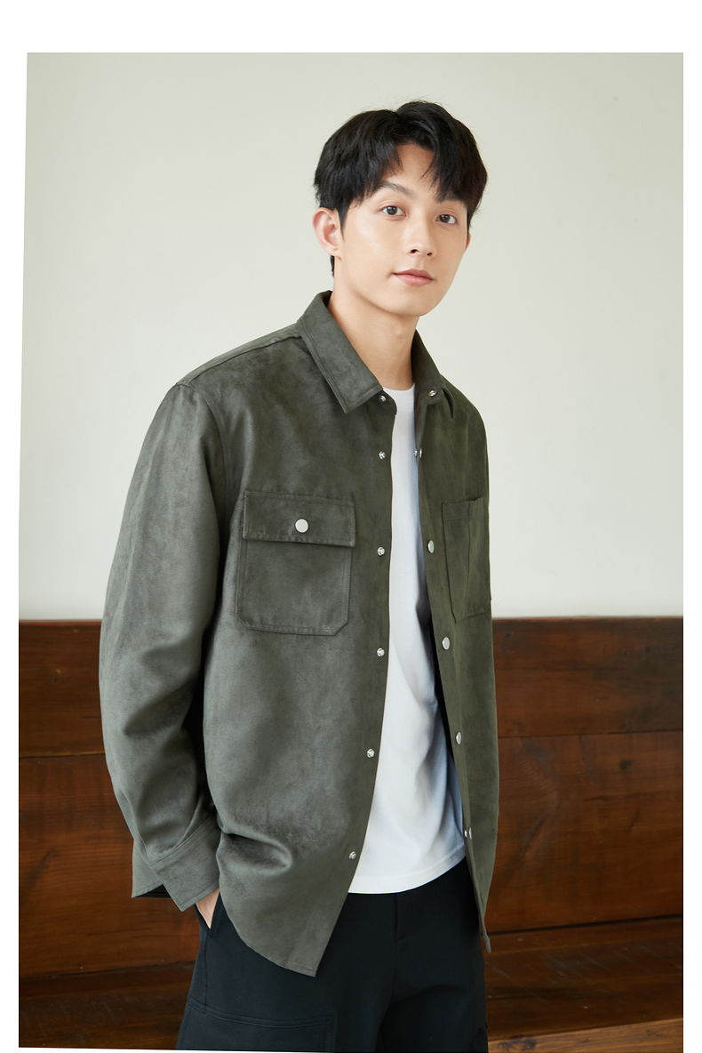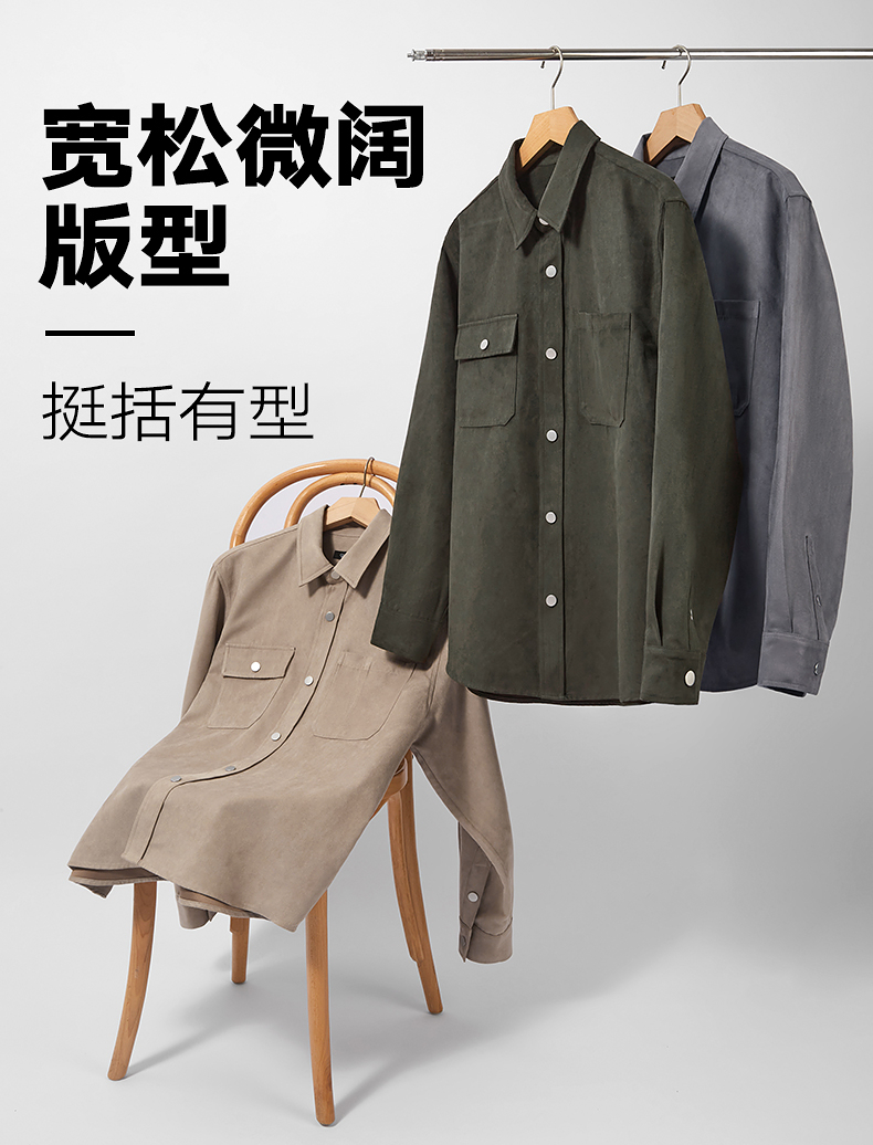 gxgjeans男装秋季衬衣外套仿麂皮绒翻领休闲长袖衬衫潮*