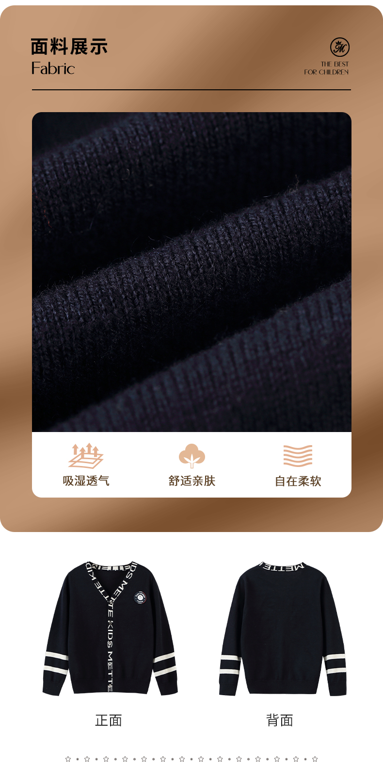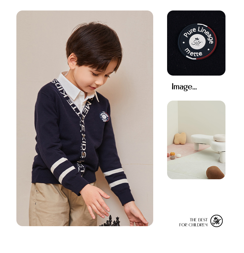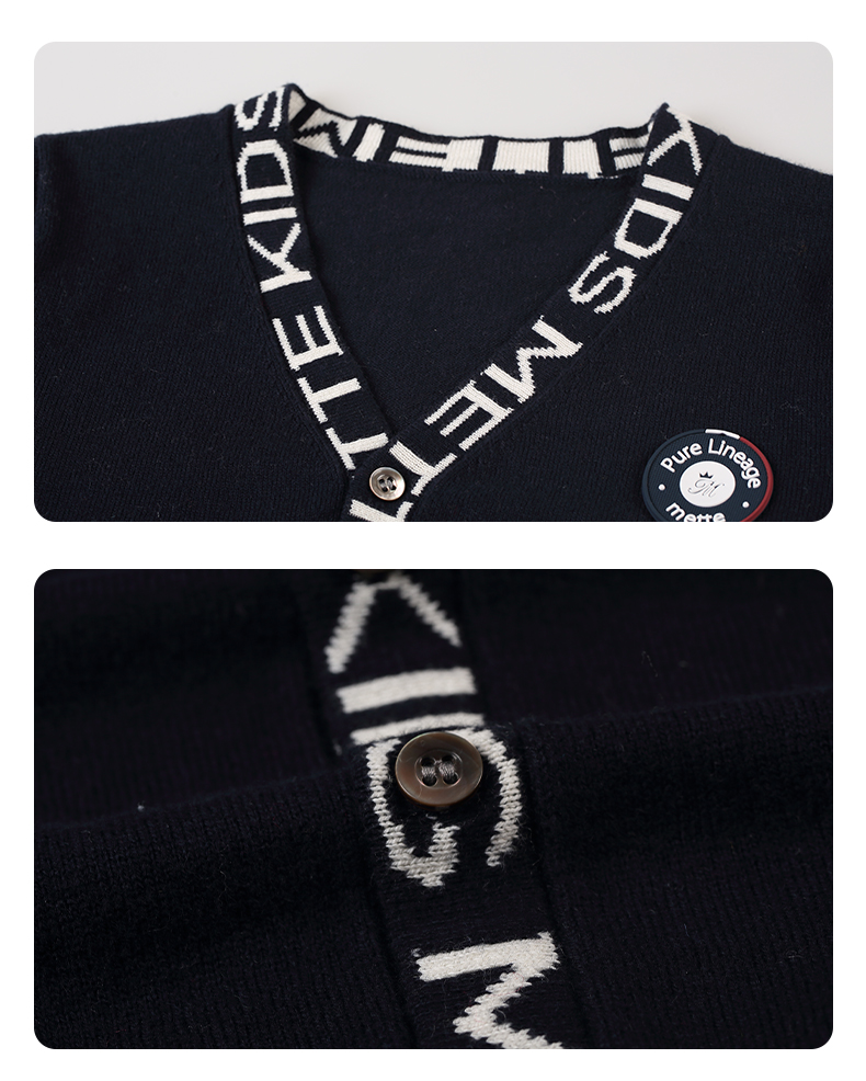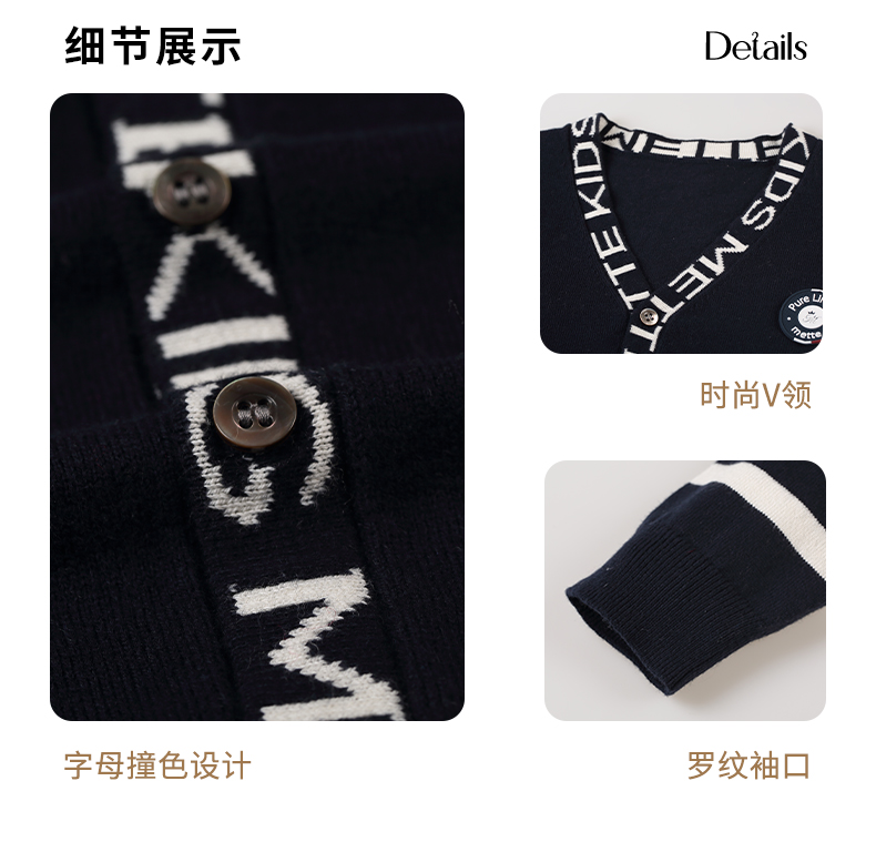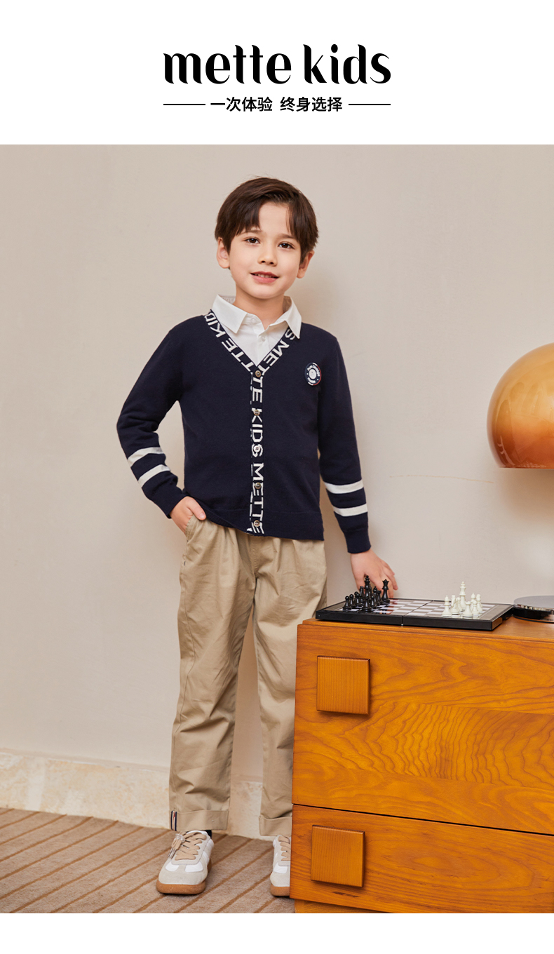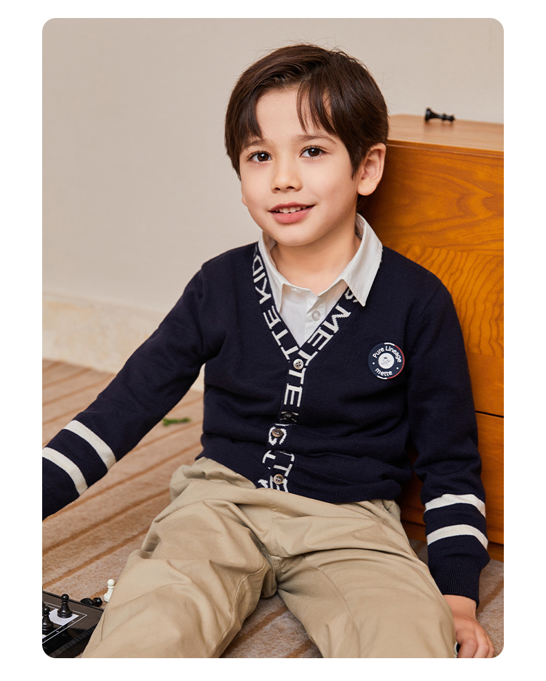 mettekids儿童毛衣春秋新款学院风童装中大男童V领休闲针织开衫