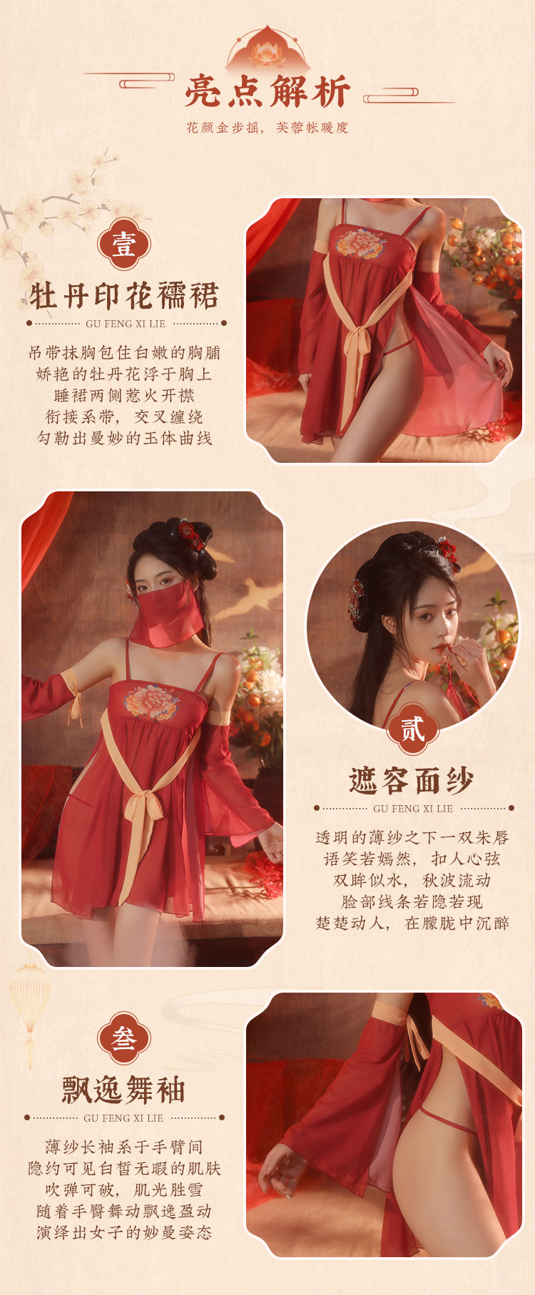 【古韵牡丹】飘逸 舞袖 性感情趣 内衣 汉服 古风 情趣内衣 型号:6884