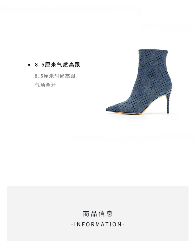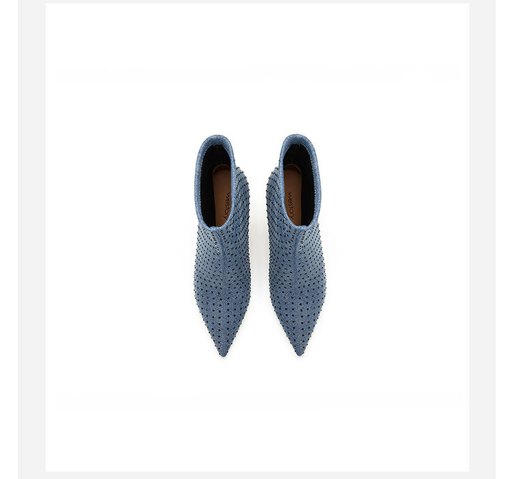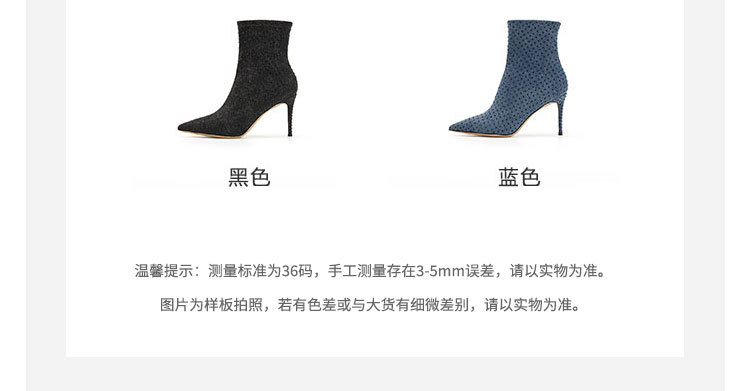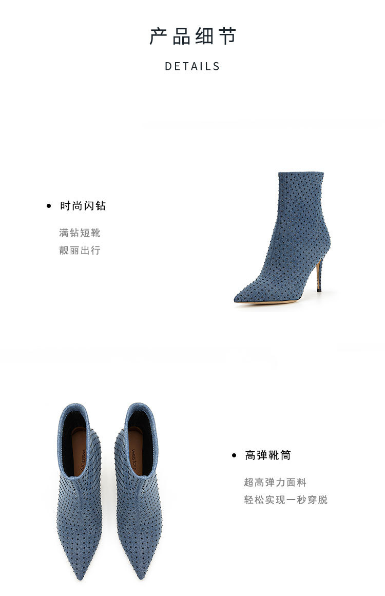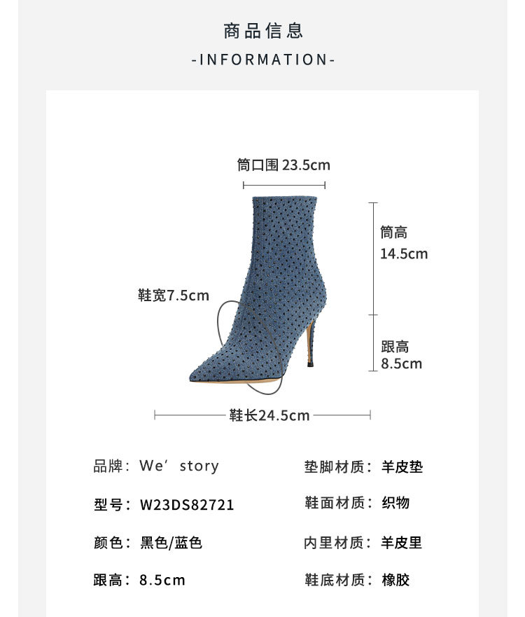 westory秋季新款细高跟尖头弹力短靴W23DS82721