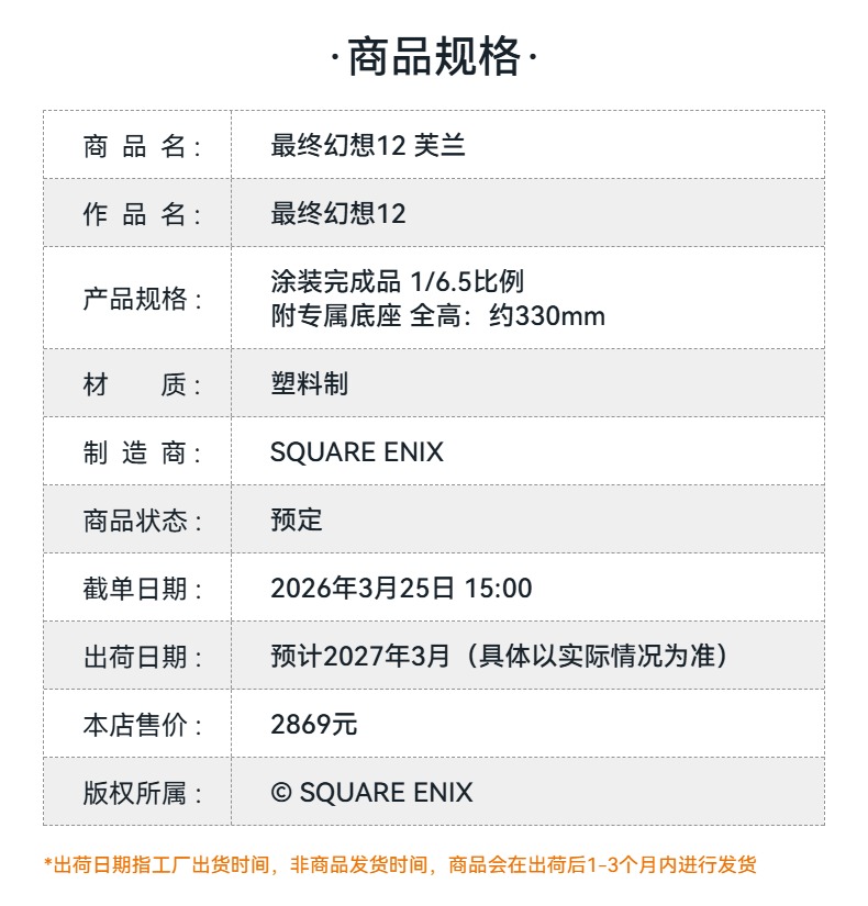 【GSC预售定金】1/6.5标准比例 最终幻想12 芙兰 官方限定