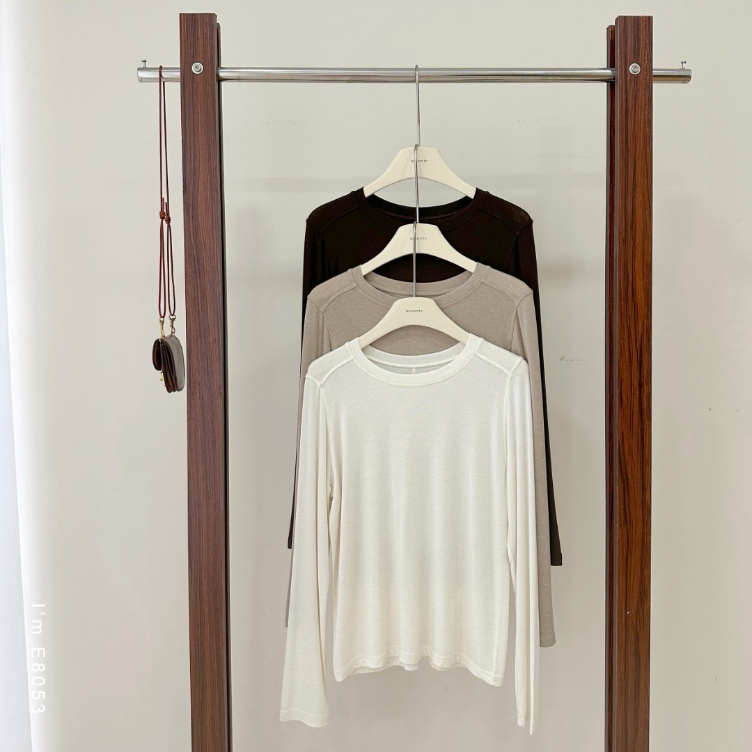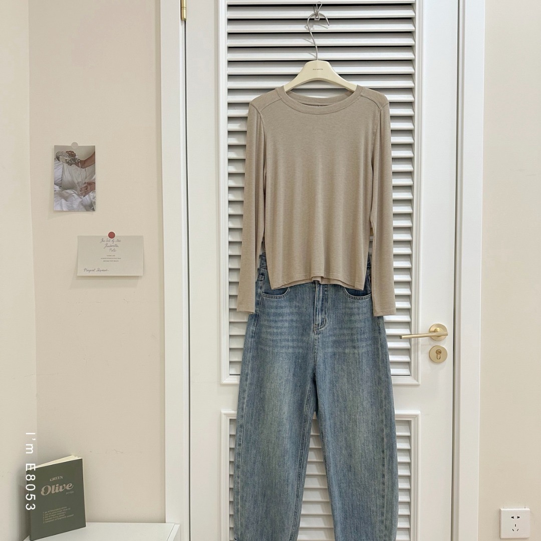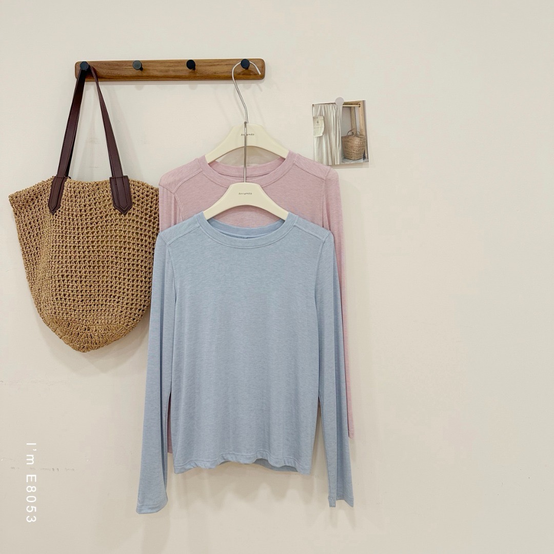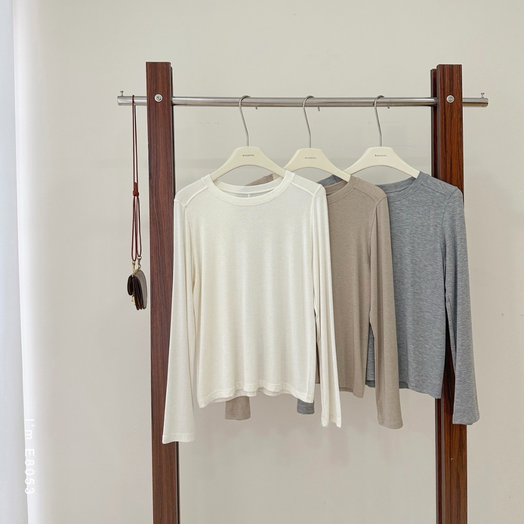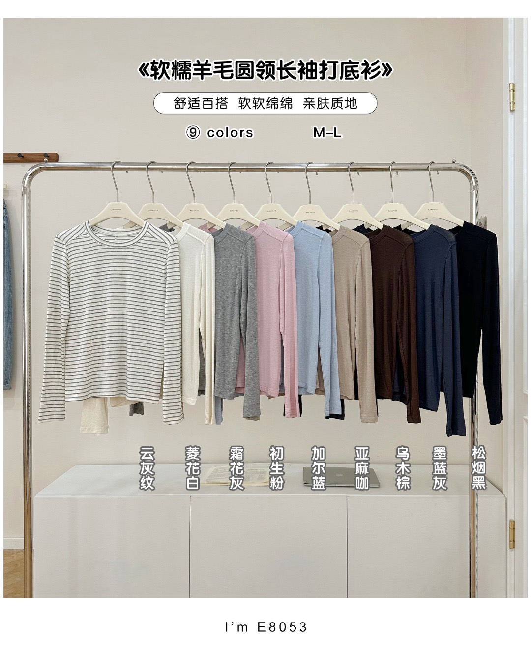 老米优品🎈3-5天发!🍂写入秋日的温暖。莱赛尔天丝+绵羊毛+醋纤《软糯羊毛圆领长袖打底衫tee》软糯弹力大,每缕羊毛都是未说出口的温柔✍️T250826A