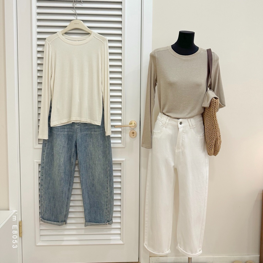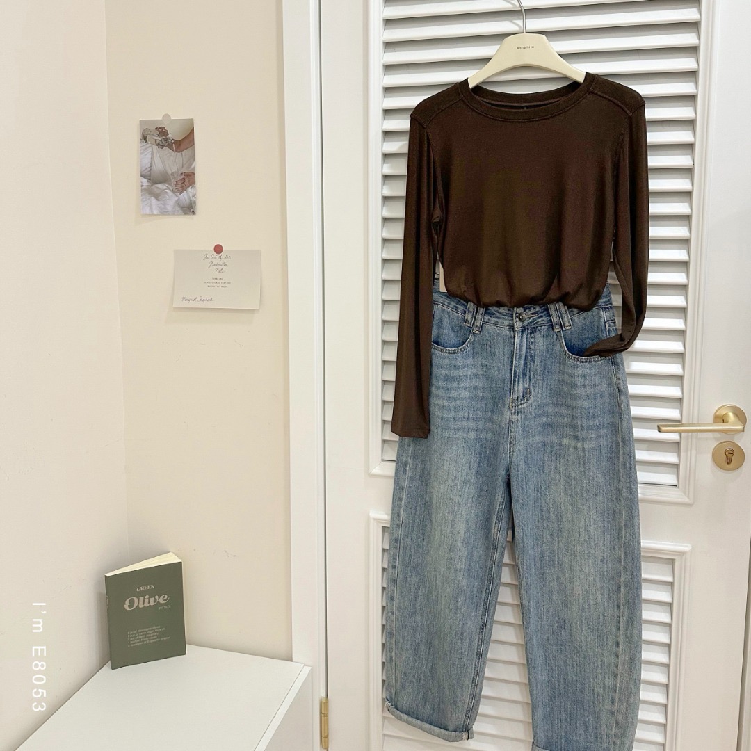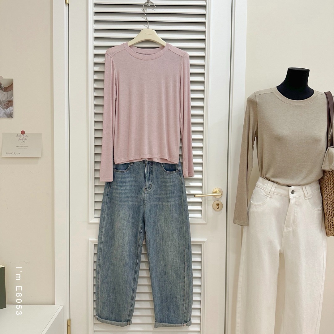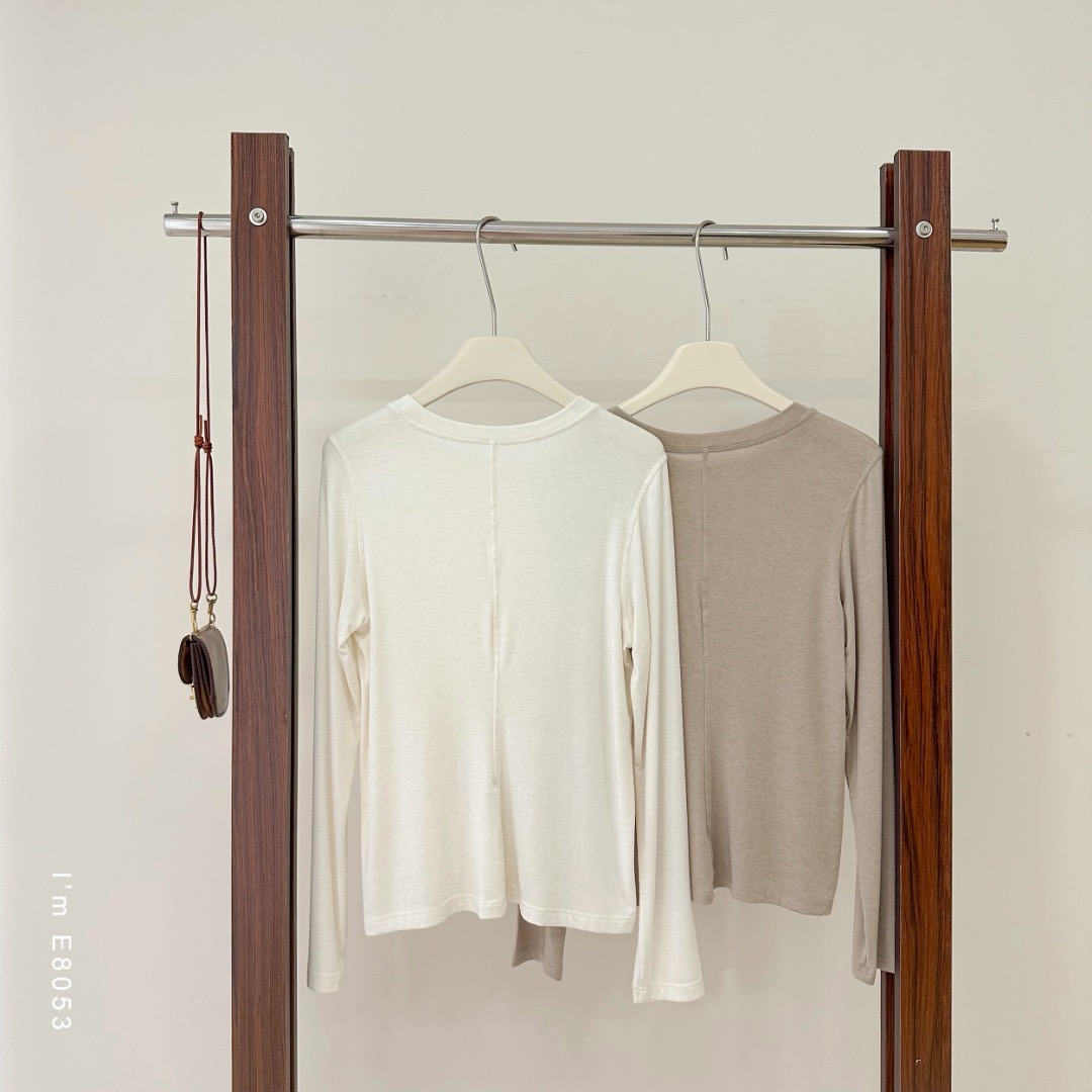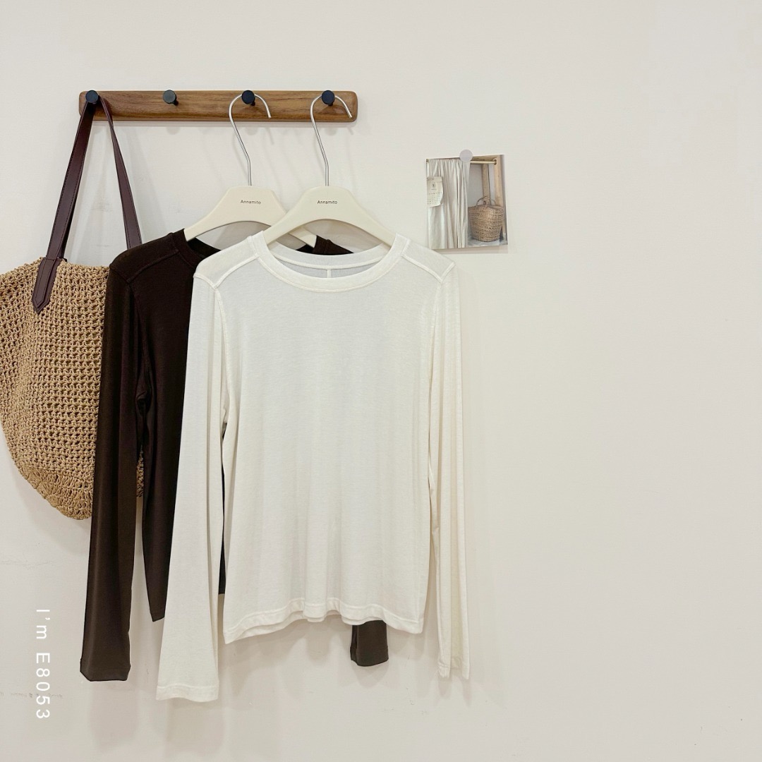 老米优品🎈3-5天发!🍂写入秋日的温暖。莱赛尔天丝+绵羊毛+醋纤《软糯羊毛圆领长袖打底衫tee》软糯弹力大,每缕羊毛都是未说出口的温柔✍️T250826A
