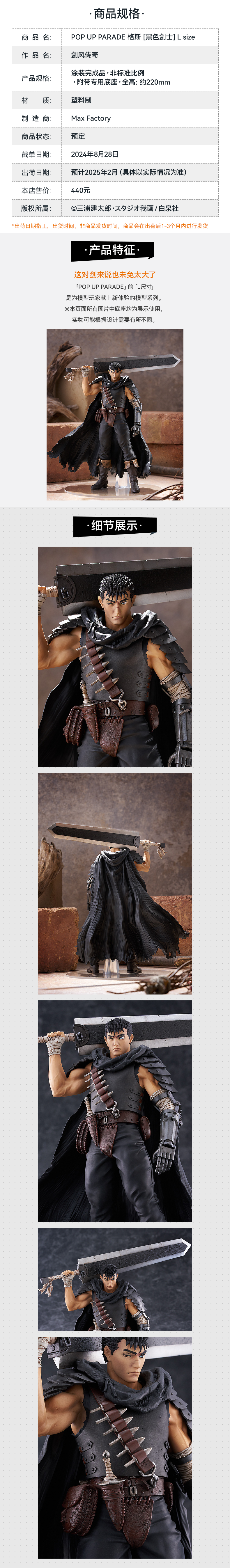 【GSC现货】POP UP PARADE 格斯 [黑色剑士] L size 剑风传奇