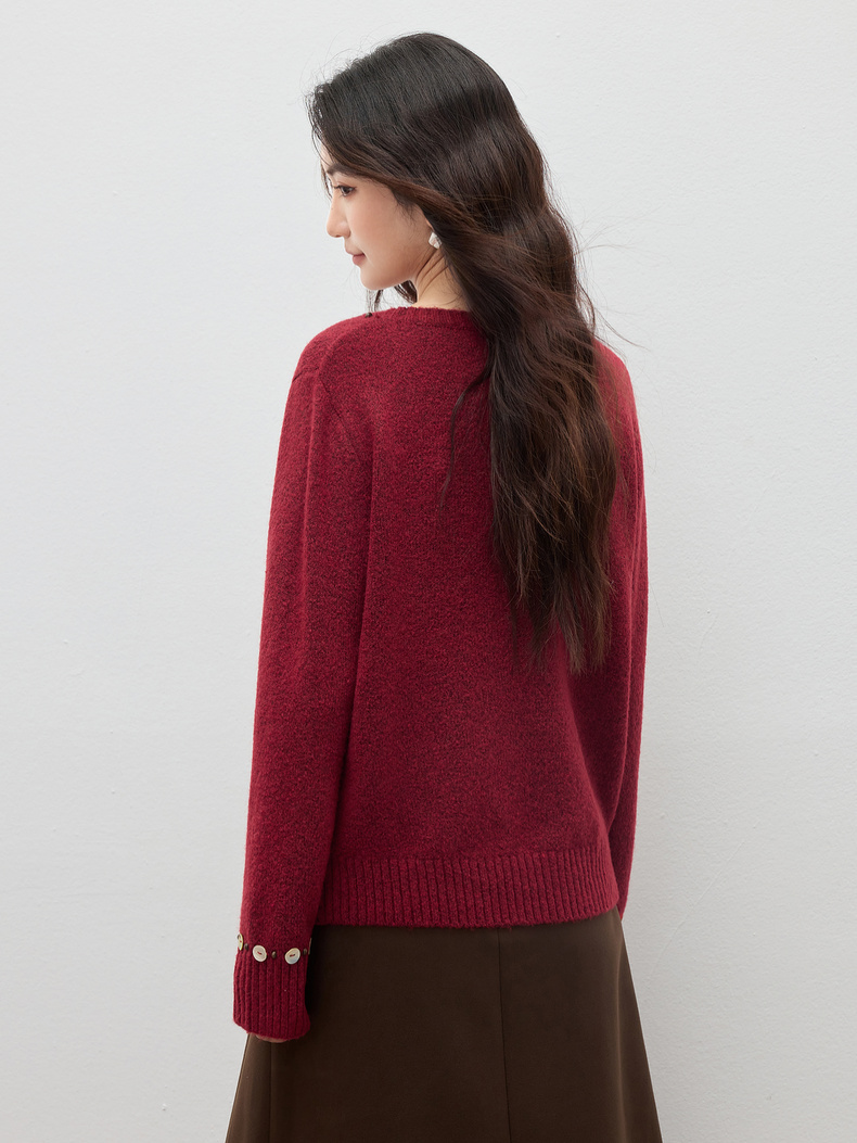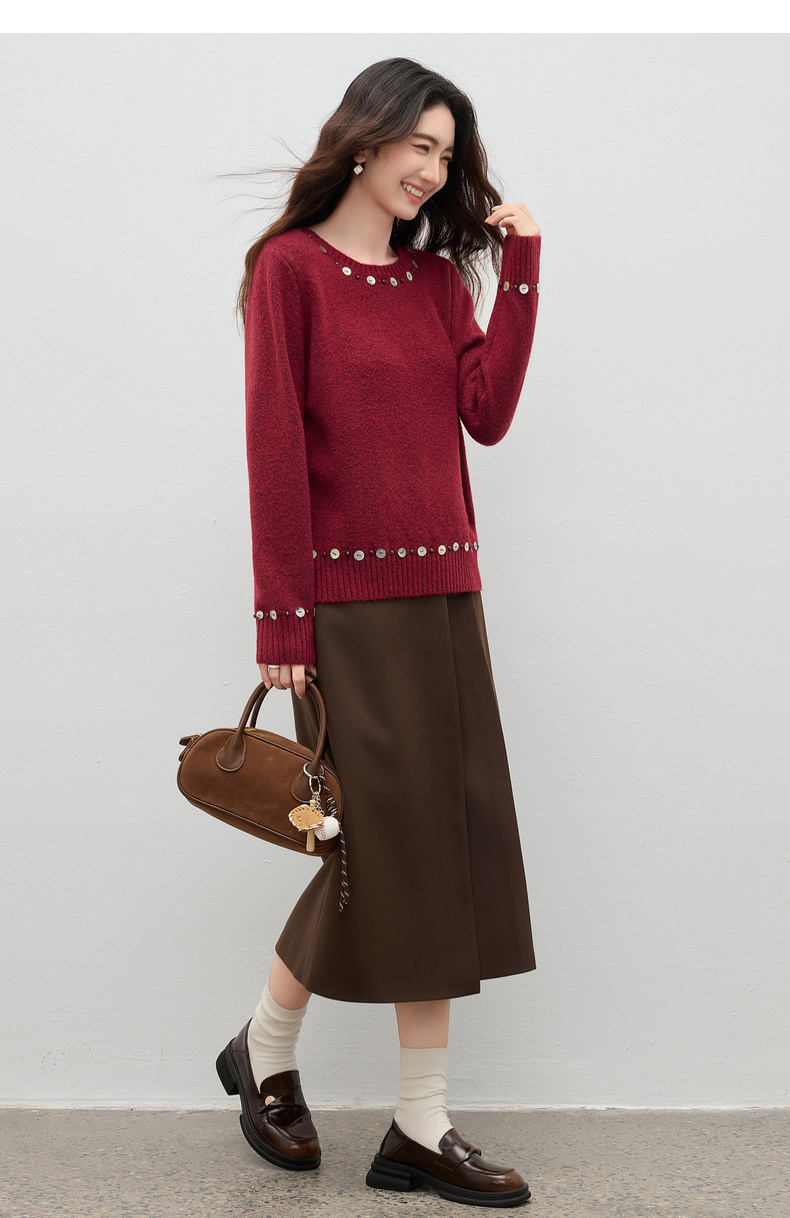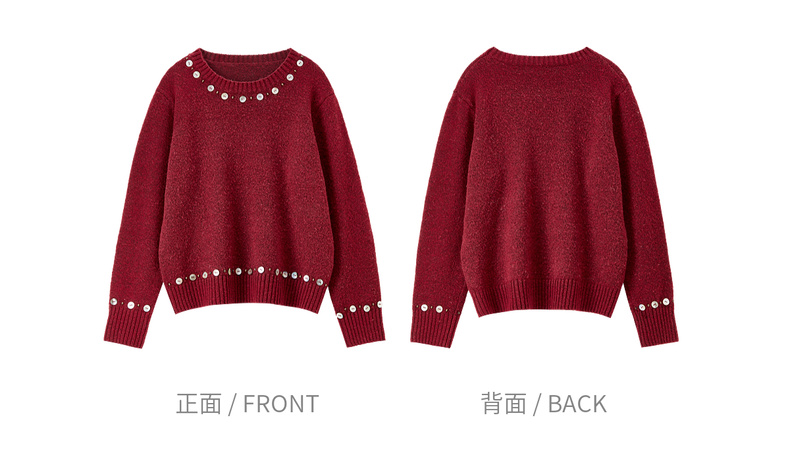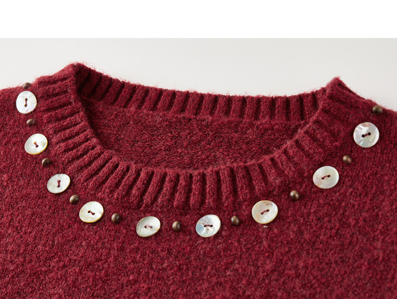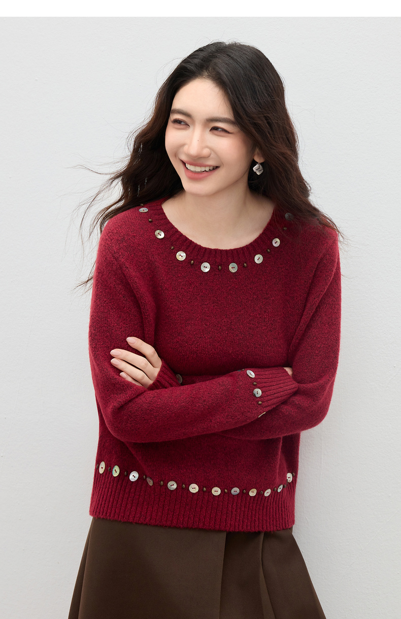 【内购】【手工钉珠+珠光贝壳】简约通勤圆领宽松落肩厚保暖百花绒毛衣-W54EE3858