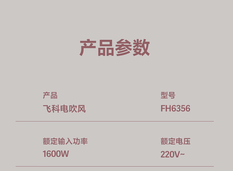 飞科 FH6356 电吹风机家用 便携负离子大功率护发吹风筒大风量速干低噪音