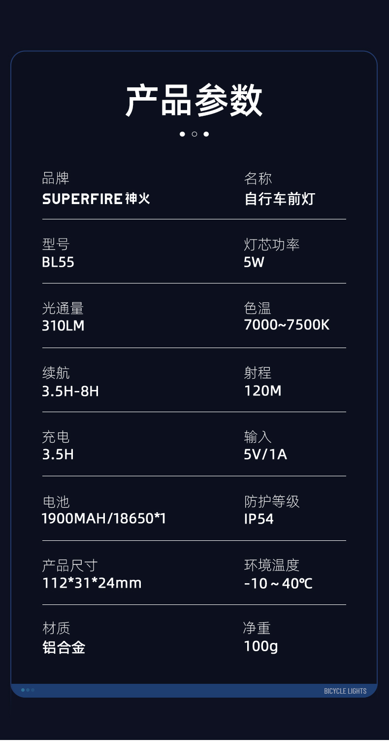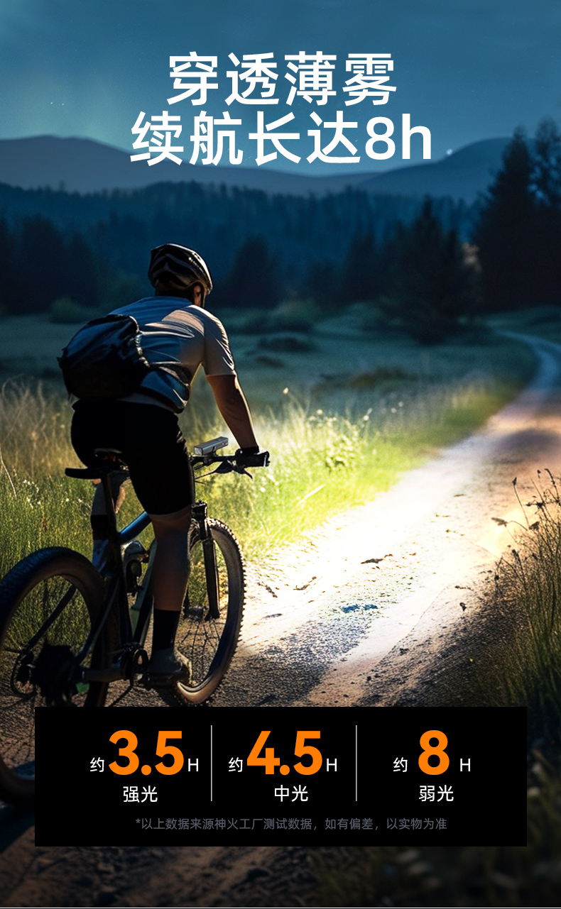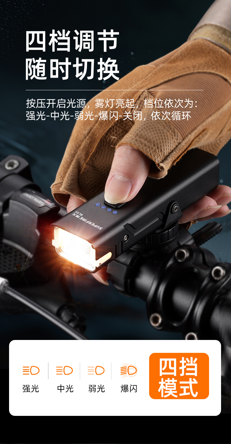 神火BL55自行车前灯强光远射超长续航可充电山地车公路车户外骑行装备