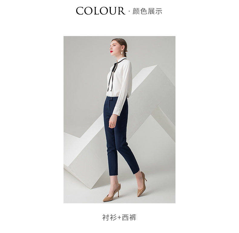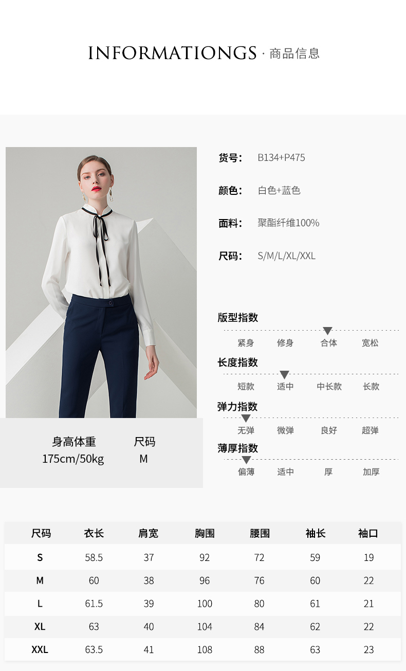 IWY/白色长袖衬衫蓝色长裤套装B134+P475