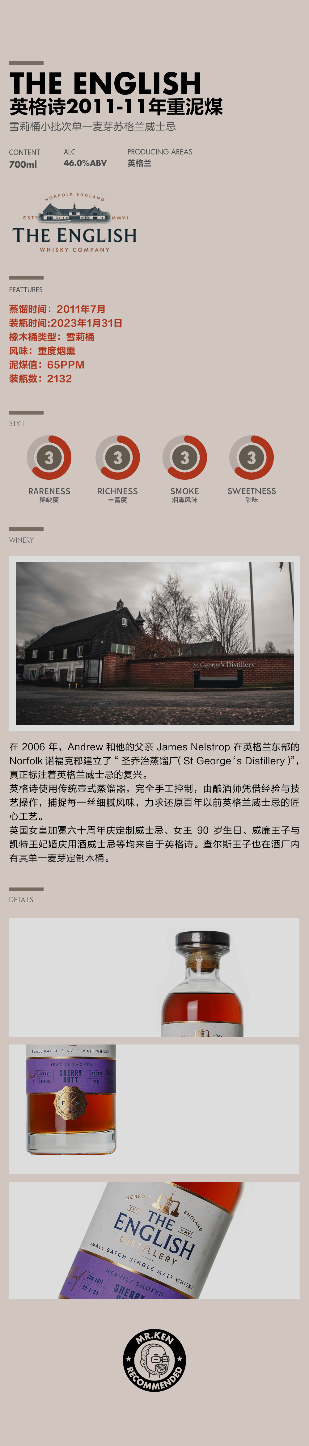 英格诗(The English)2011-11年重泥煤雪莉桶小批次单一麦芽苏格兰威士忌