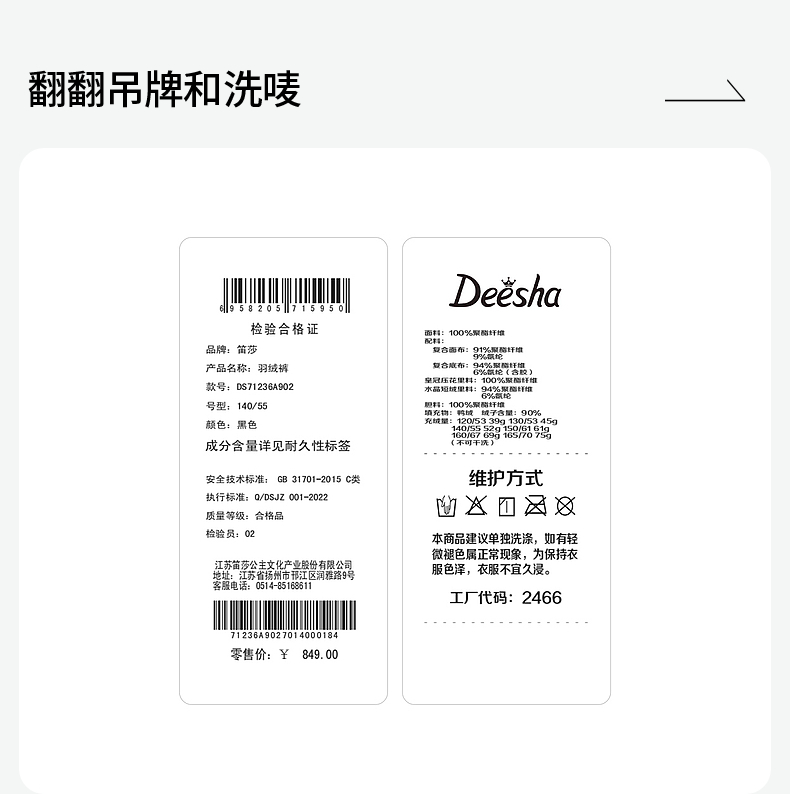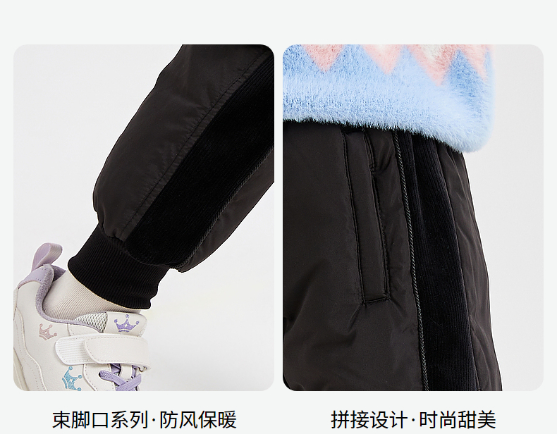 笛莎Deesha2023冬季新款童装时尚拼接女童羽绒裤