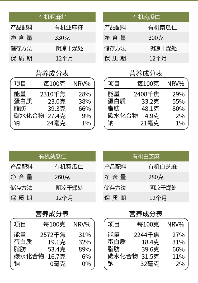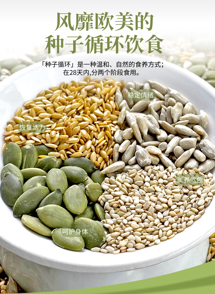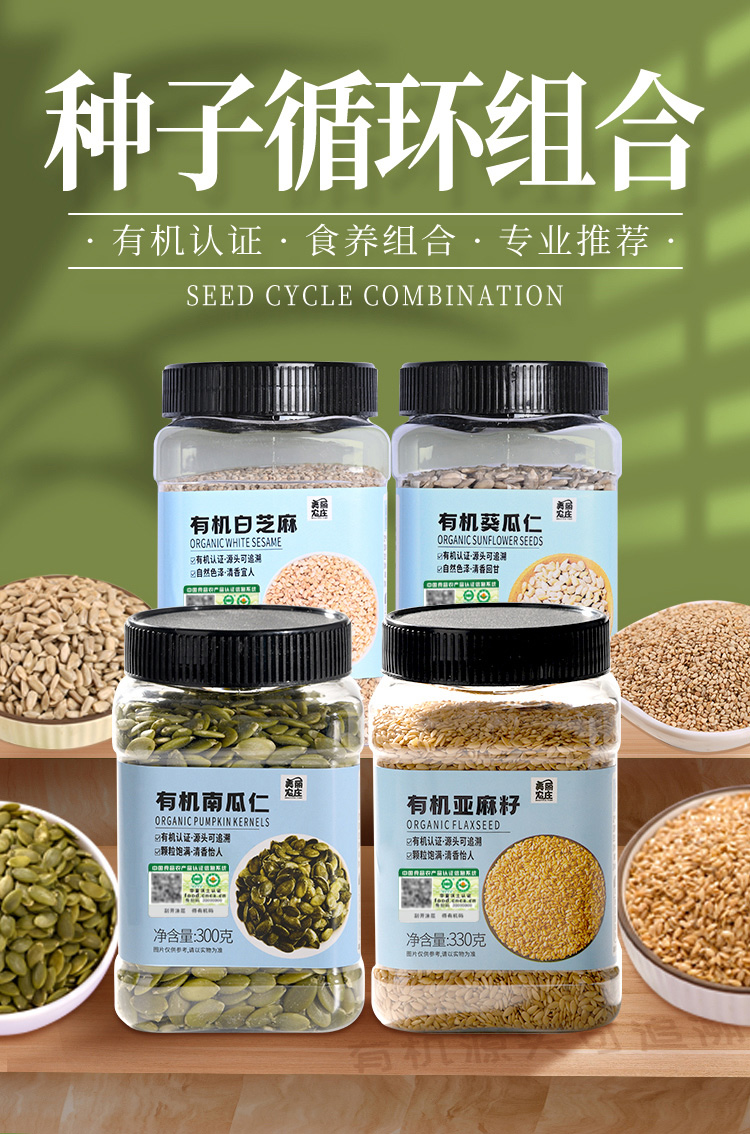 【28天健康食养】种子循环组合 美丽农庄有机南瓜仁葵瓜仁亚麻籽芝麻杂粮组合