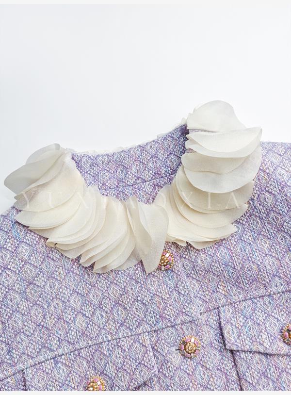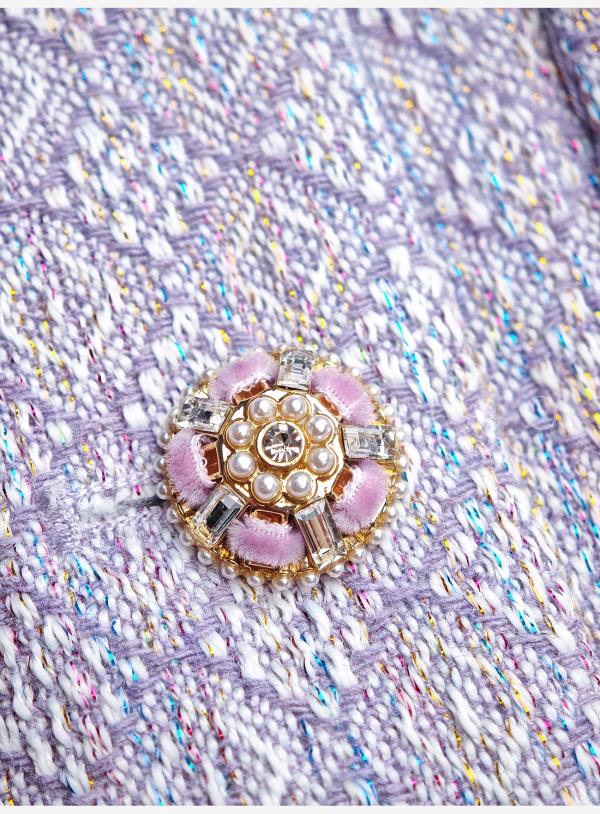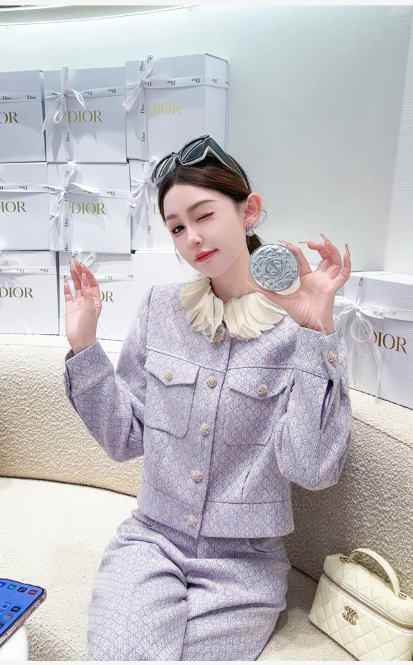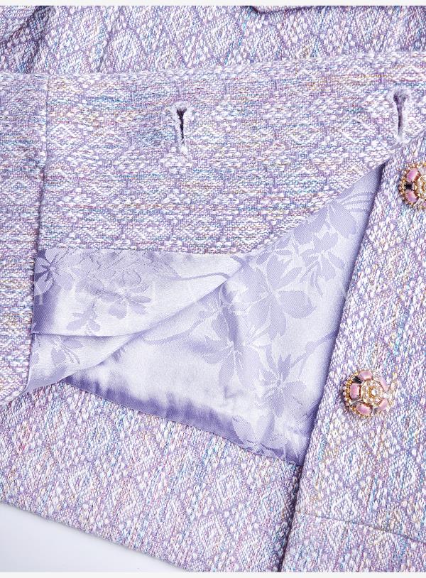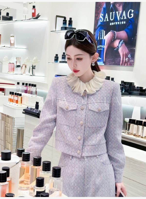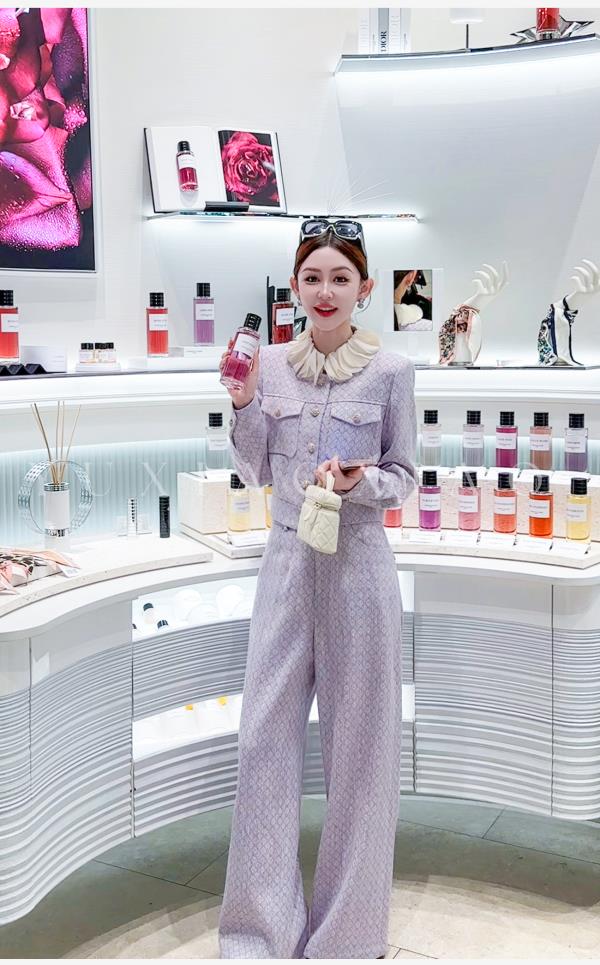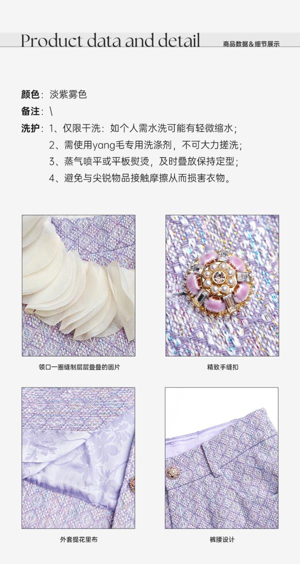 余潇潇【高智千金】绵羊毛混纺粗花呢菱形花纹小香外套&宽松直筒裤