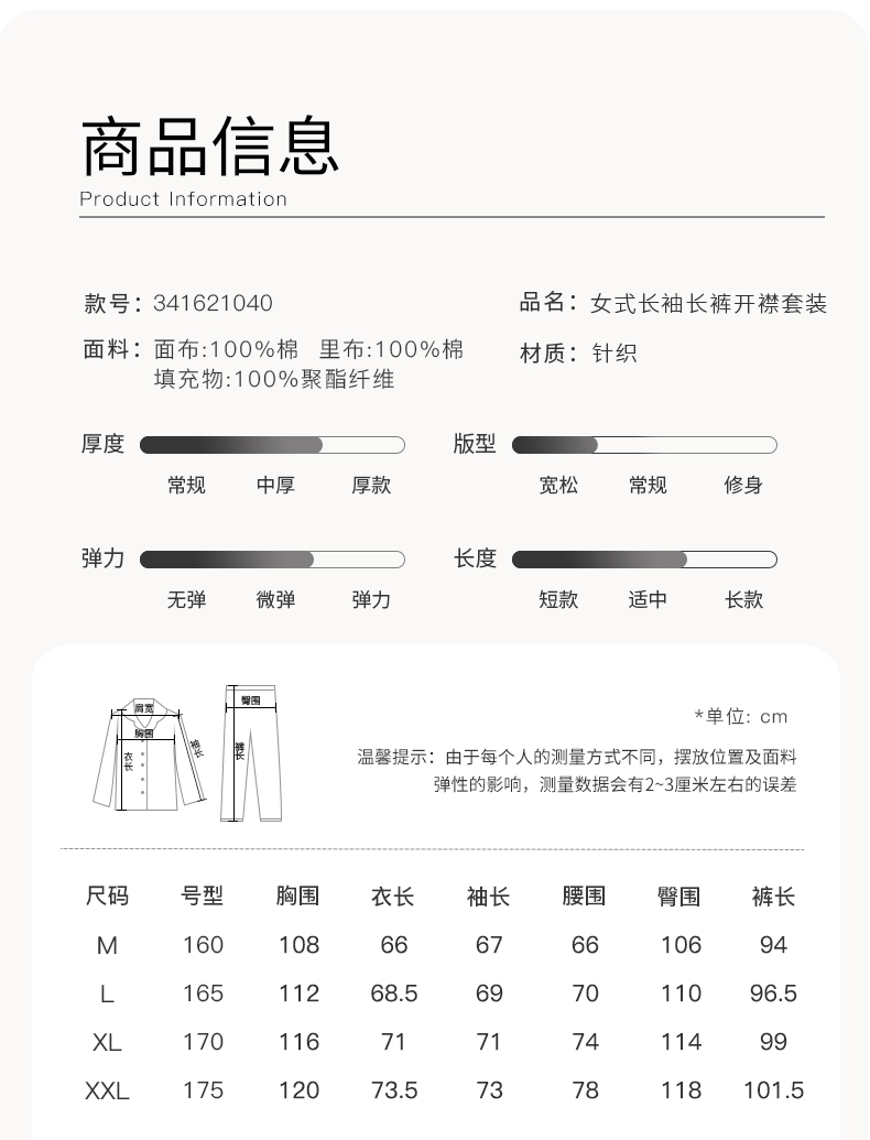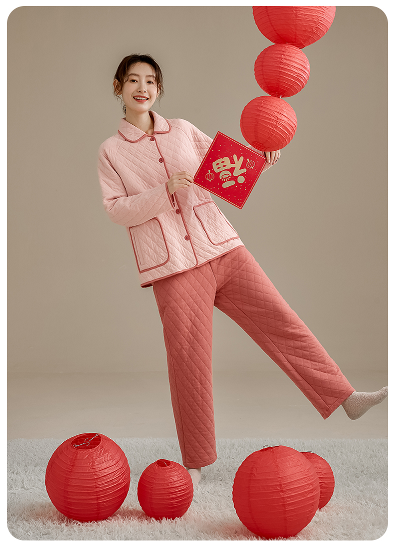 康妮雅女式长袖长裤开襟套装
