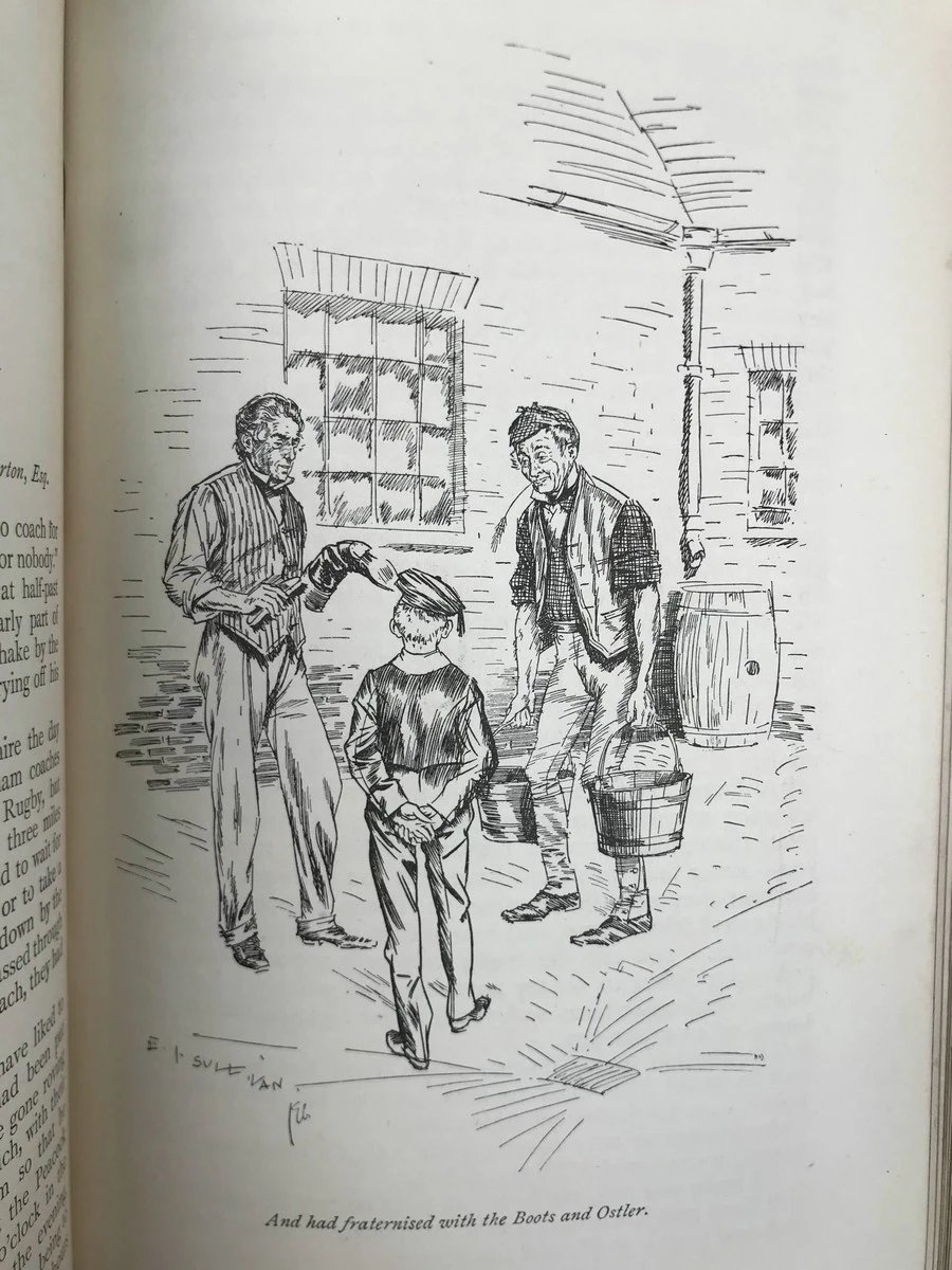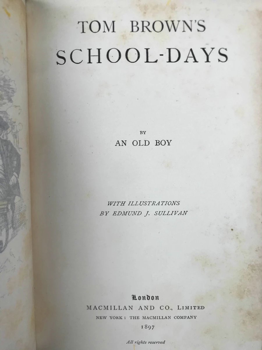 1897年 托马斯·休斯《汤姆·布朗的校园时光》 埃德蒙·苏利文约百幅精美插图 漆布精装32开