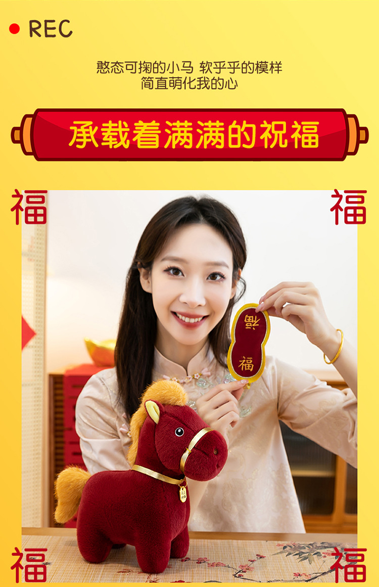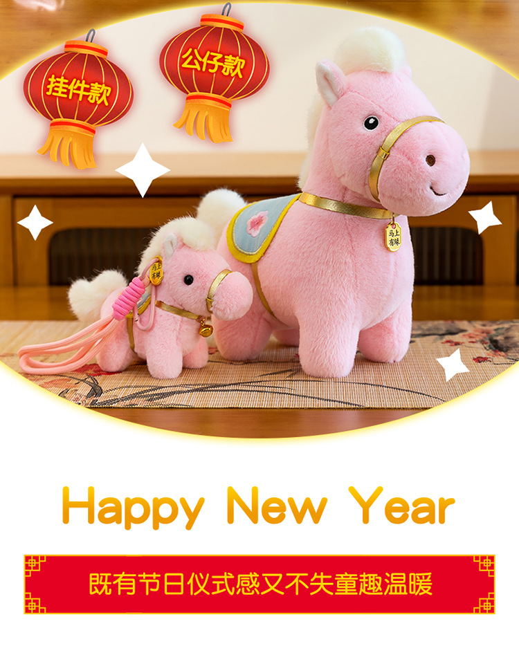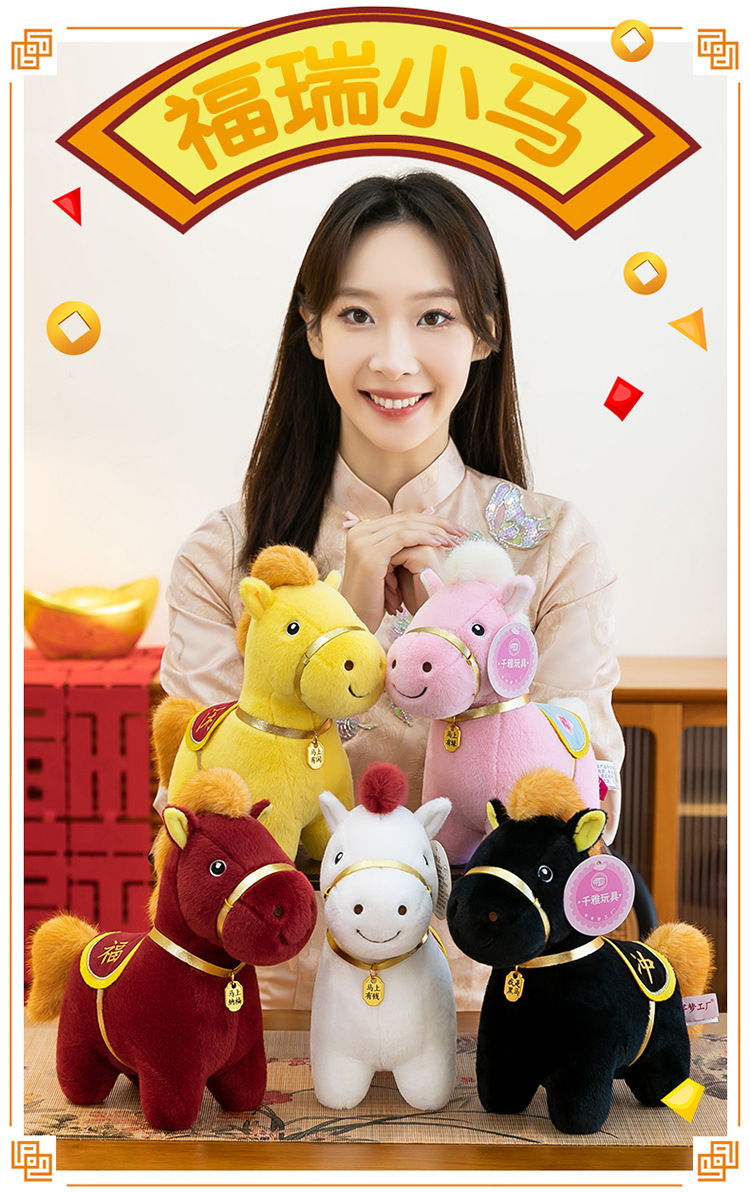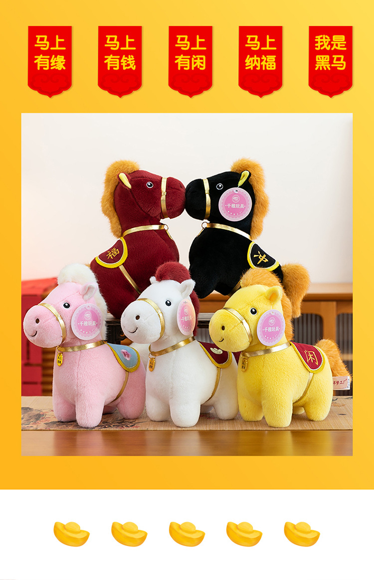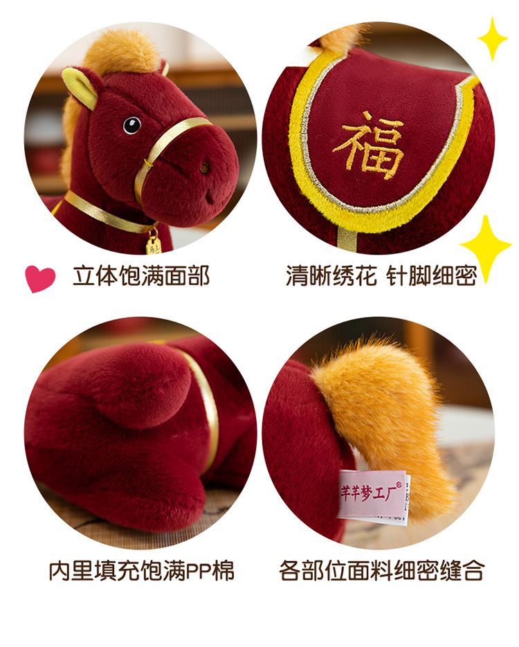 【柔软蓬松又扎实❗️承载着满满的祝福】生肖马年五福小马吉祥物毛绒玩具可爱仿真五福马公仔。jb