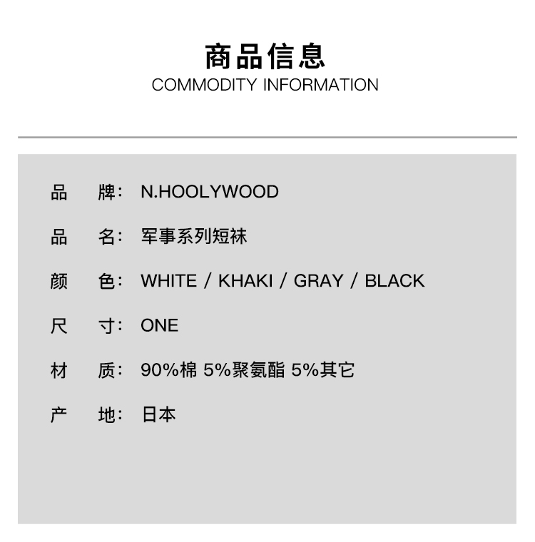 N.HOOLYWOOD SHORT SOCKS 军事系列短袜